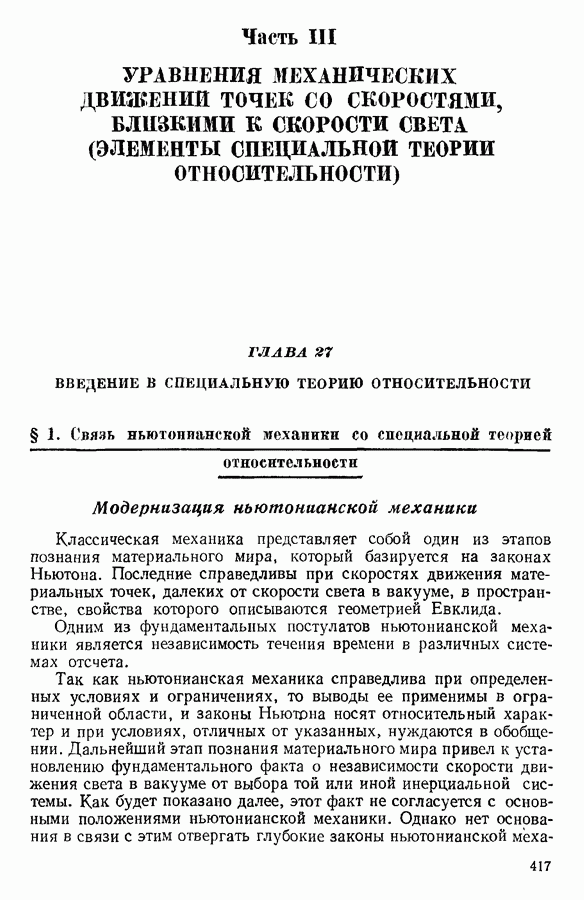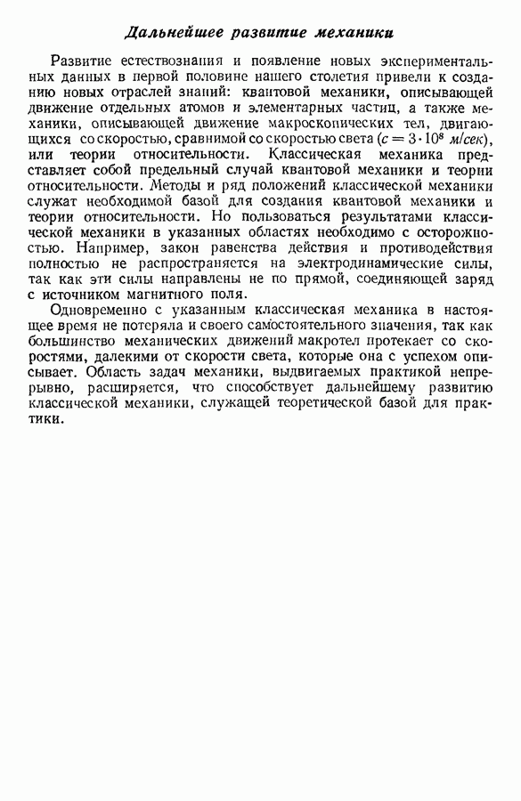 Последний раздел «Элементы специальной теории относительности» рассматривается как современное развитие и обобщение ныотонианской механики. Помимо самостоятельного значения, он позволяет более глубоко оценить основные постулаты классической механики.
