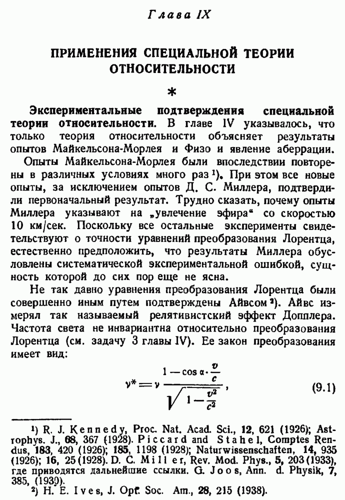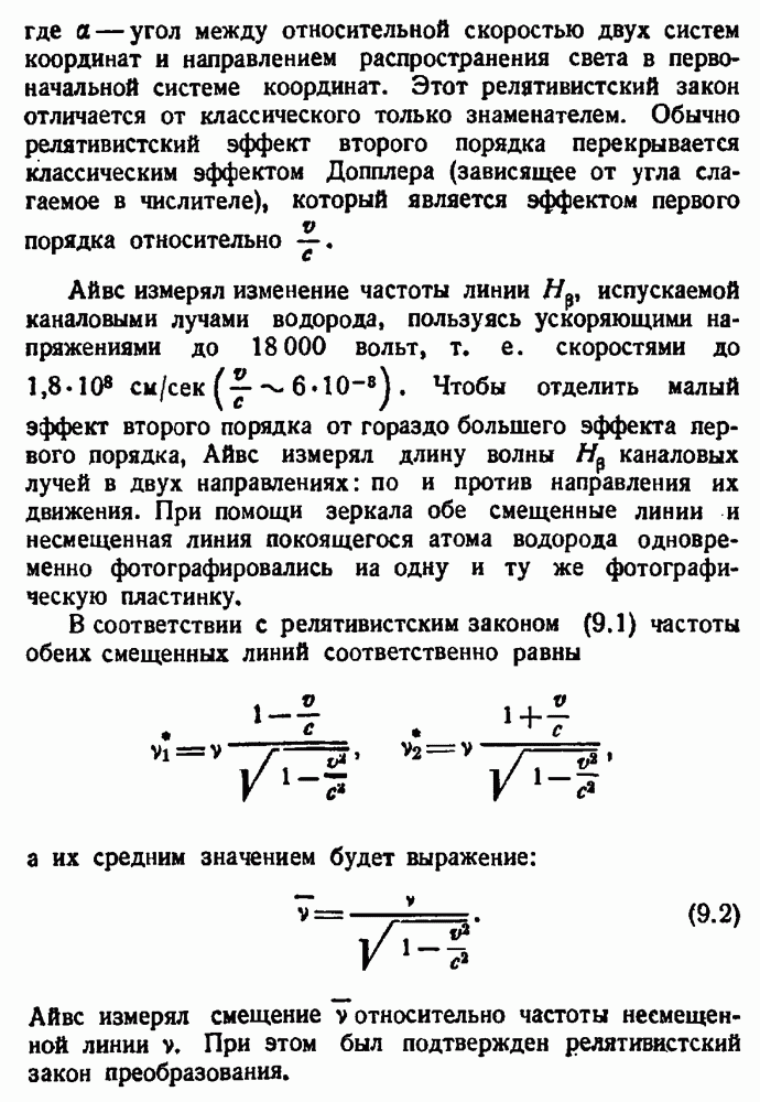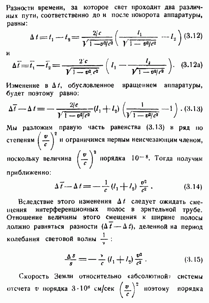 дает только «эффект второго порядка» т. е., что все наблюдаемые отклонения от законов, справедливых в системе отсчета, связанной с эфиром, пропорциональны не