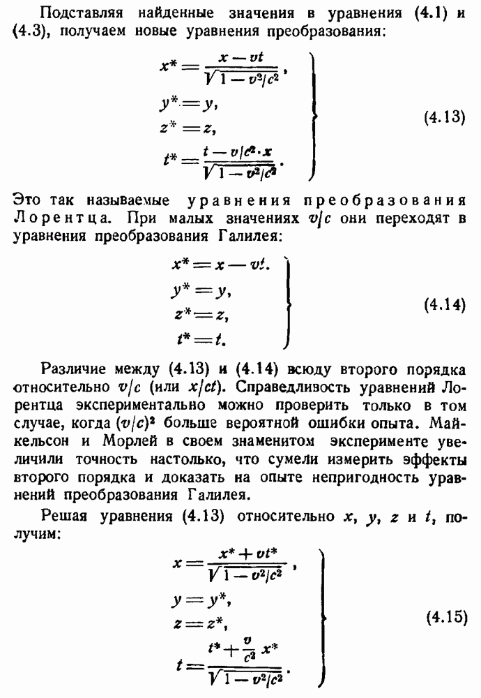 Глава IV. ПРЕОБРАЗОВАНИЯ ЛОРЕНТЦА