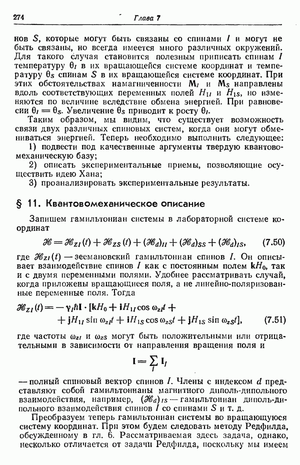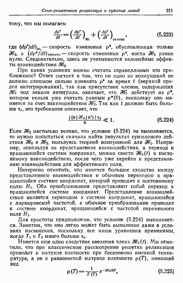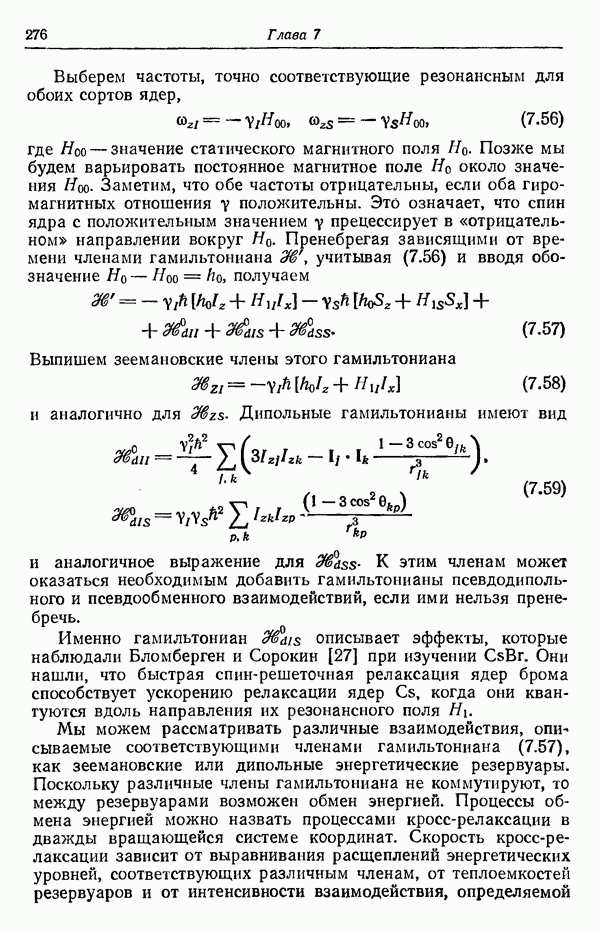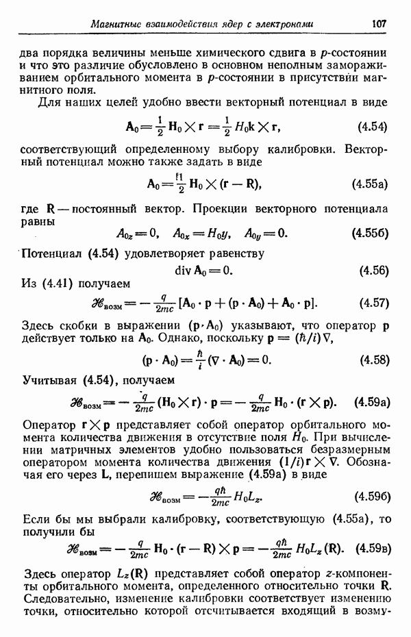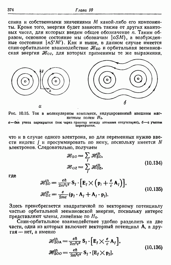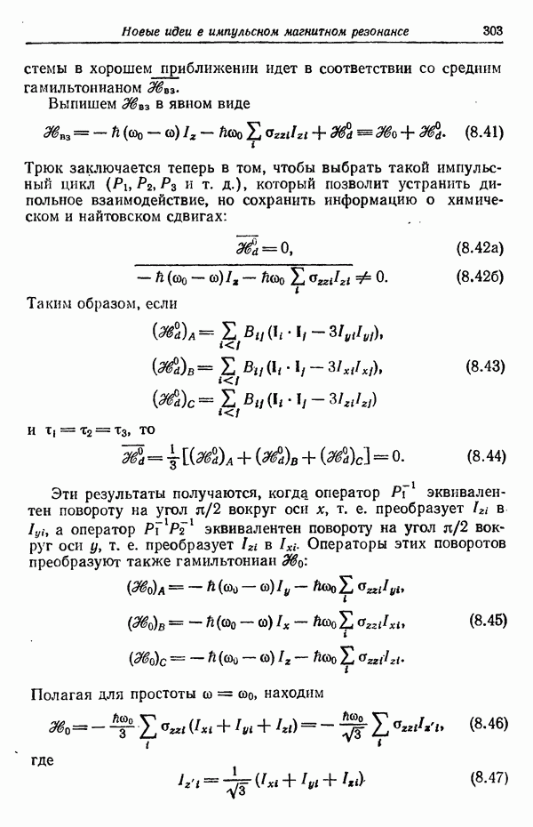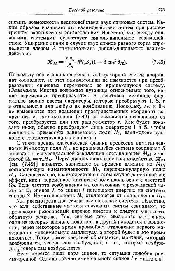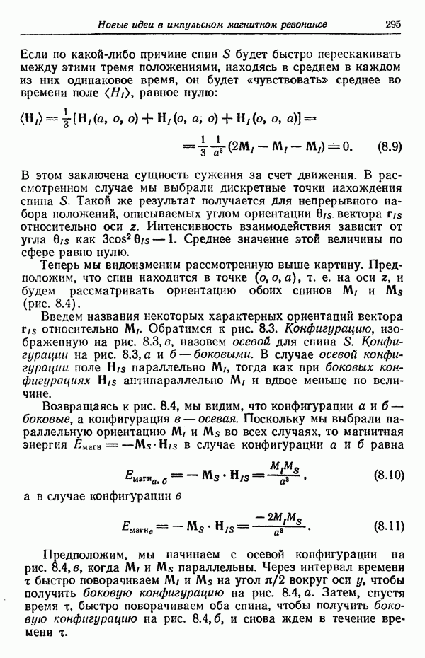 Это взаимодействие обращается в нуль при усреднении по ориентациям молекулы, так как обусловленная спинами намагниченность сама зависит от ориентации молекулы относительно ядерного спина. Взаимодействие (4.212) зависит от спинов так же, как обычное прямое диполь-дипольное взаимодействие. Чтобы подчеркнуть это сходство, такое взаимодействие часто называют «псевдодипольным». С другой стороны, взаимодействие