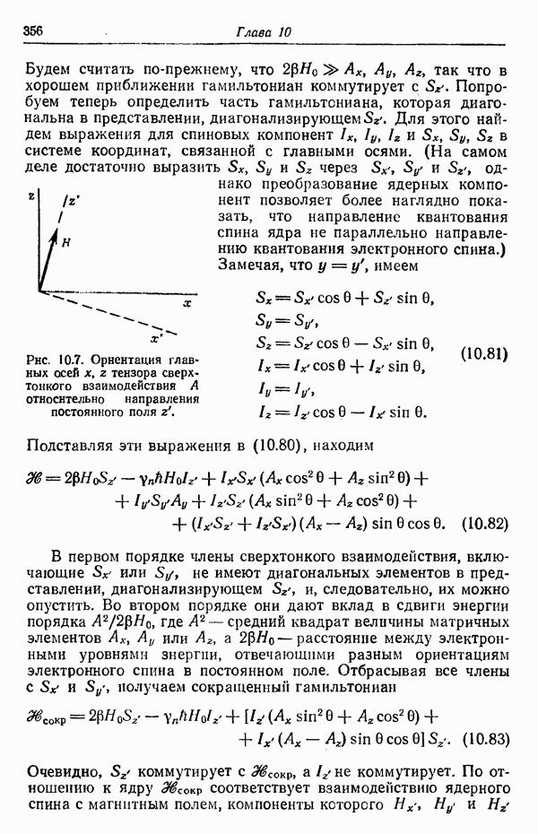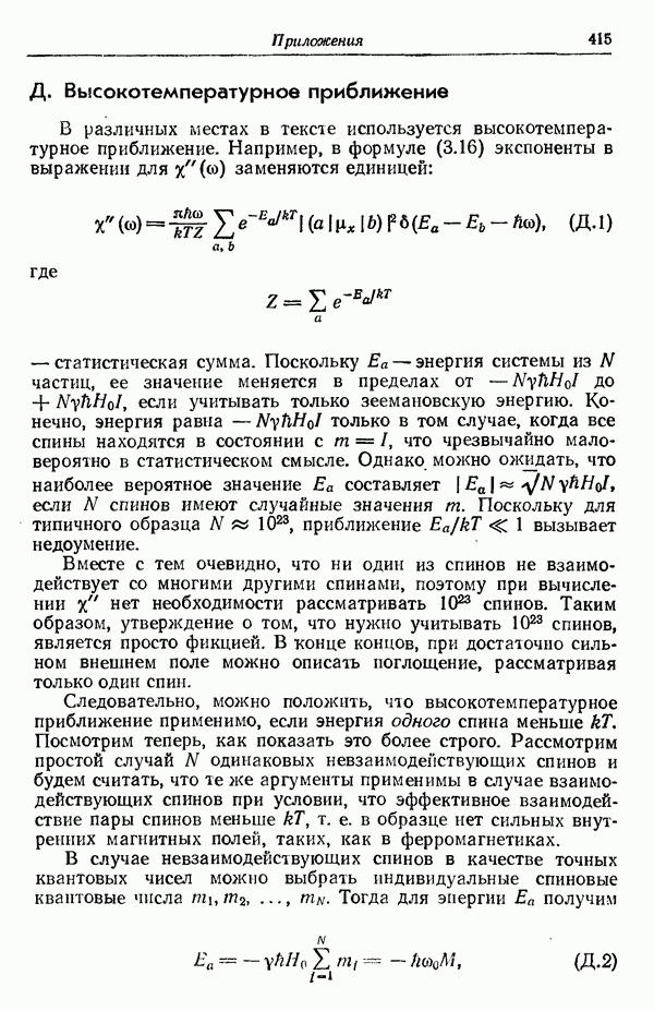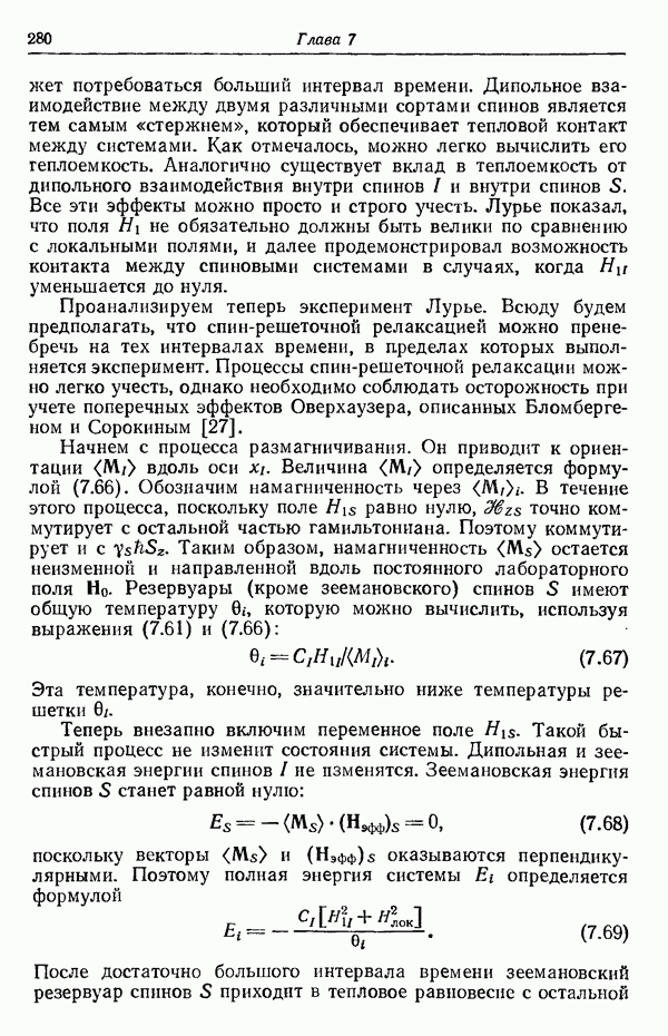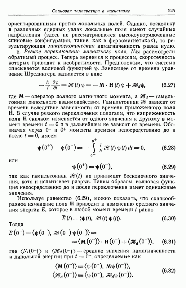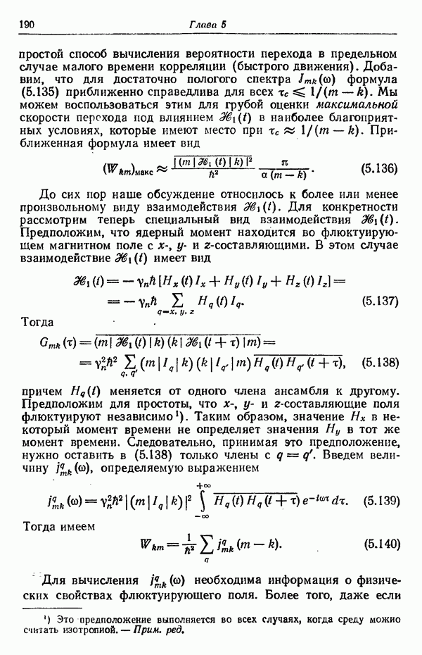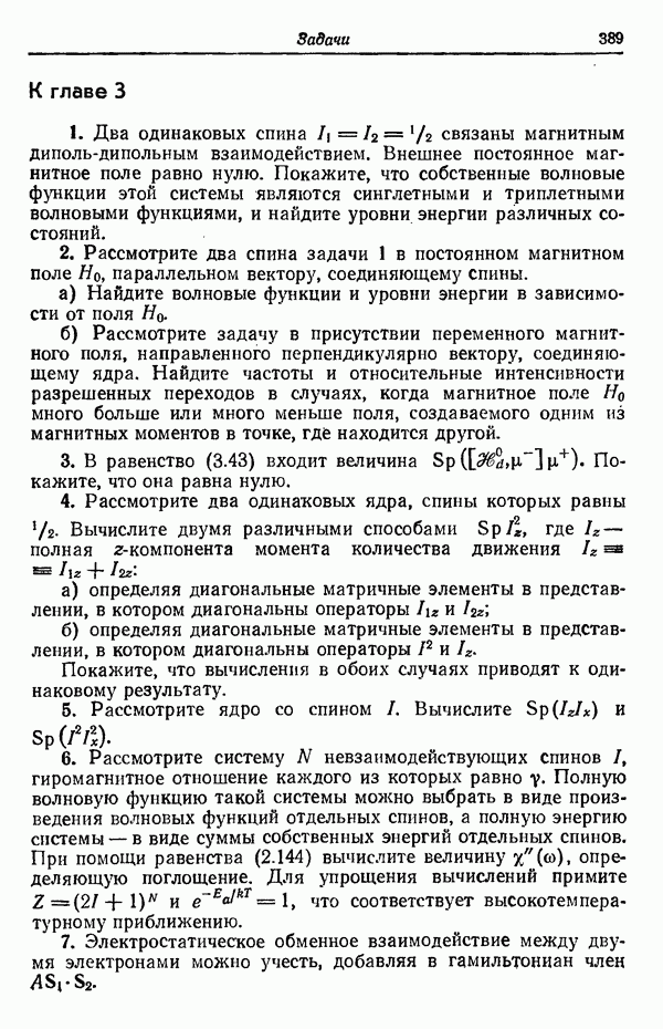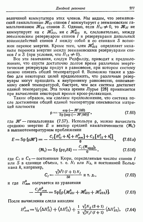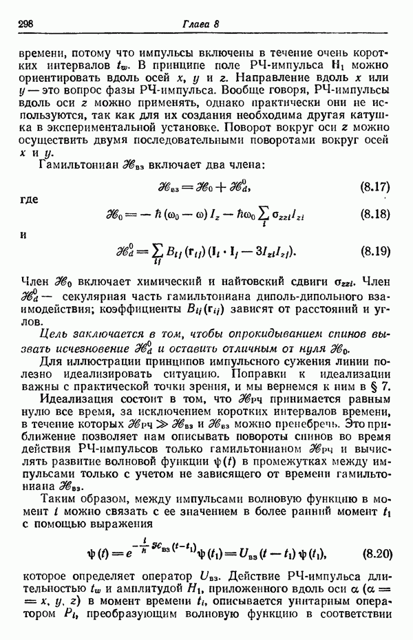 Это взаимодействие обращается в нуль при усреднении по ориентациям молекулы, так как обусловленная спинами намагниченность сама зависит от ориентации молекулы относительно ядерного спина. Взаимодействие (4.212) зависит от спинов так же, как обычное прямое диполь-дипольное взаимодействие. Чтобы подчеркнуть это сходство, такое взаимодействие часто называют «псевдодипольным». С другой стороны, взаимодействие