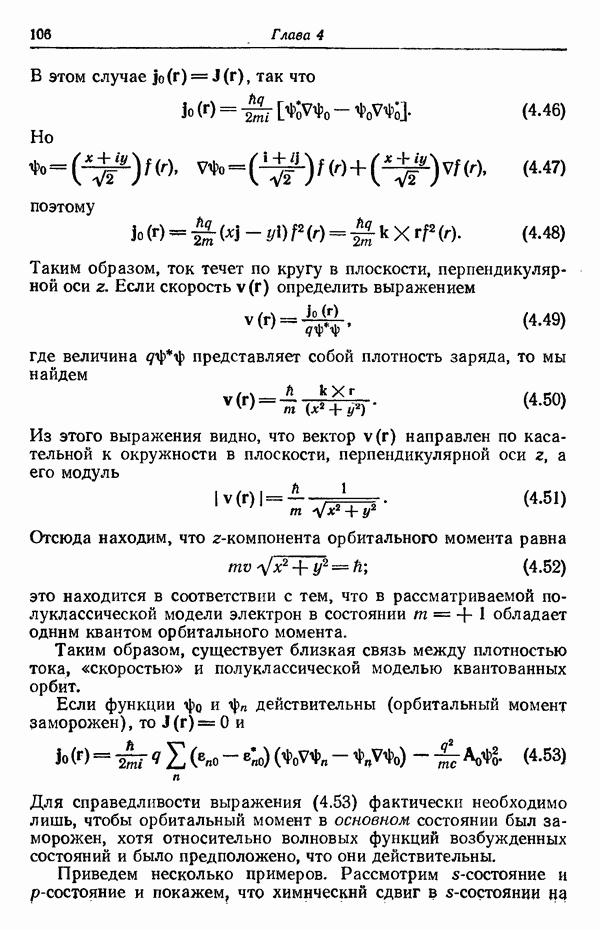 Рис. 4.14. Плотность заряда электронов, магнитные моменты которых параллельны магнитному моменту ядра. Ядро расположено в точке Необходимо учесть принцип Паули для электронов. Это можно сделать, либо определяя сначала возмущенные одноэлектронные волновые функции и строя затем из них антисимметричные многоэлектронные волновые функции, либо сразу же пользуясь в нулевом порядке теории возмущений антисимметричными многоэлектронными волновыми функциями. Мы применим второй способ. Рассмотрим многоэлектронное состояние