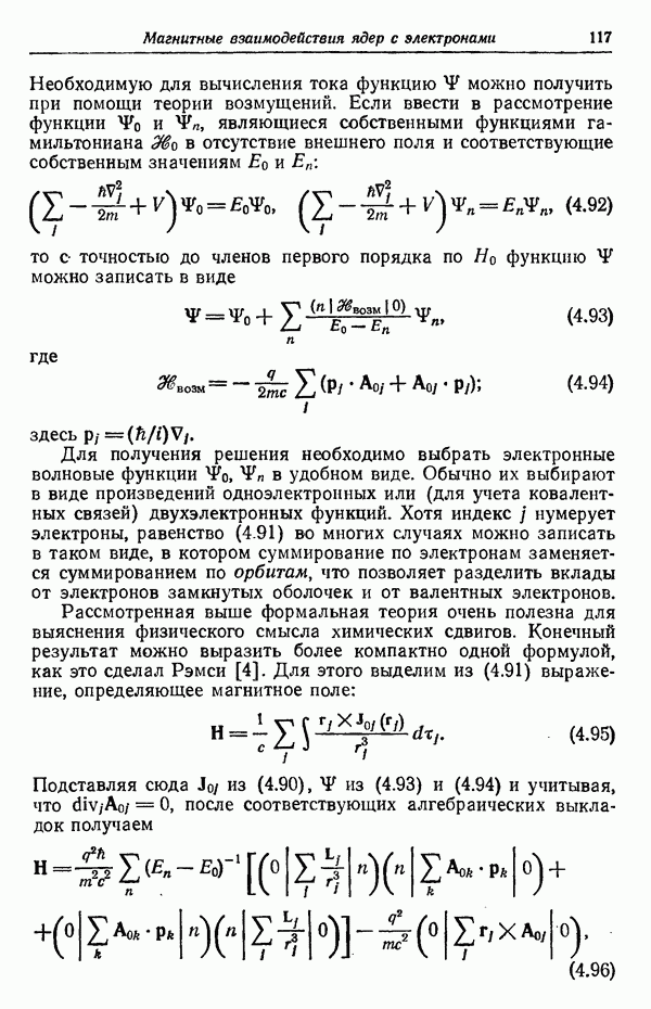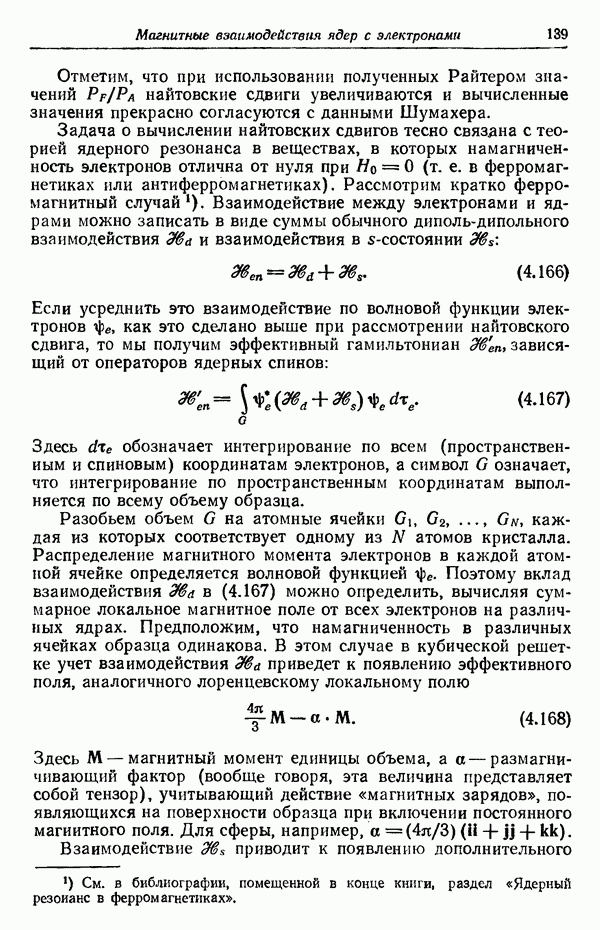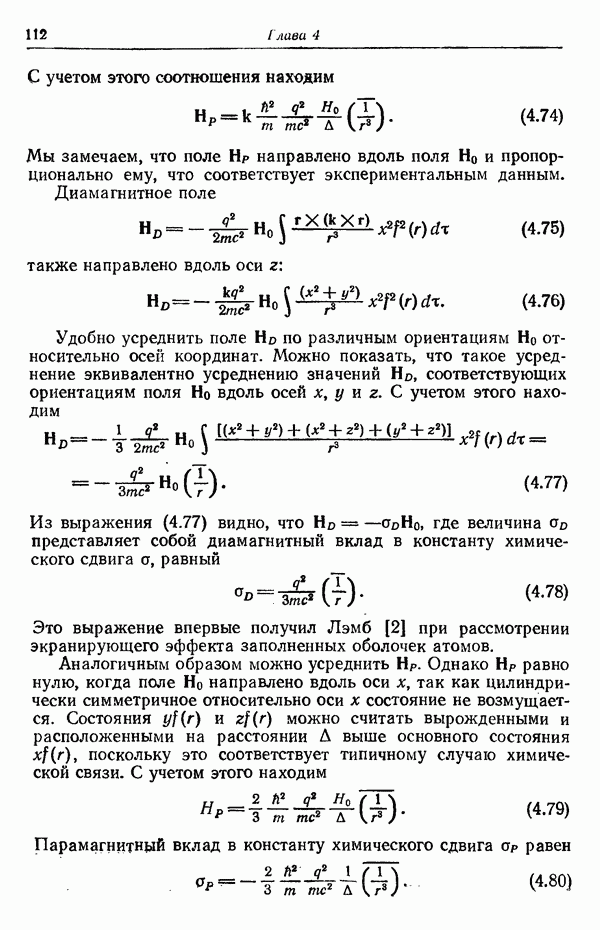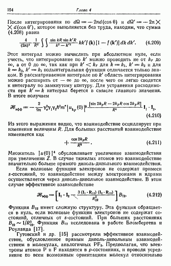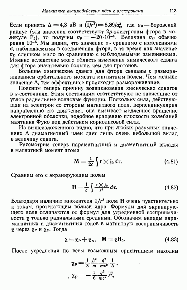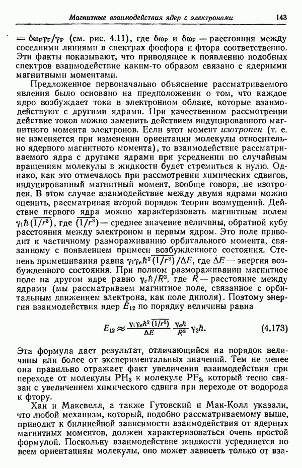 где Эти исследования отметили также, что взаимодействие вида (4.174) объясняет парадоксальный на первый взгляд факт отсутствия расщепления резонансной линии фтора, обусловленного взаимодействием между ядрами фтора в молекуле
