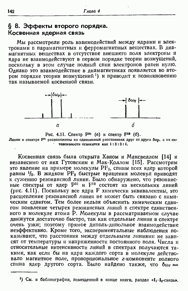 Рис. 4.11. Спектр Косвенная связь была открыта Ханом и Максвеллом [14] и независимо от них Гутовским и Мак-Коллом [15]. Рассмотрим это явление на примере молекулы