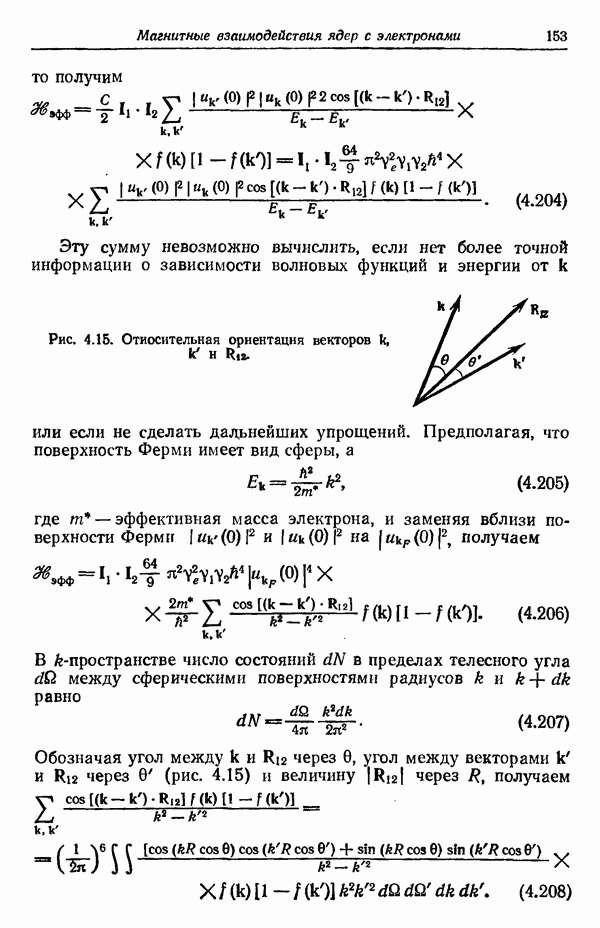 Рис. 4.15. Относительная ориентация векторов Предполагая, что поверхность Ферми имеет вид сферы, а