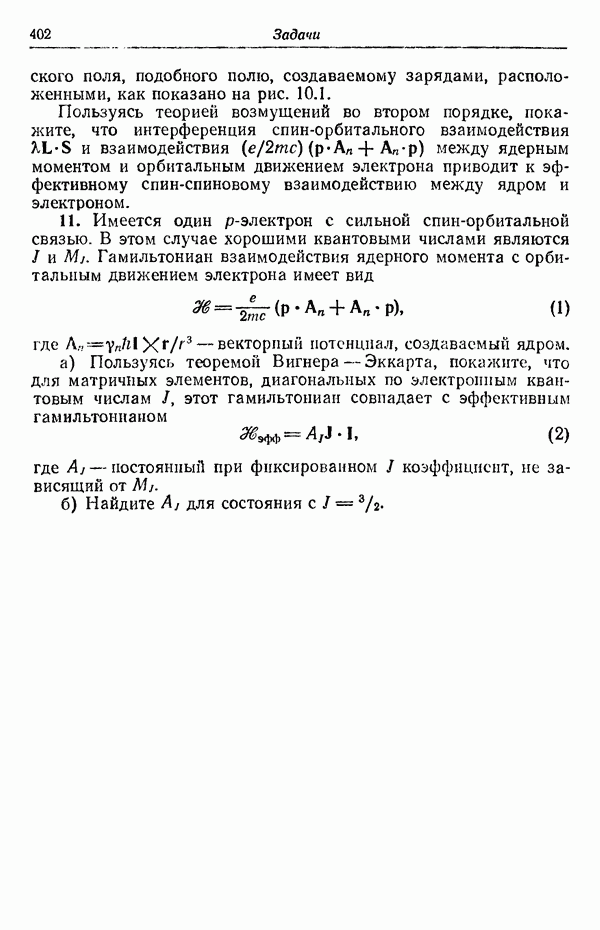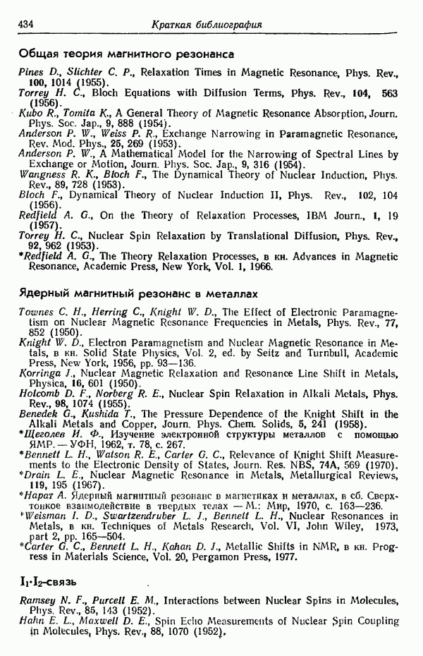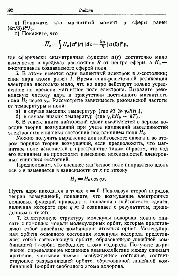 § 8. Эффекты второго порядка. Косвенная ядерная связьМы рассмотрели роль взаимодействий между ядрами и электронами в парамагнитных и ферромагнитных веществах. В диамагнитных веществах в отсутствие внешнего поля электроны и ядра не взаимодействуют в первом порядке теории возмущений, поскольку в этом случае полный спин электронов равен нулю. Однако это взаимодействие в диамагнетиках появляется во втором порядке теории возмущений) и приводит к возникновению так называемой косвенной связи.