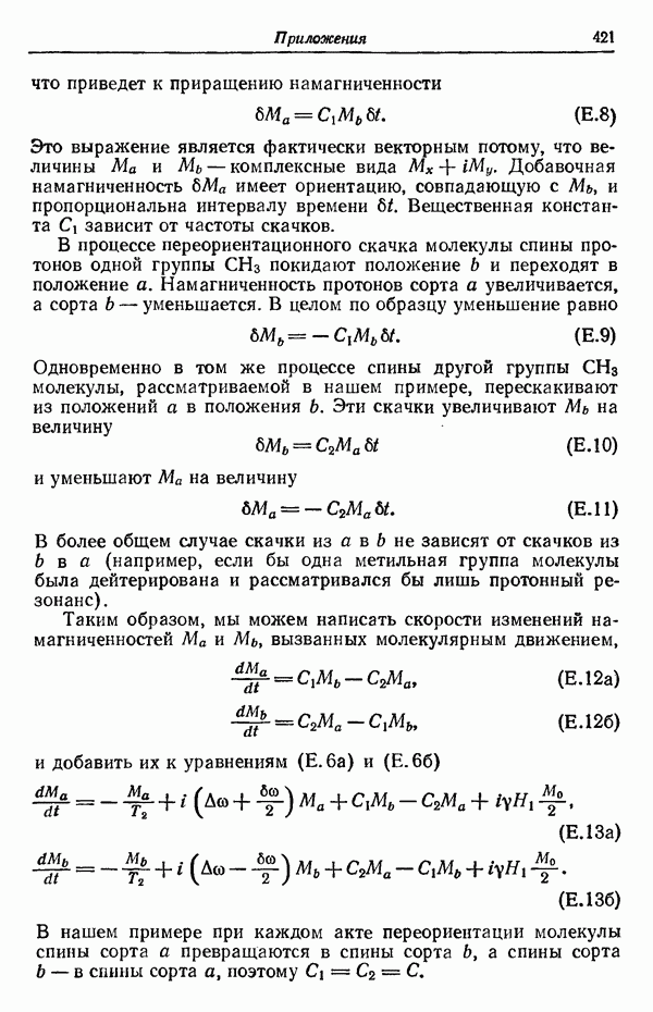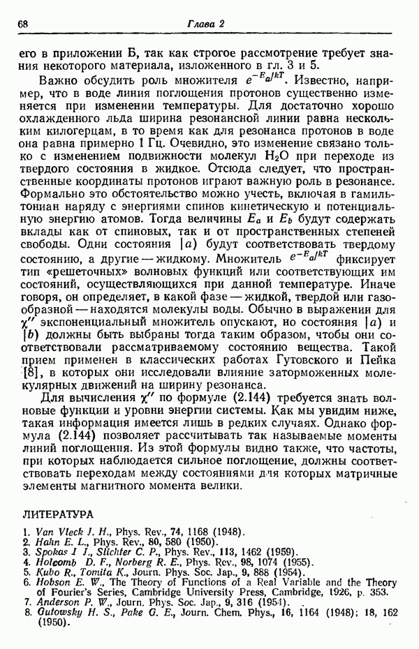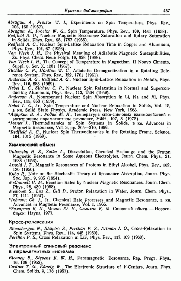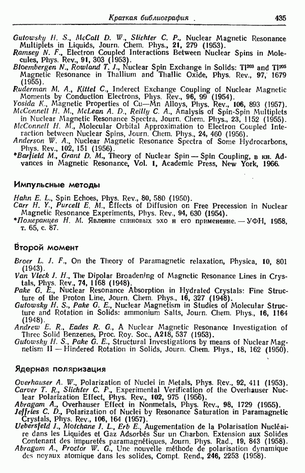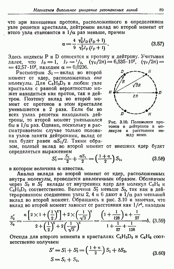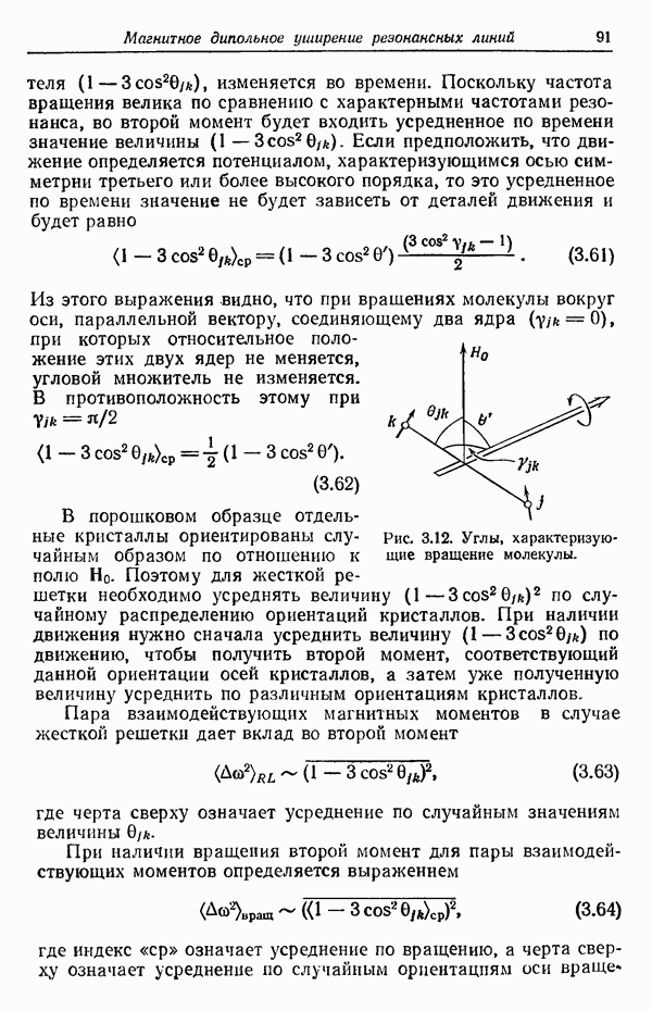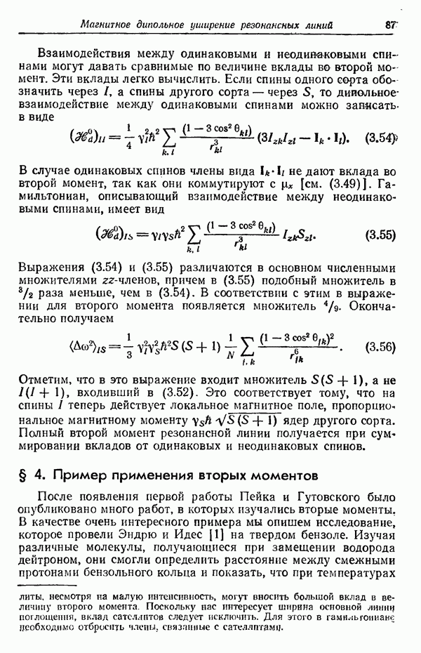 Эта формула дает результат, отличающийся на порядок величины или более от экспериментальных значений. Тем не менее она правильно отражает факт увеличения взаимодействия при переходе от молекулы Хан и Максвелл, а также Гутовский и Мак-Колл указали, что любой механизм, который, подобно рассматриваемому выше, приводит к билинейной зависимости взаимодействия от ядерных магнитных моментов, должен характеризоваться очень простой формулой. Поскольку взаимодействие жидкости усредняется по всем ориентациям молекулы, оно может зависеть только от взаимной ориентации спинов и его можно записать в виде