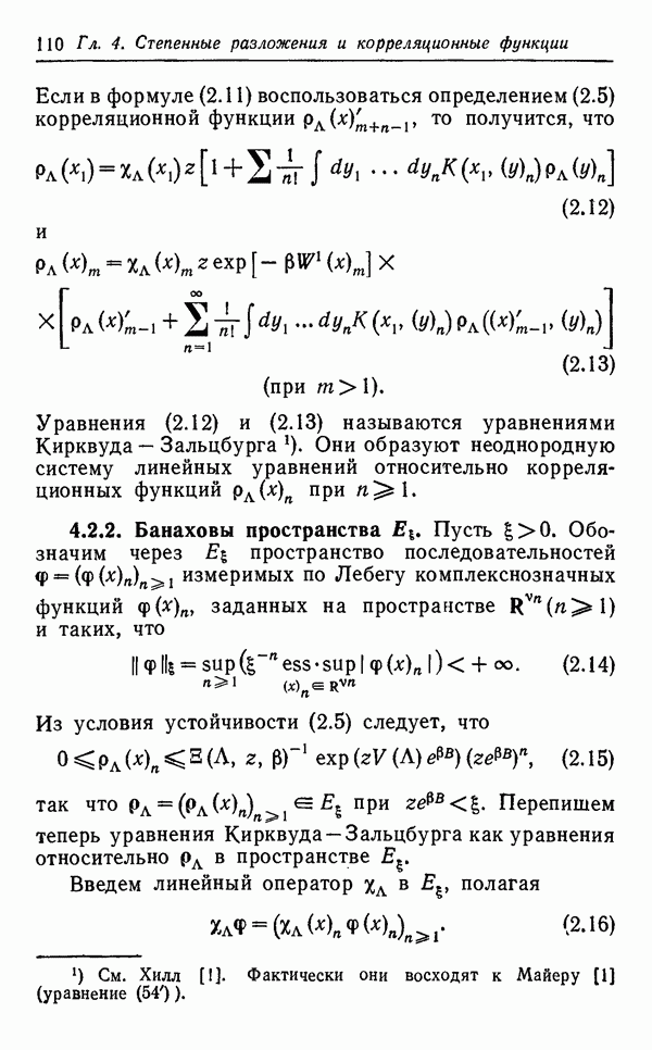 Пусть тогда правая часть равенства (5.6) является суммой произведений, содержащих по В качестве применения предложения 4.5.2 подставим оценки (5.4) в соотношение (2.8) и посмотрим, как изменятся при этом уравнения Кирквуда—Зальцбурга. Мы получим