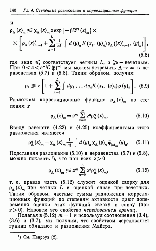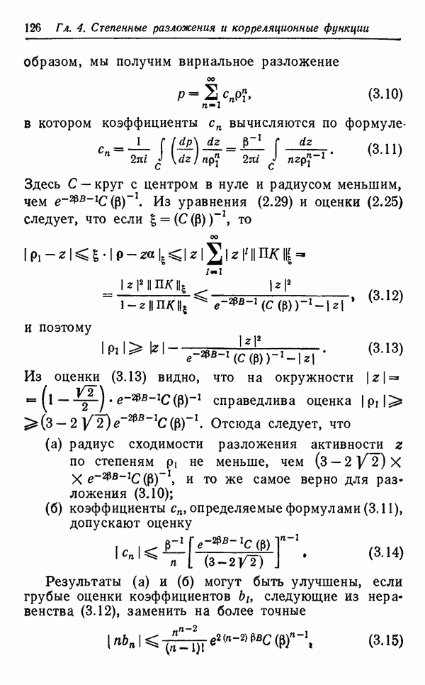 т. е. правая часть (5.12) служит оценкой сверху для Полагая в (5.12) Упомянем без доказательства, что это же свойство верно и для разложения по степеням активности величин Из формулы (5.12) следует, что функция