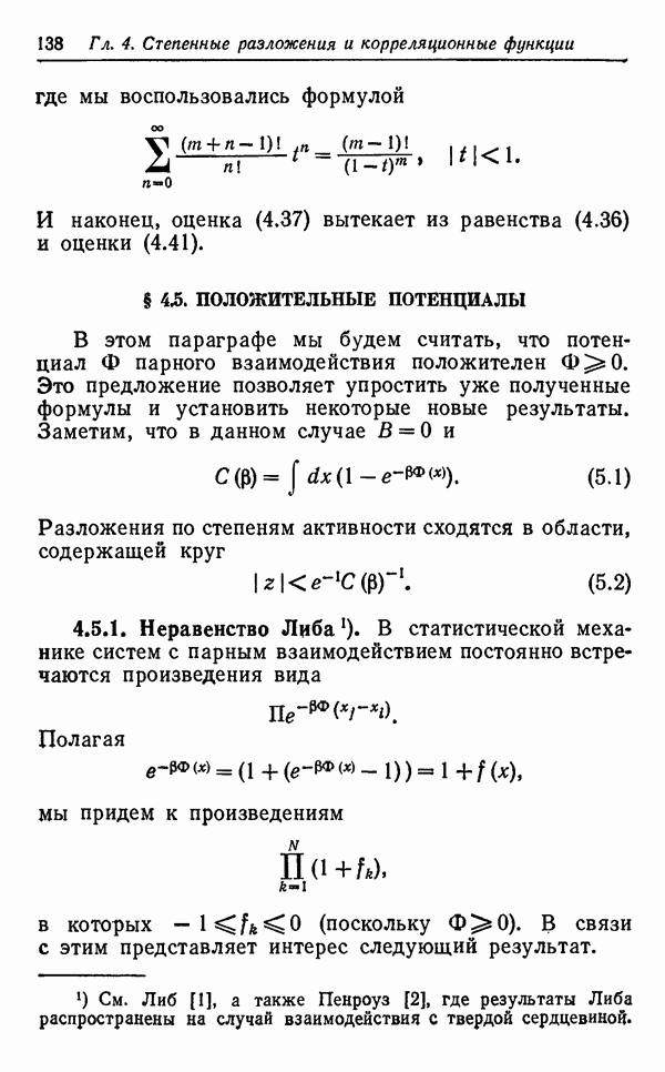 § 4.5. ПОЛОЖИТЕЛЬНЫЕ ПОТЕНЦИАЛЫВ этом параграфе мы будем считать, что потенциал Ф парного взаимодействия положителен