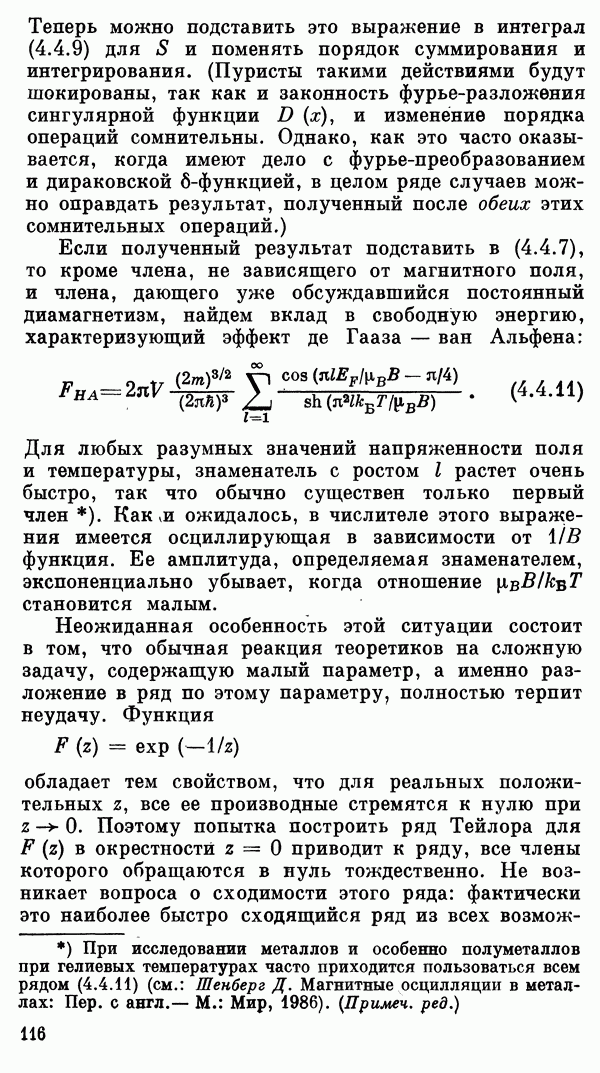 и эта догадка оказывается действительно правильной, С физической точки зрения, дело в том, что  Намеченная здесь в общих чертах аргументация не равнозначна строгому утверждению о сходимости ряда; такое условие не легче сформулировать, чем выписать простое условие сходимости ряда для собственных значений энергий. Это, во всяком случае, потребует более подробного определения величины  Историческая справка. Впервые автор натолкнулся на этот приятный сюрприз при изучении диамагнетизма электронов проводимости