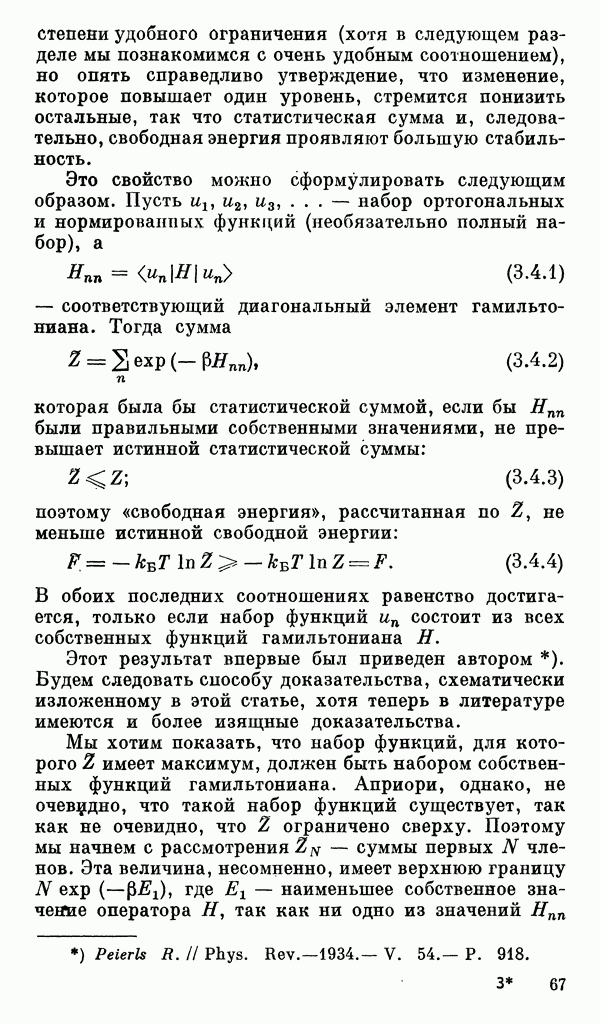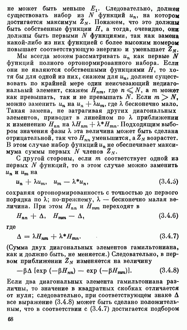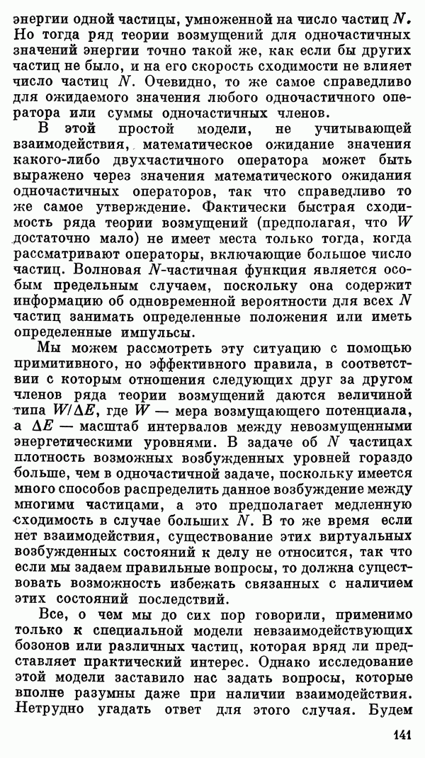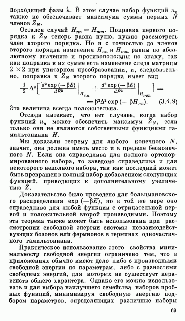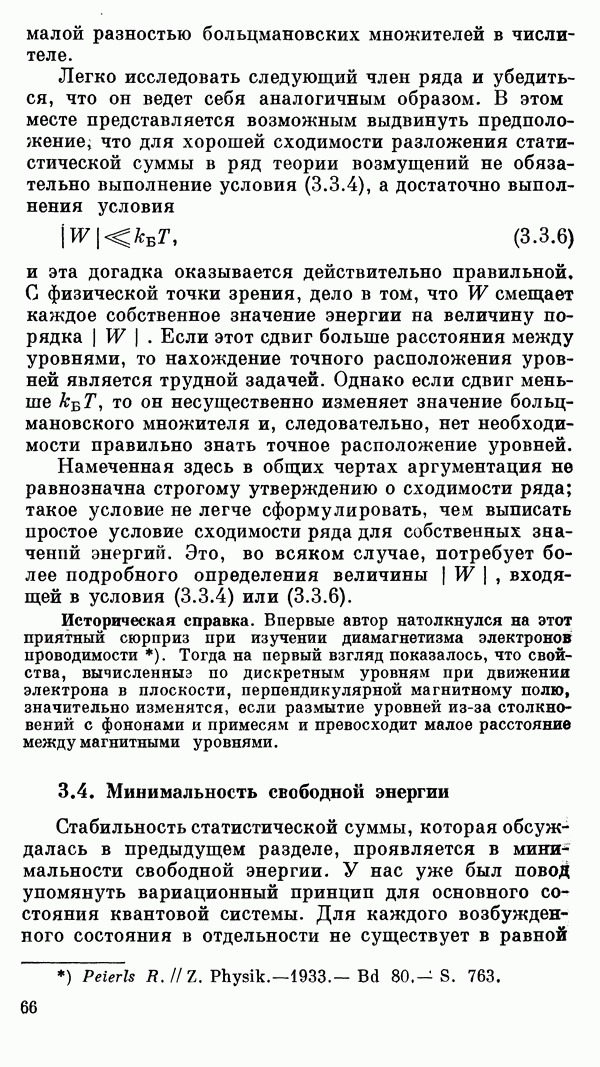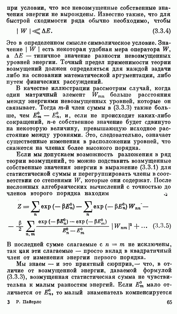 В последней сумме слагаемые с  Мы знаем — и это приятный сюрприз, — что, в отличие от возмущенной энергии, даваемой формулой (3.3.3), возмущенная статистическая сумма не чувствительна к малым разностям энергий. Если  малой разностью больцмановских множителей в числителе. Легко исследовать следующий член ряда и убедиться, что он ведет себя аналогичным образом. В этом месте представляется возможным выдвинуть предположение что для хорошей сходимости разложения статистической суммы в ряд теории возмущений не обязательно выполнение условия (3.3.4), а достаточно выполнения условия
