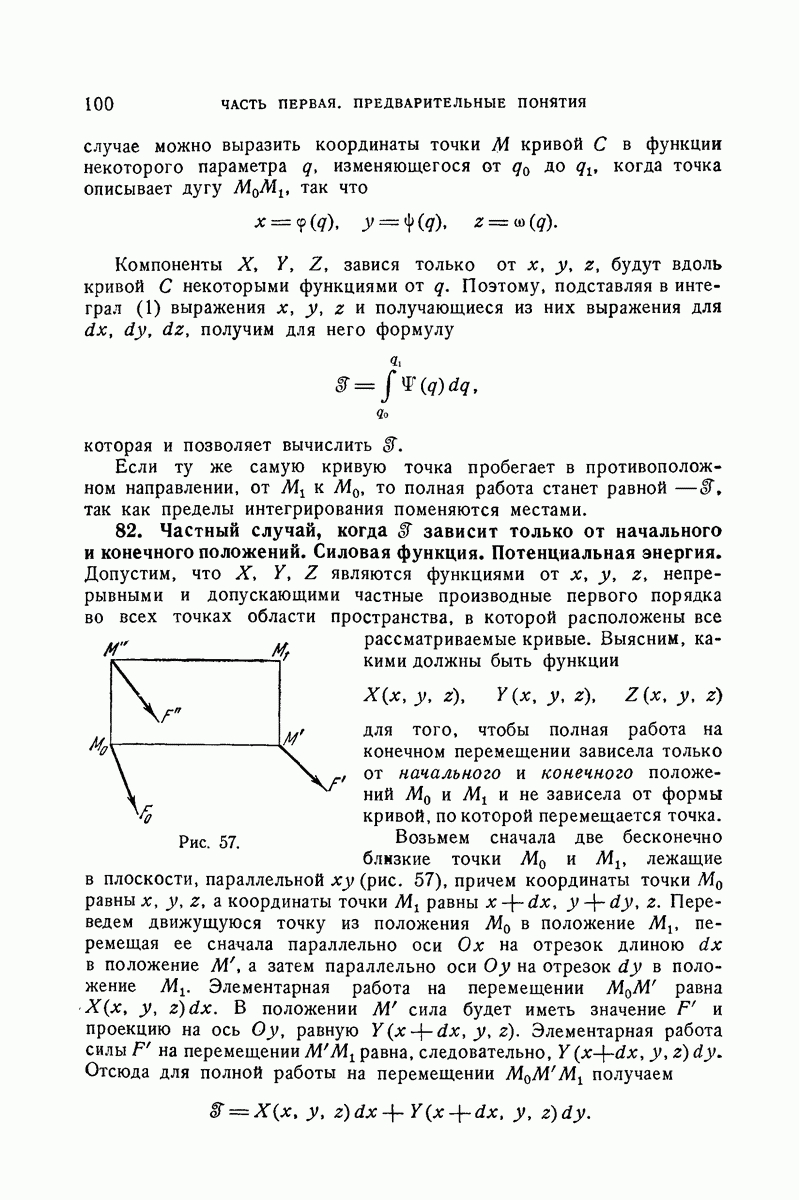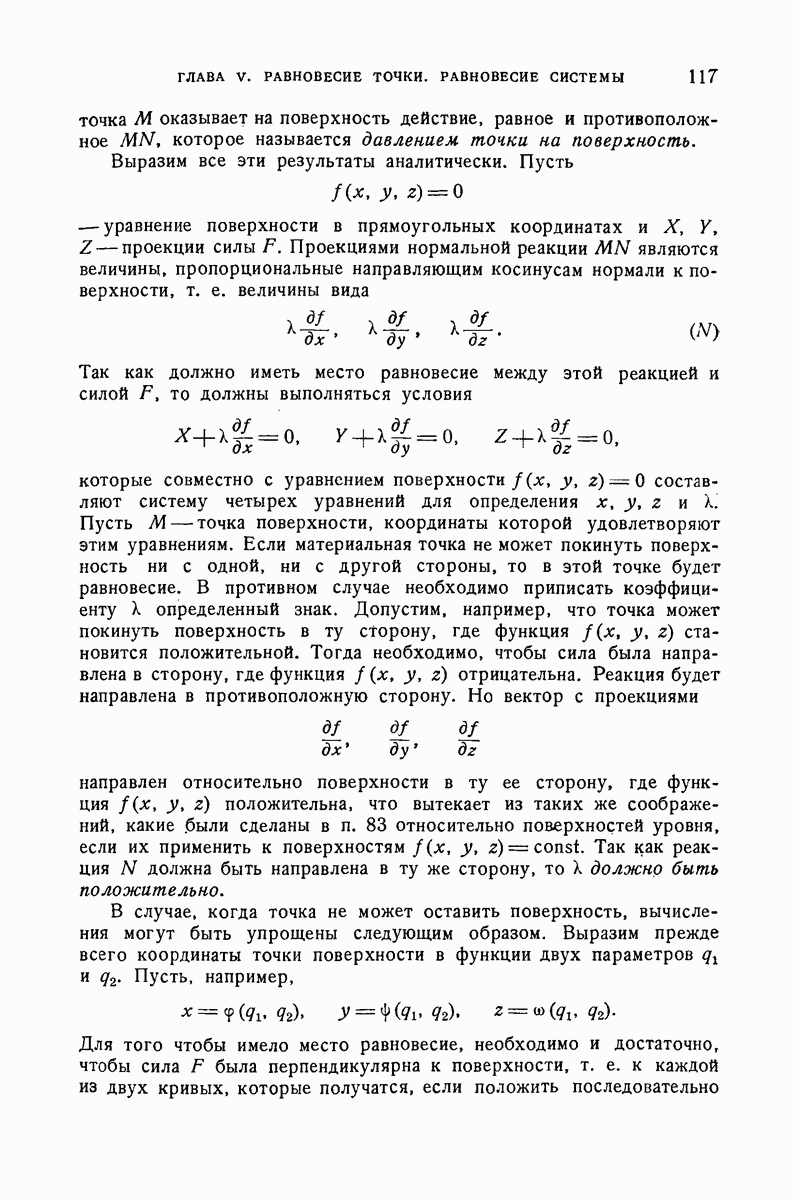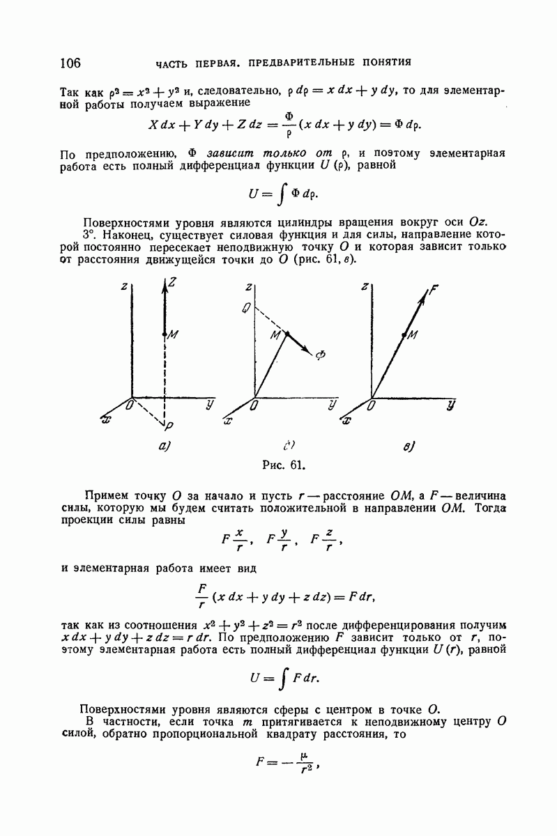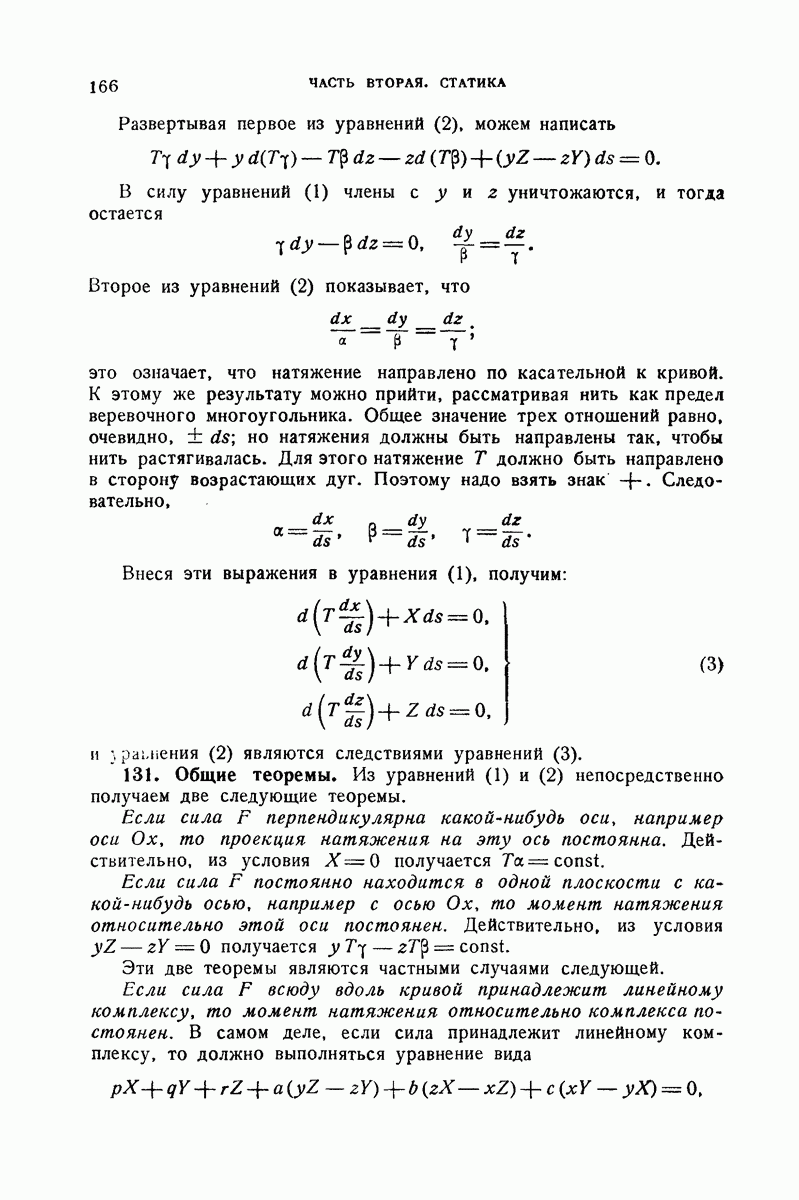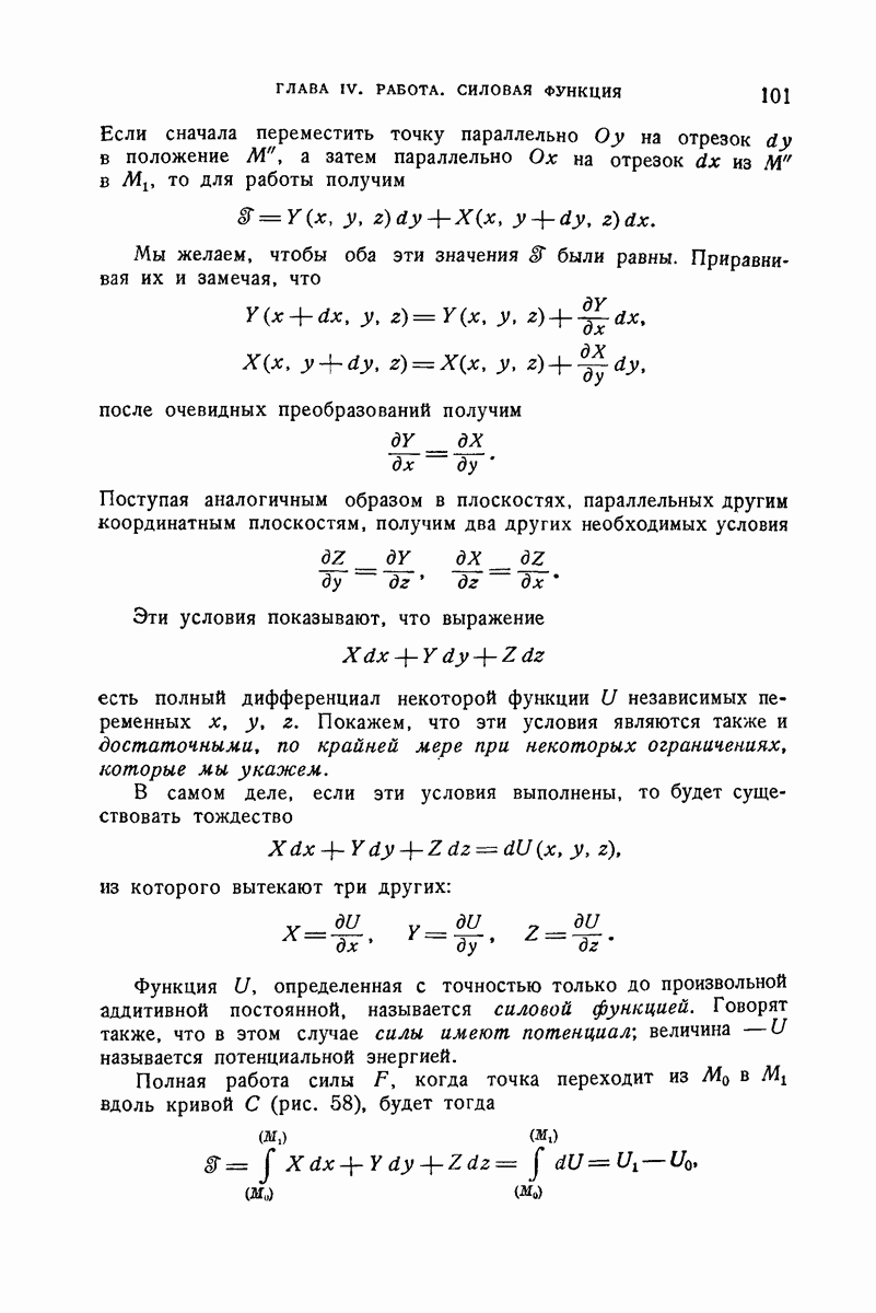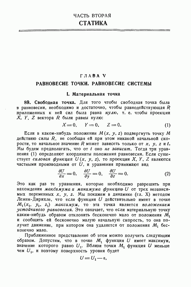 выражаемое уравнениями (1), не является простым тождеством-Возьмем, например, материальную точку, на которую действует сила, зависящая только от ее положения. Придавая точке различные положения и измеряя статически силу в каждом из этих положений, мы сможем узнать закон изменения силы в зависимости от положения точки. Аналитически мы узнаем проекции X, Y, Z силы в функции координат
