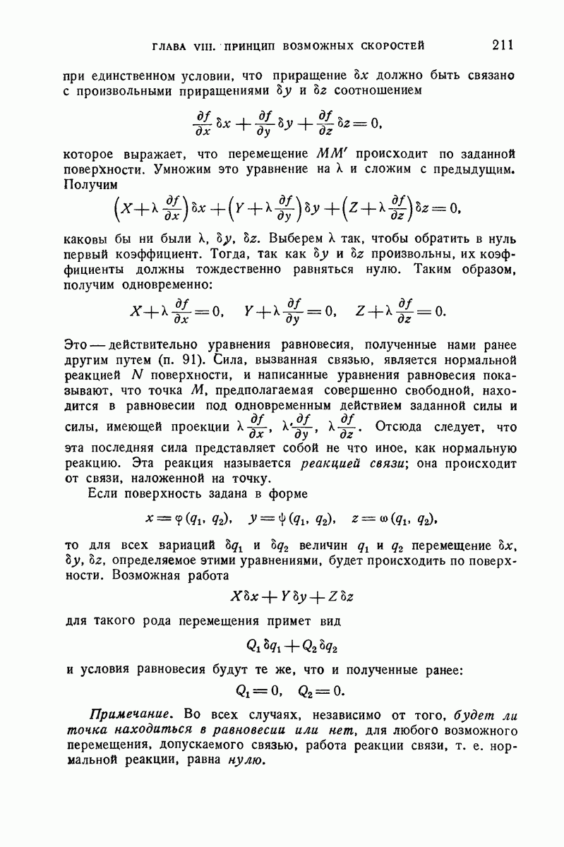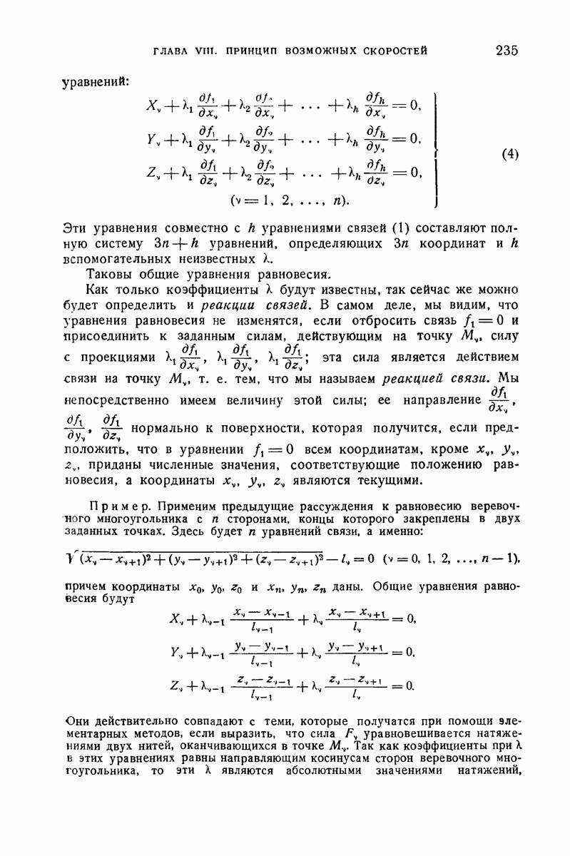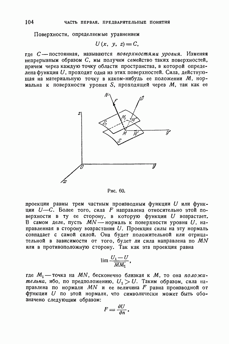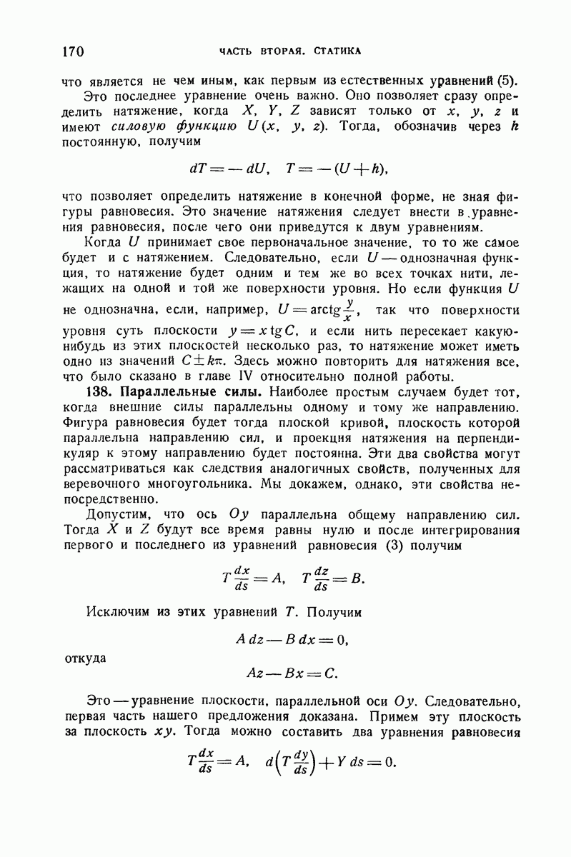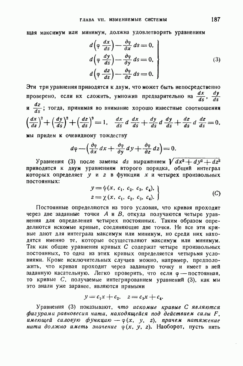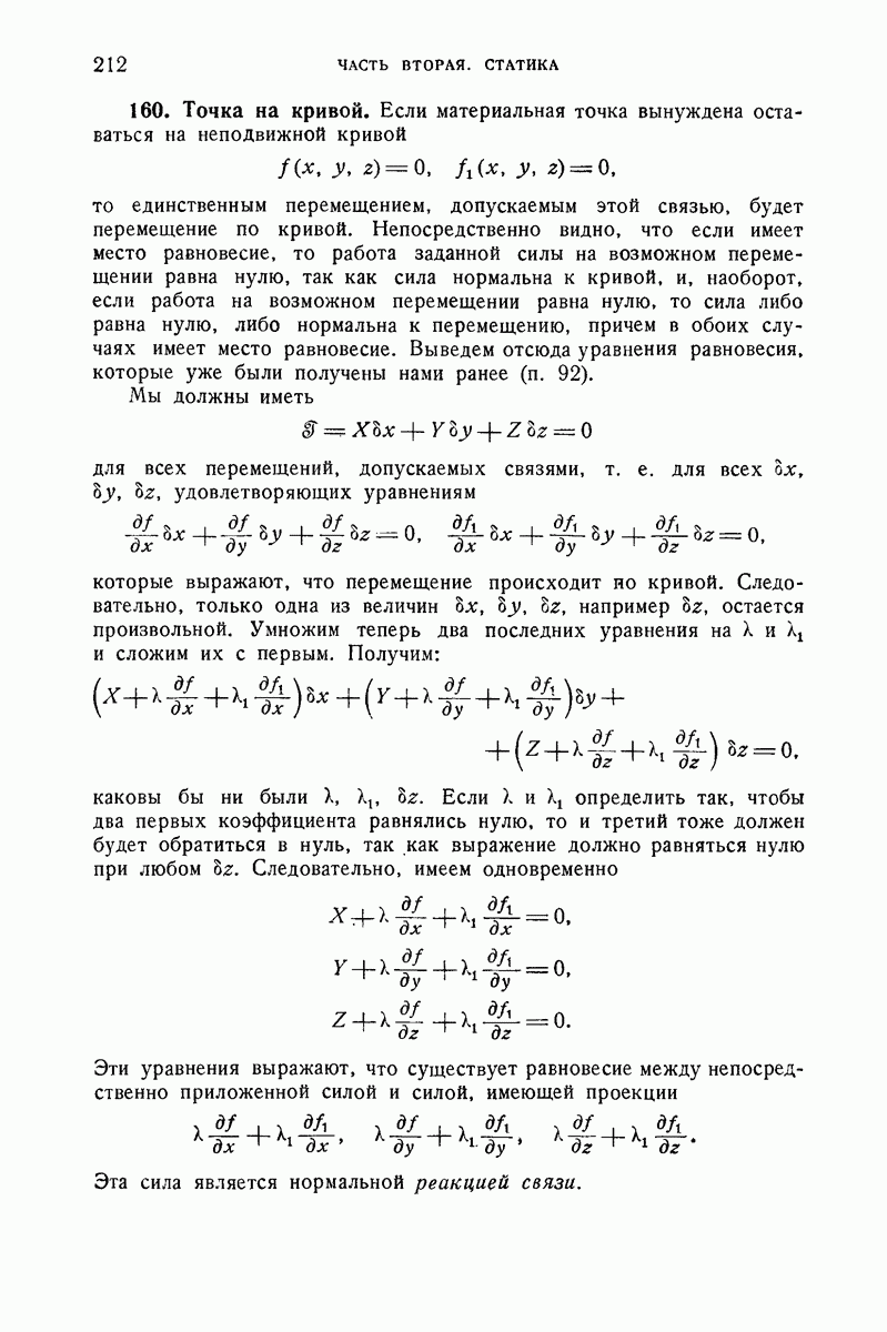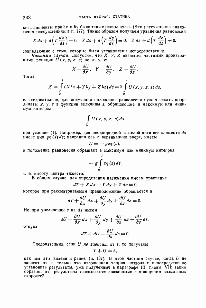 выражаемое уравнениями (1), не является простым тождеством-Возьмем, например, материальную точку, на которую действует сила, зависящая только от ее положения. Придавая точке различные положения и измеряя статически силу в каждом из этих положений, мы сможем узнать закон изменения силы в зависимости от положения точки. Аналитически мы узнаем проекции X, Y, Z силы в функции координат