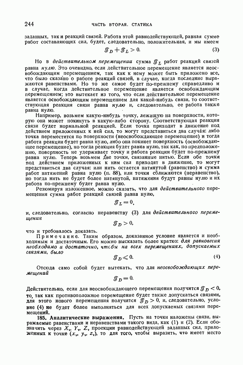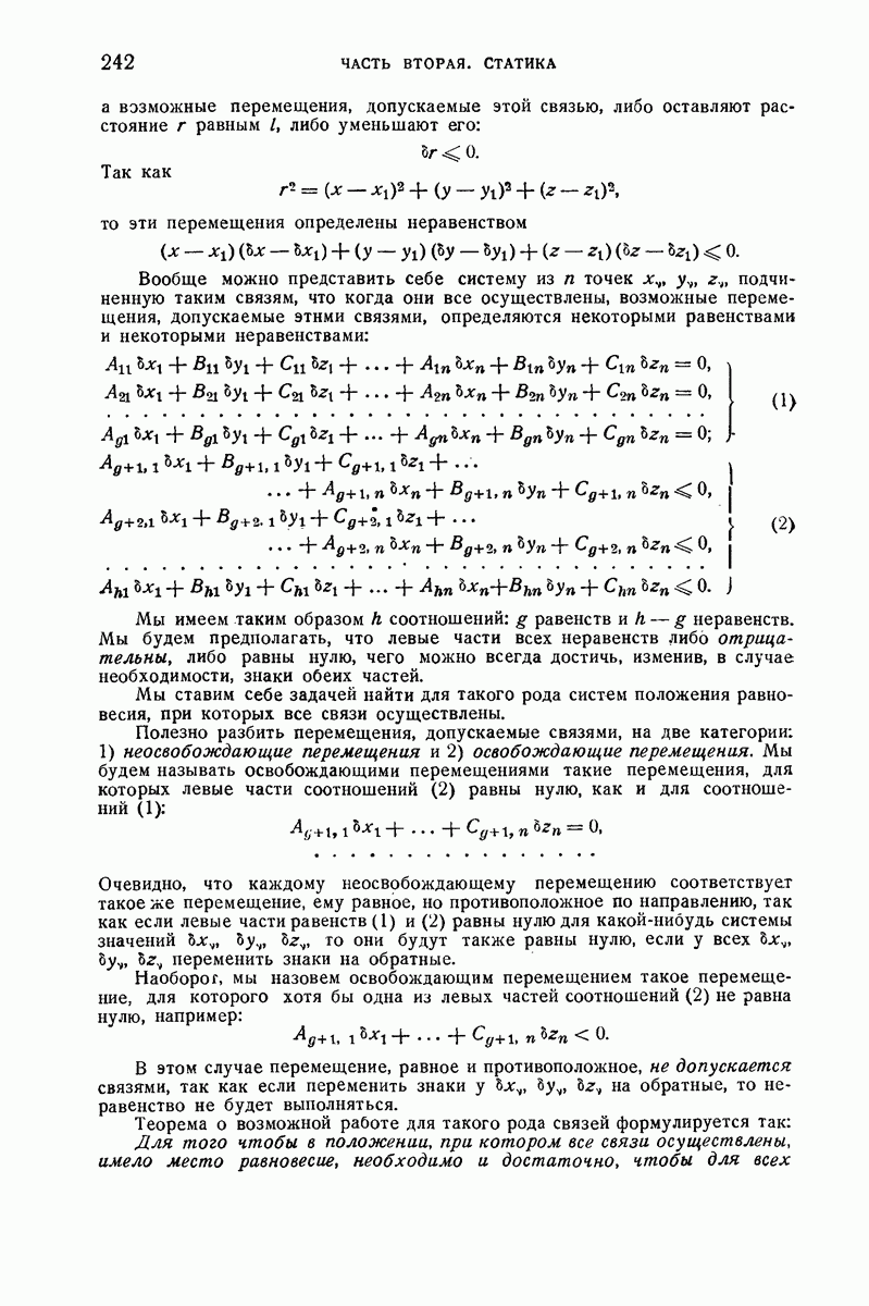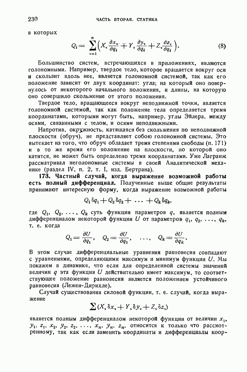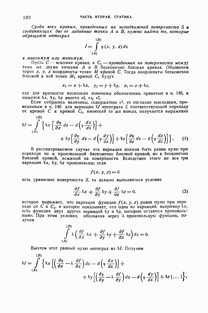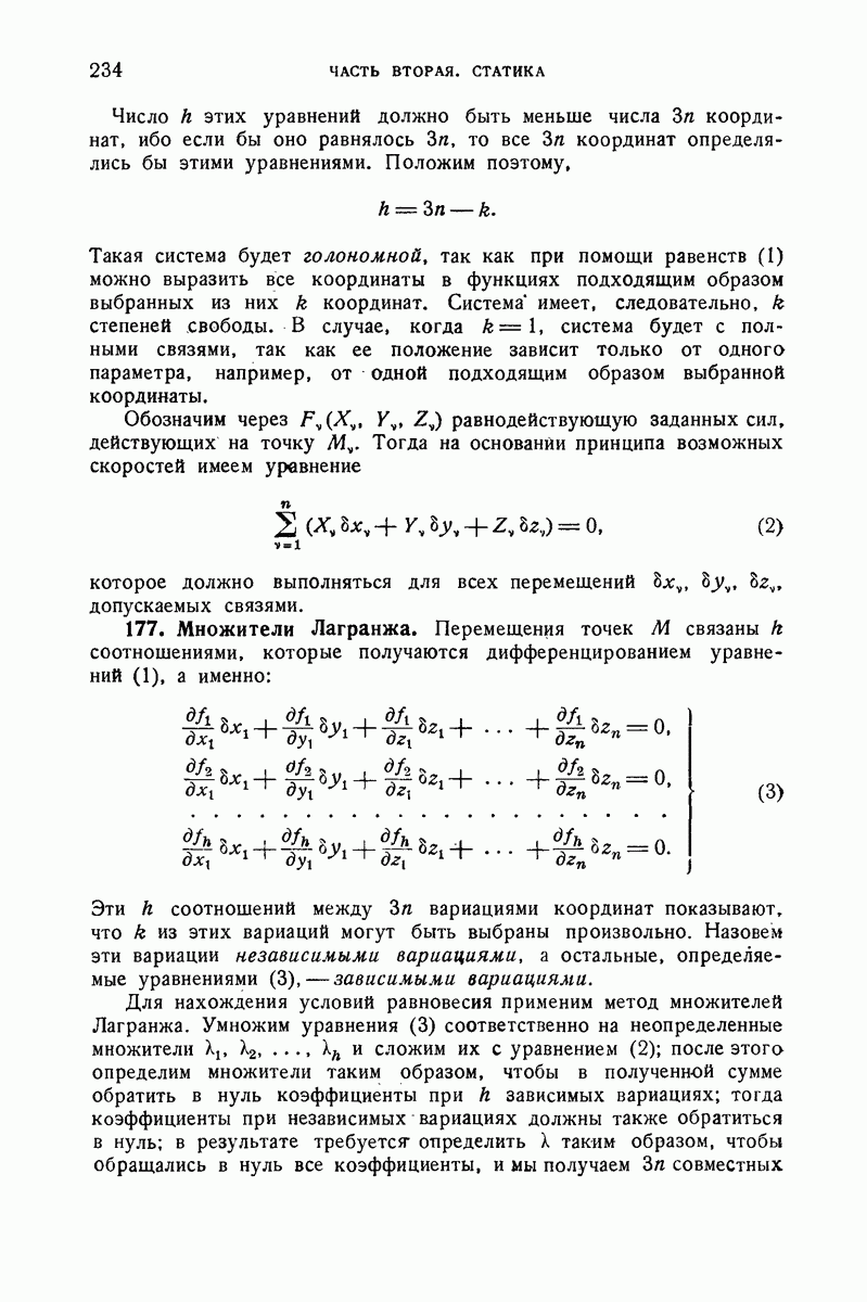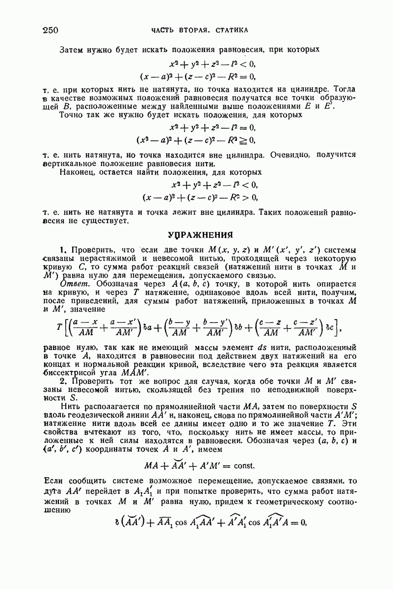 выражаемое уравнениями (1), не является простым тождеством-Возьмем, например, материальную точку, на которую действует сила, зависящая только от ее положения. Придавая точке различные положения и измеряя статически силу в каждом из этих положений, мы сможем узнать закон изменения силы в зависимости от положения точки. Аналитически мы узнаем проекции X, Y, Z силы в функции координат