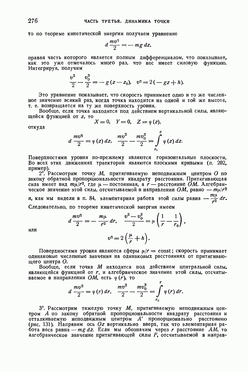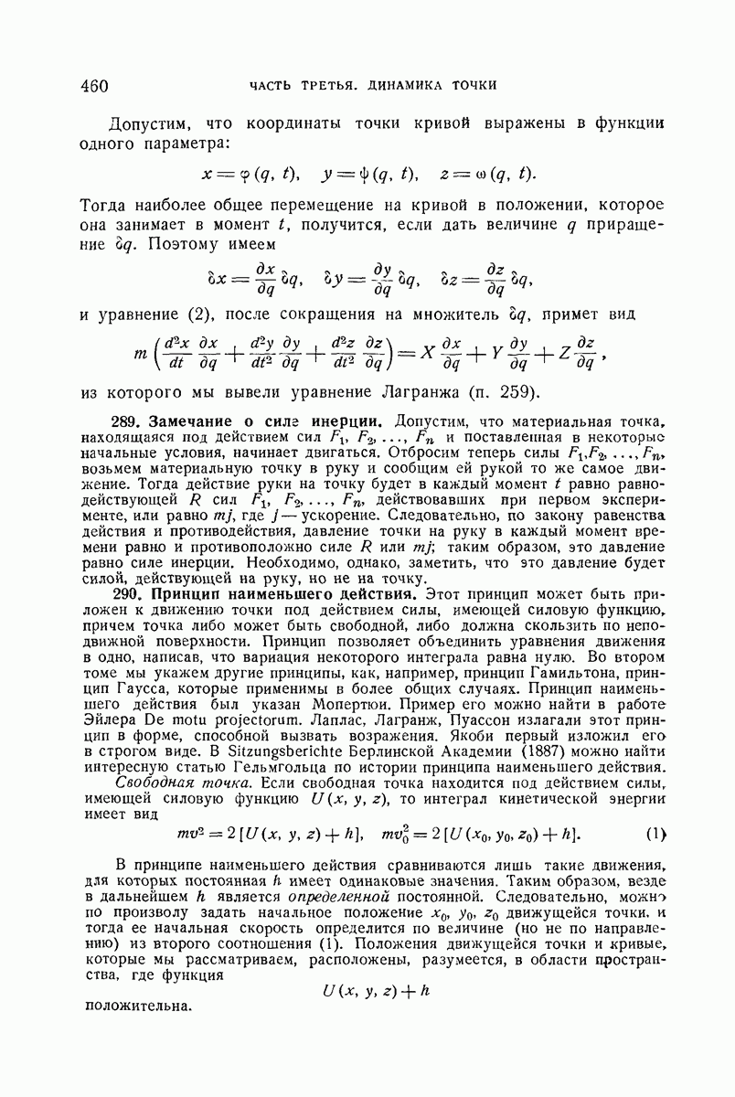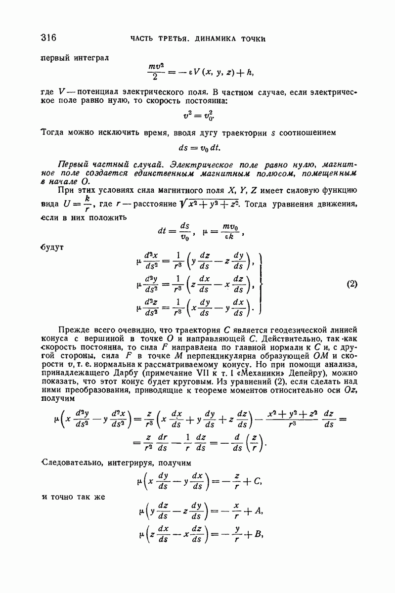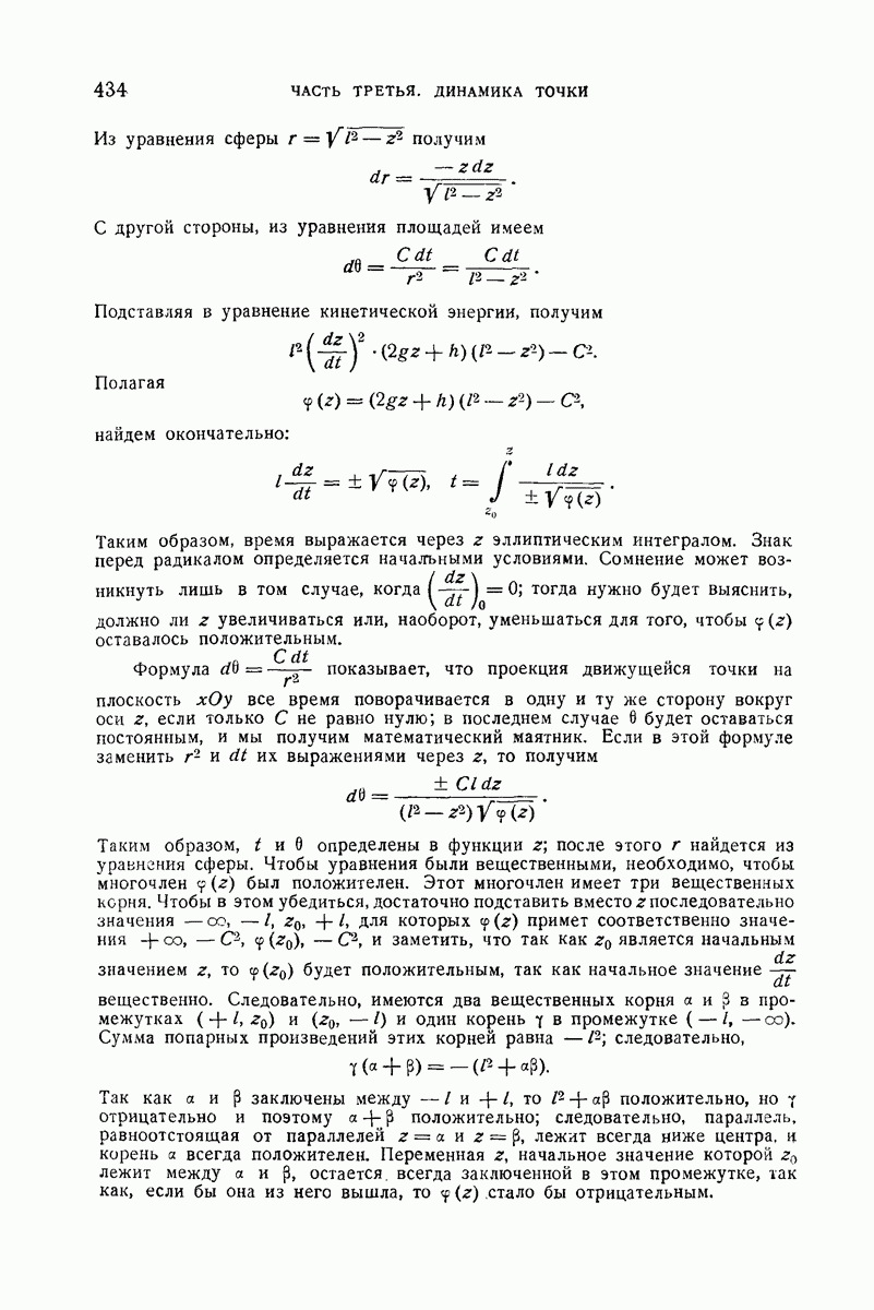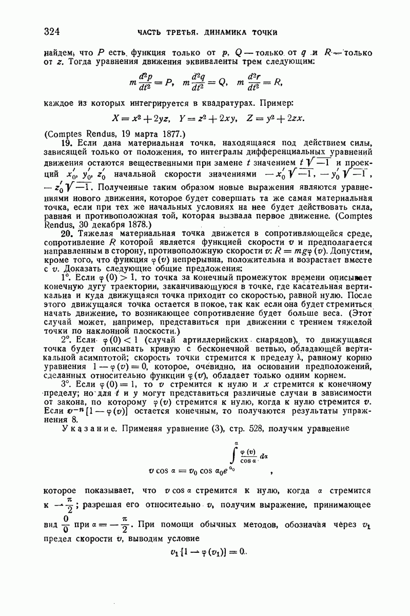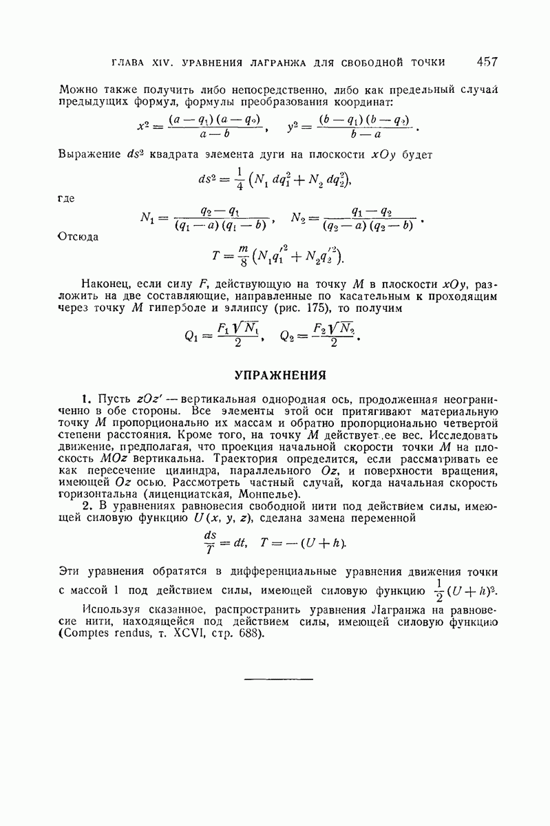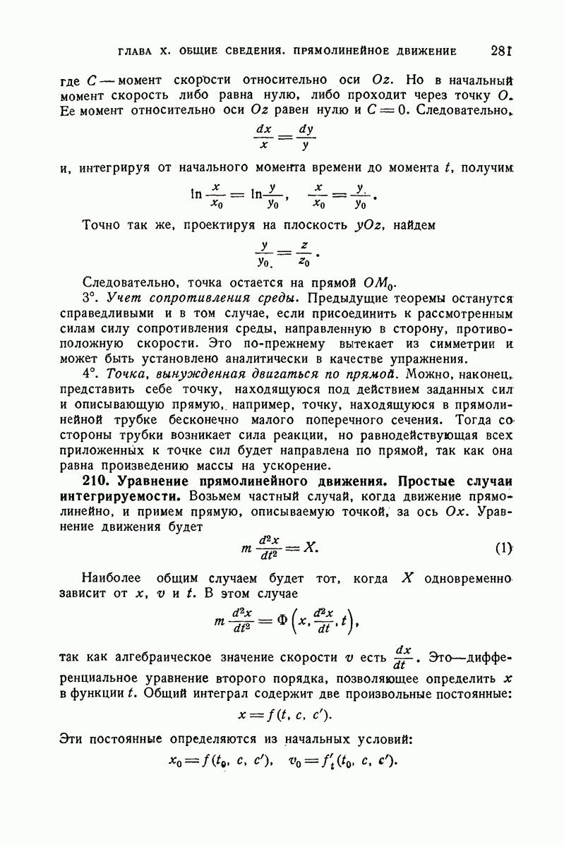 точки. Если потом отпустить точку и подвергнуть ее действию указанных сил, то она придет в движение, уравнения которого в конечной форме получатся после интегрирования уравнений (1). В этих уравнениях проекции X, Y, Z являются известными функциями координат