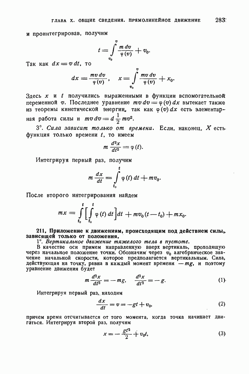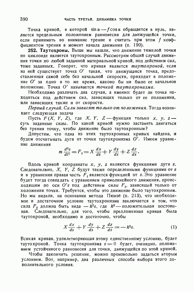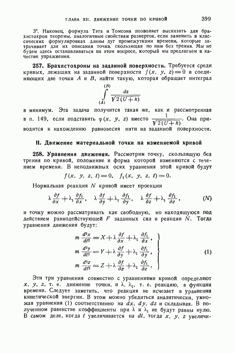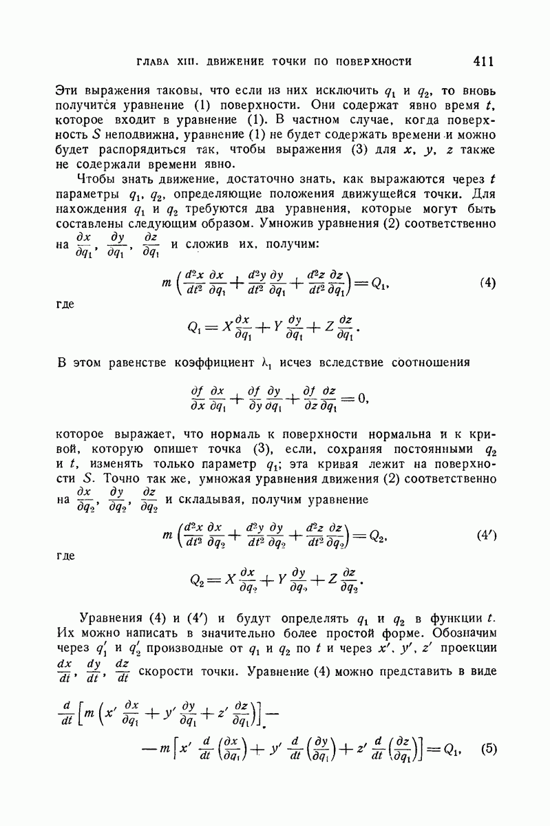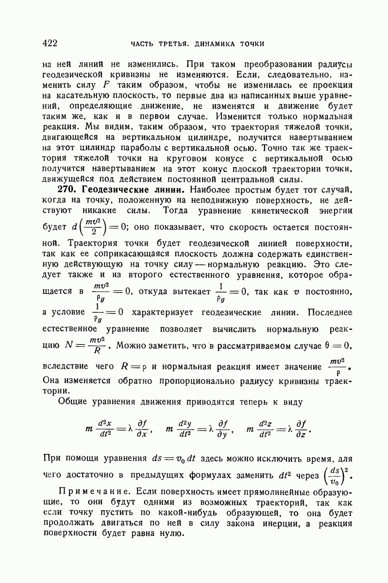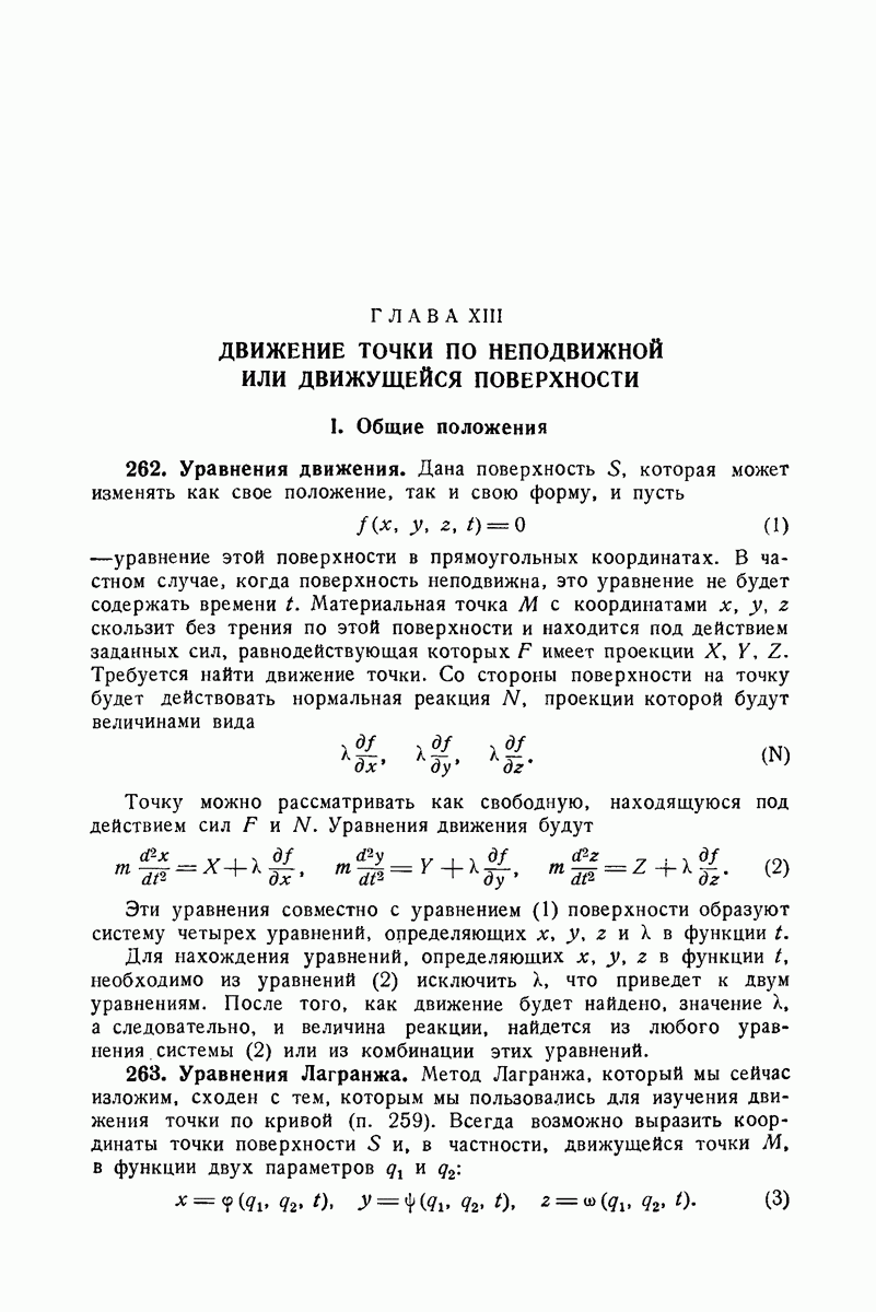 точки. Если потом отпустить точку и подвергнуть ее действию указанных сил, то она придет в движение, уравнения которого в конечной форме получатся после интегрирования уравнений (1). В этих уравнениях проекции X, Y, Z являются известными функциями координат