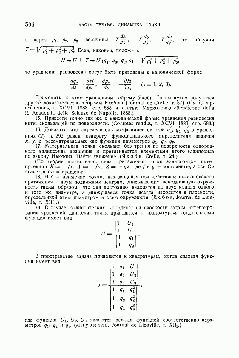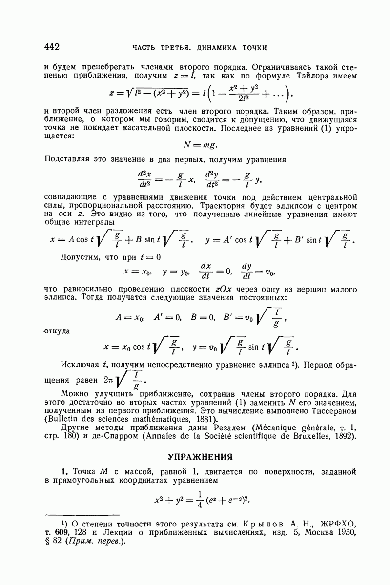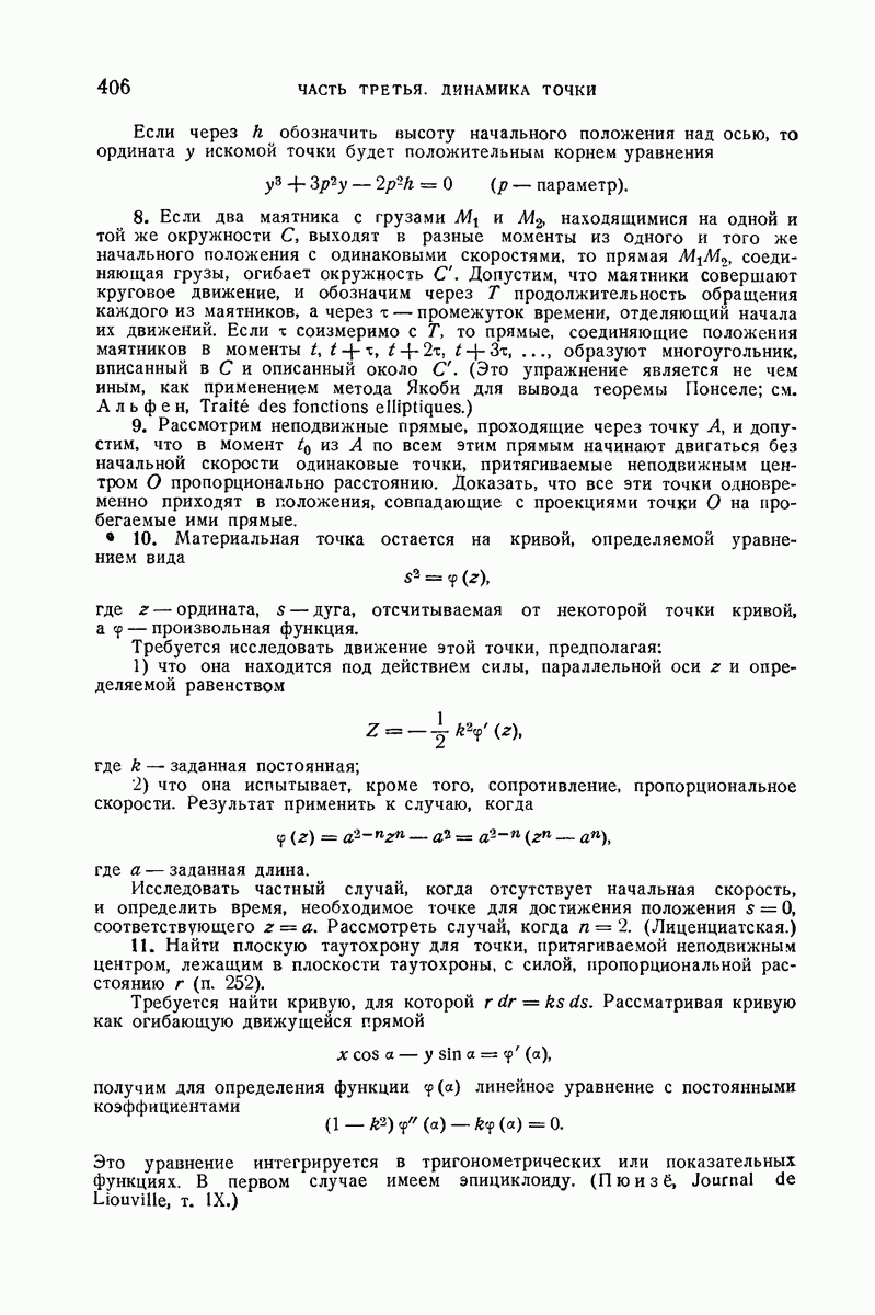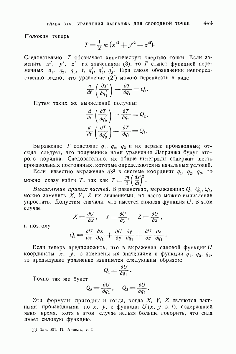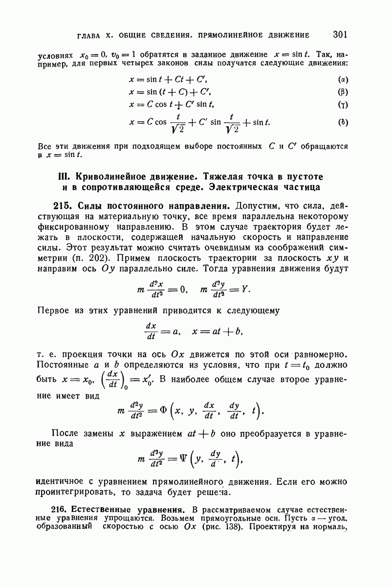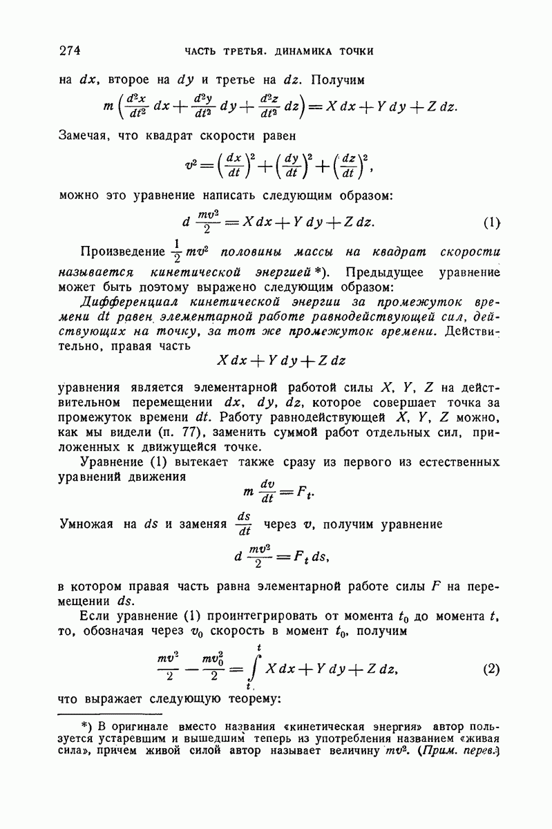 точки. Если потом отпустить точку и подвергнуть ее действию указанных сил, то она придет в движение, уравнения которого в конечной форме получатся после интегрирования уравнений (1). В этих уравнениях проекции X, Y, Z являются известными функциями координат