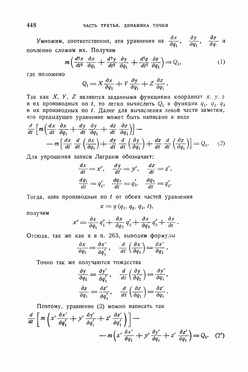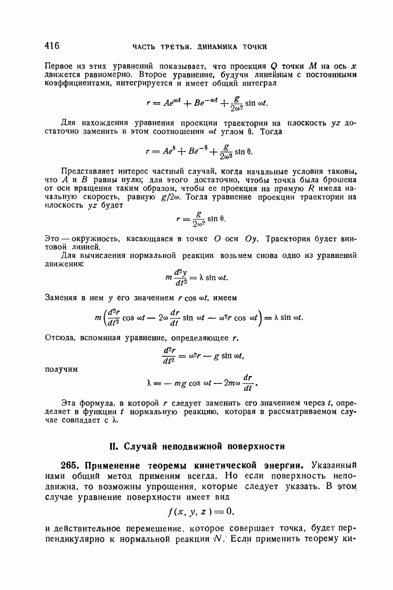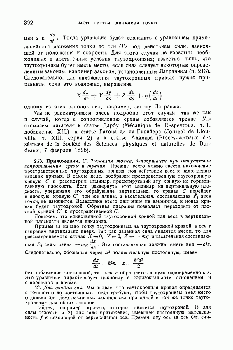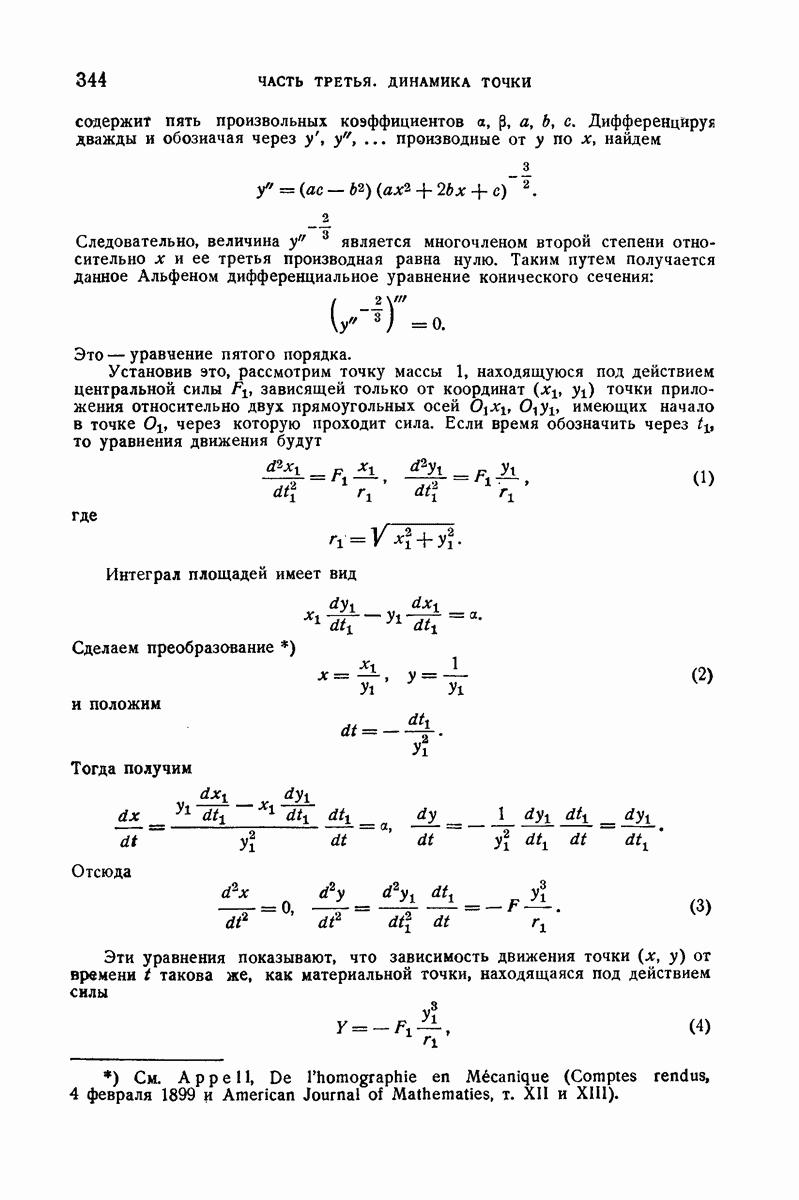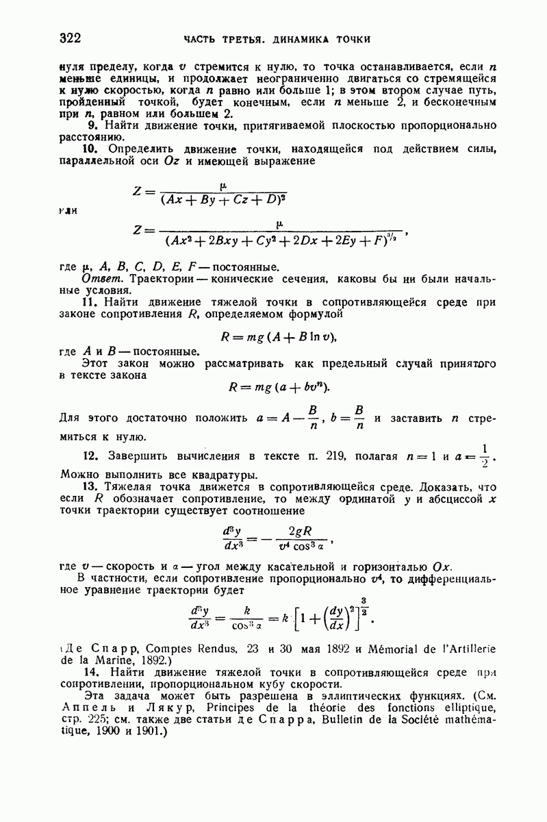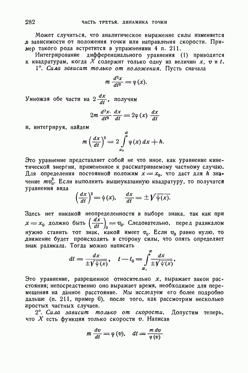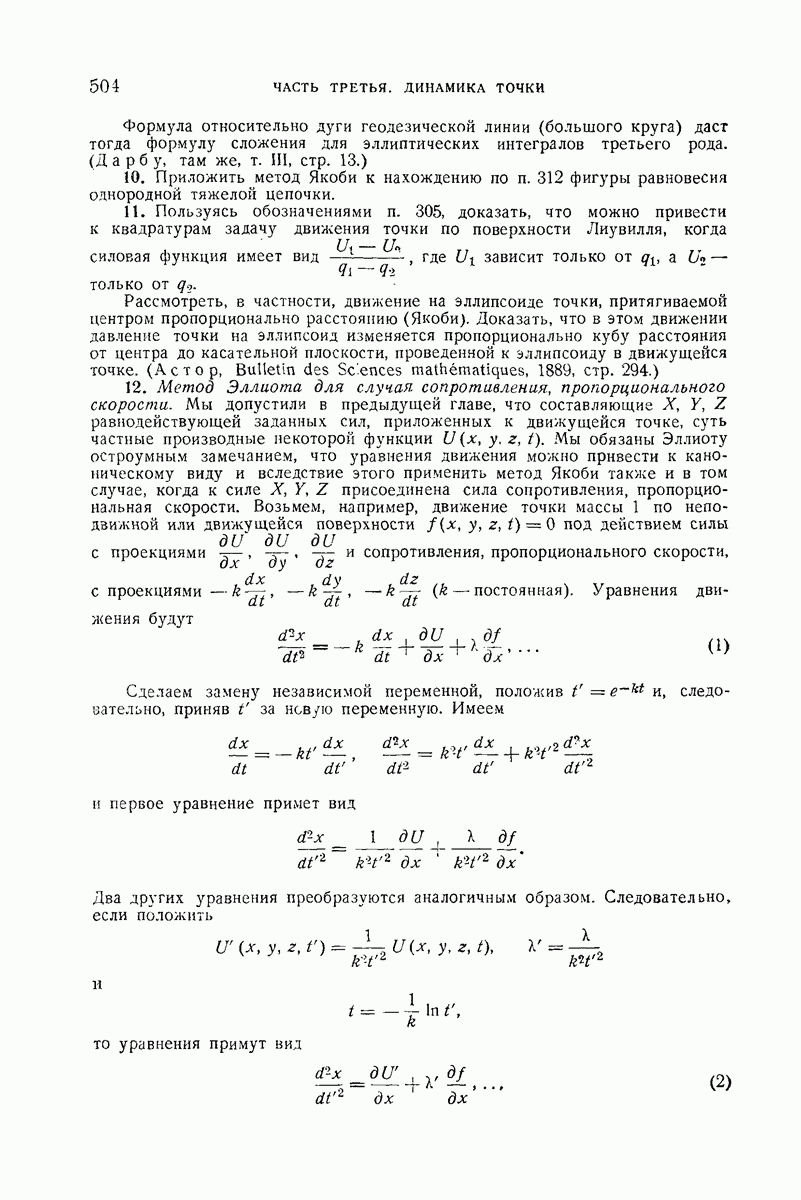 точки. Если потом отпустить точку и подвергнуть ее действию указанных сил, то она придет в движение, уравнения которого в конечной форме получатся после интегрирования уравнений (1). В этих уравнениях проекции X, Y, Z являются известными функциями координат