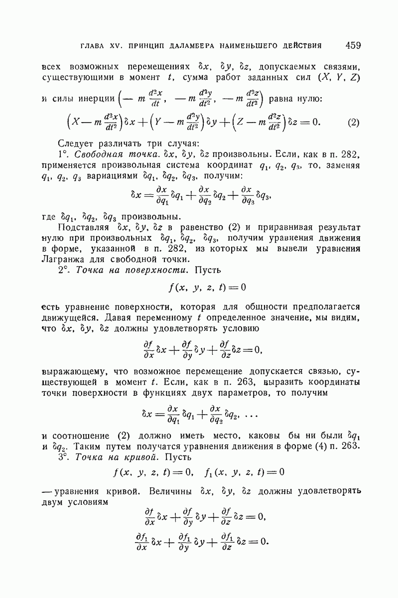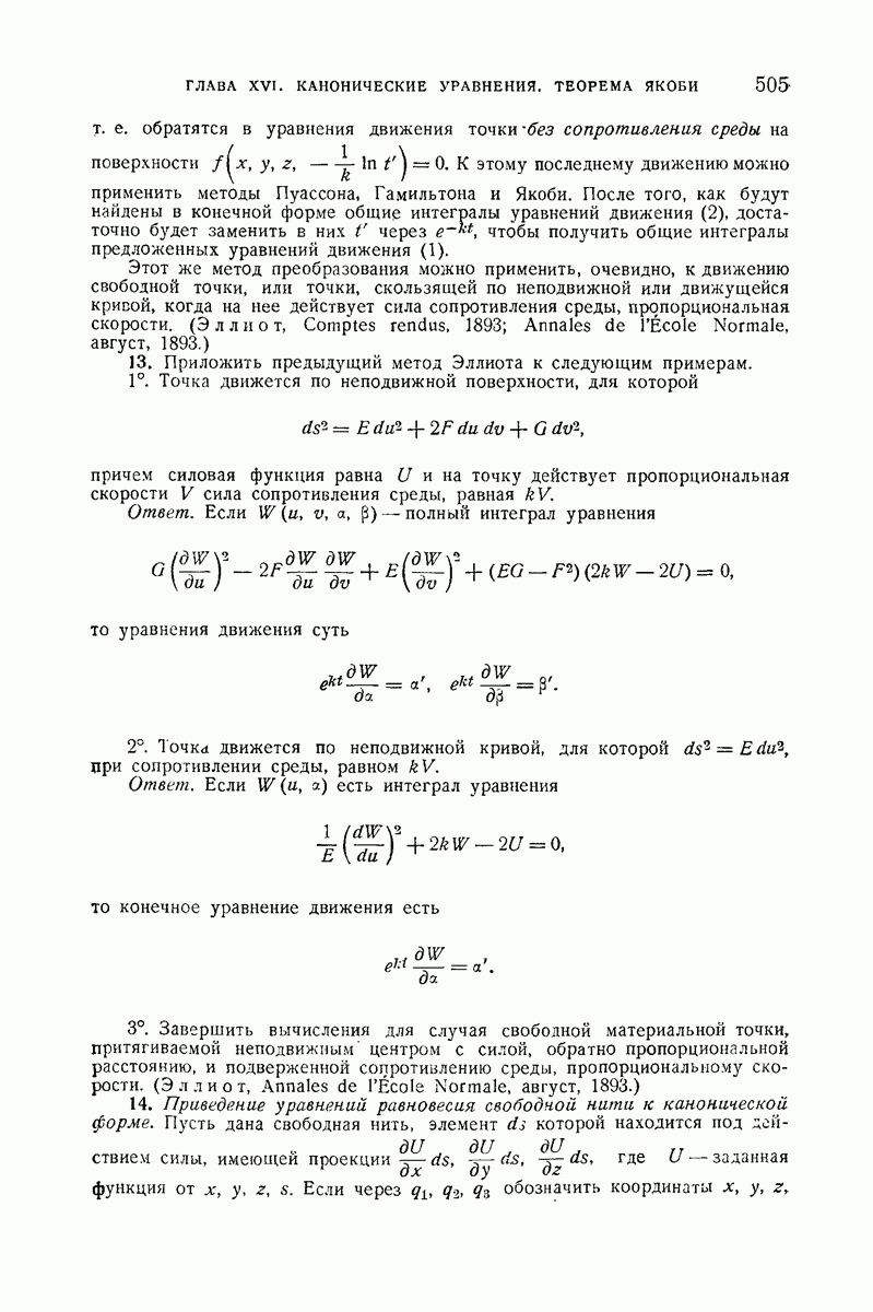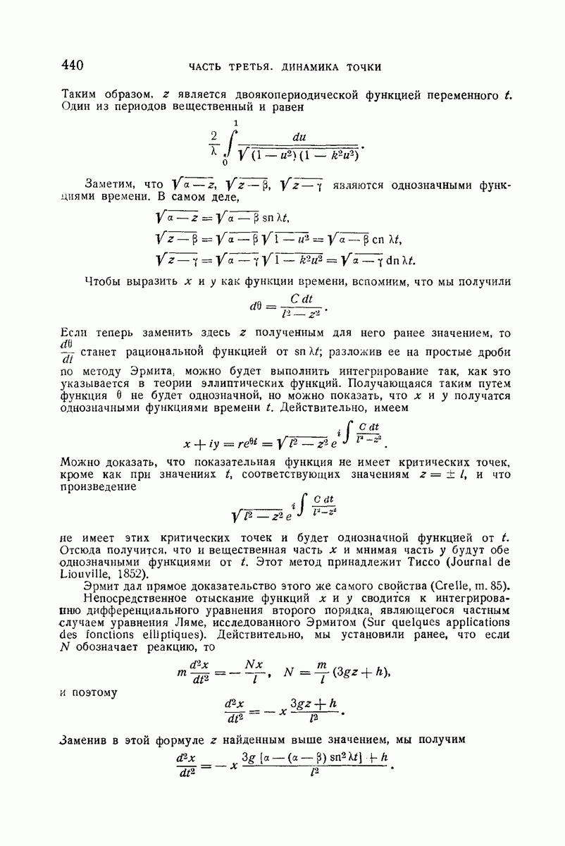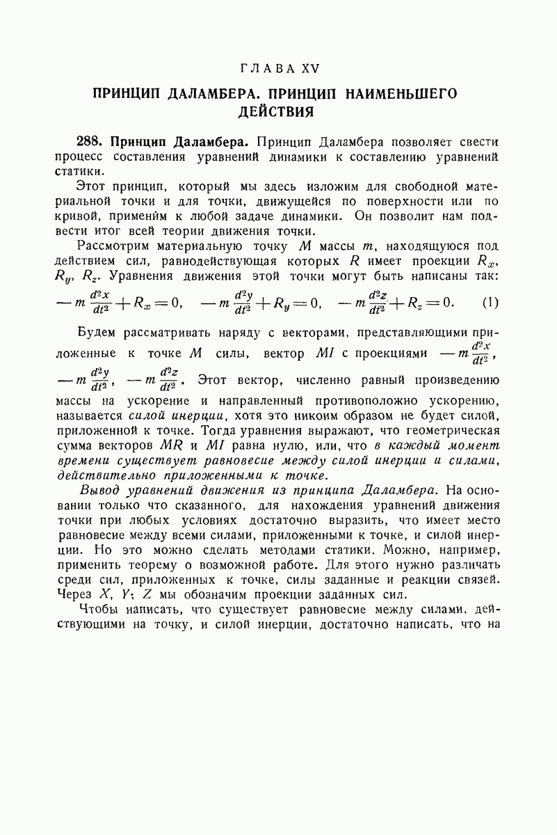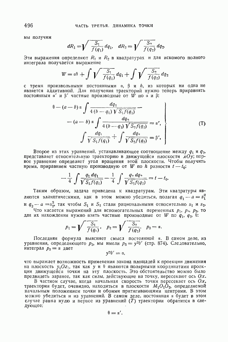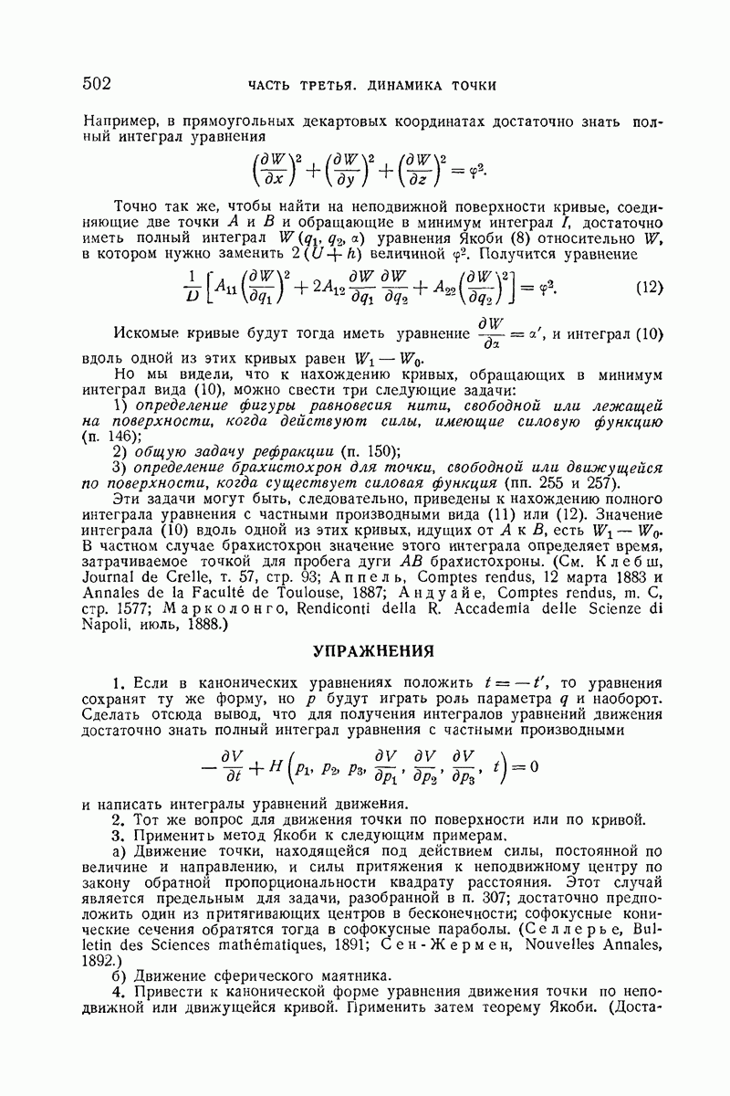 точки. Если потом отпустить точку и подвергнуть ее действию указанных сил, то она придет в движение, уравнения которого в конечной форме получатся после интегрирования уравнений (1). В этих уравнениях проекции X, Y, Z являются известными функциями координат