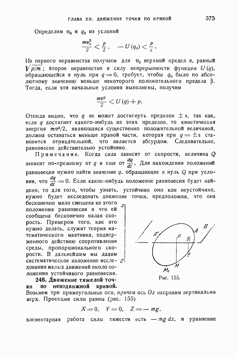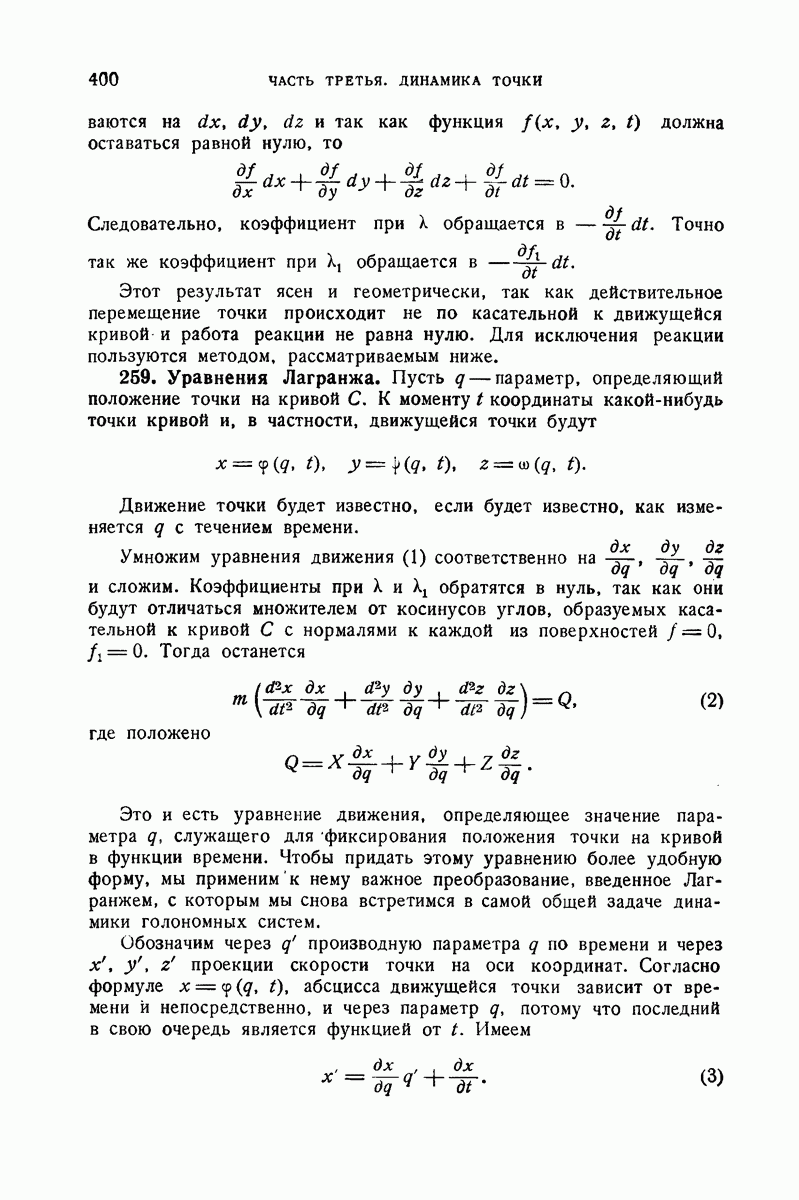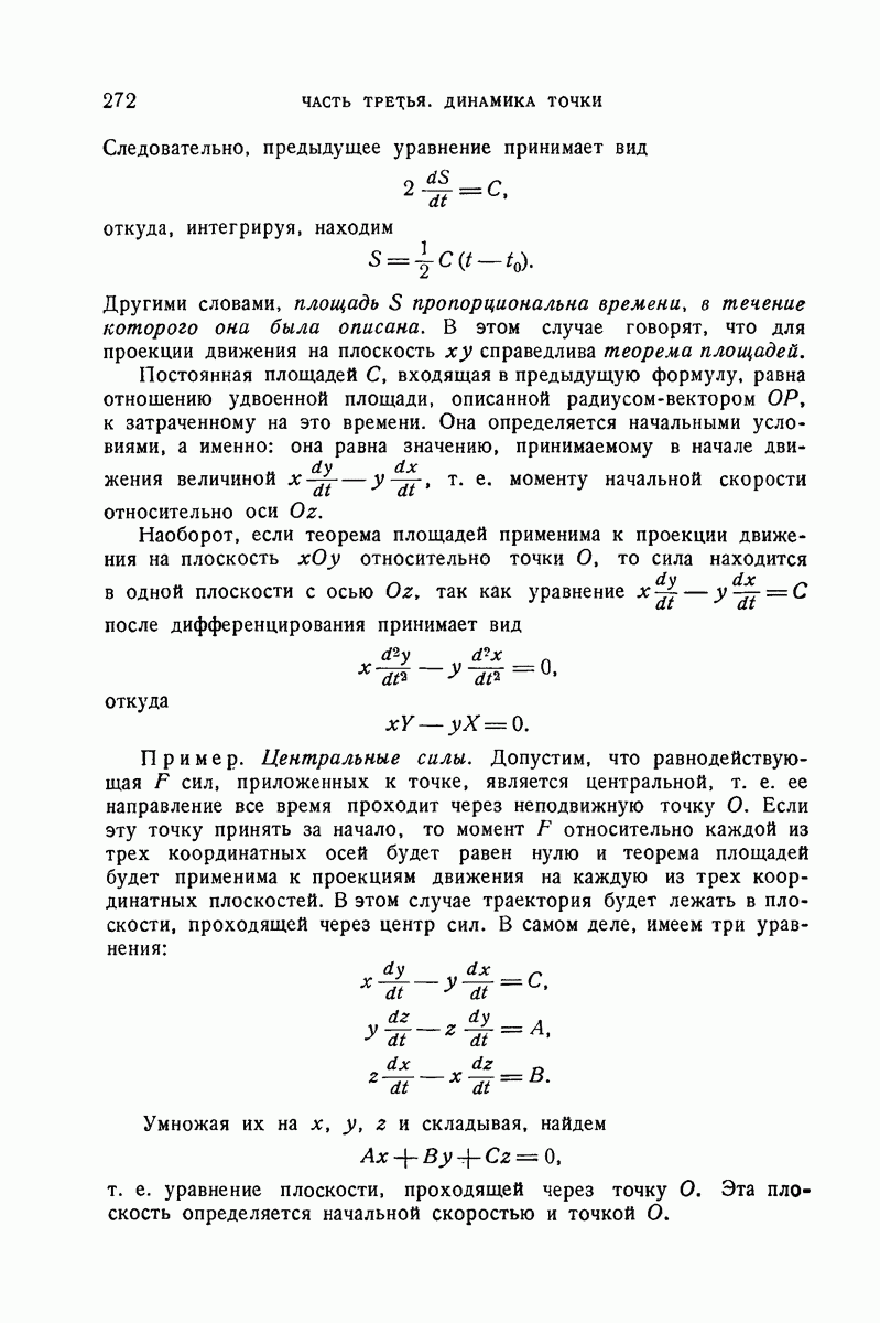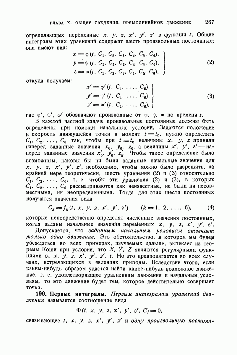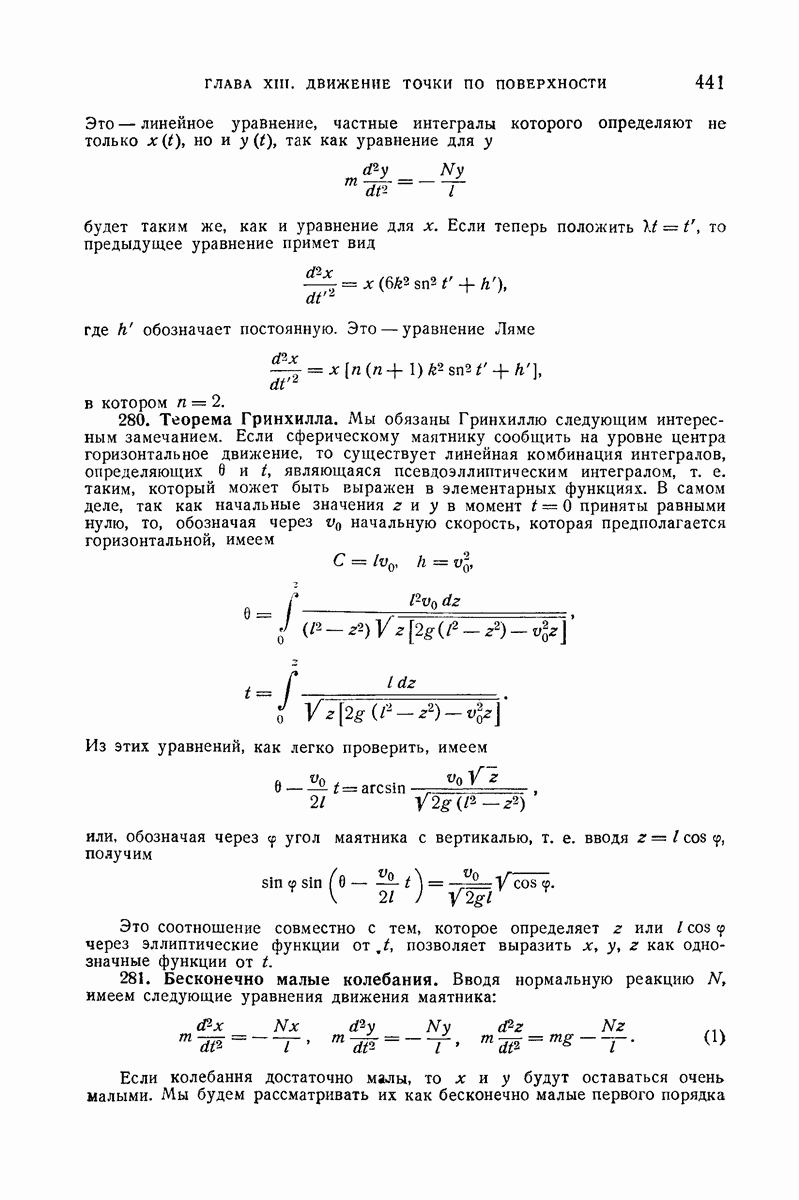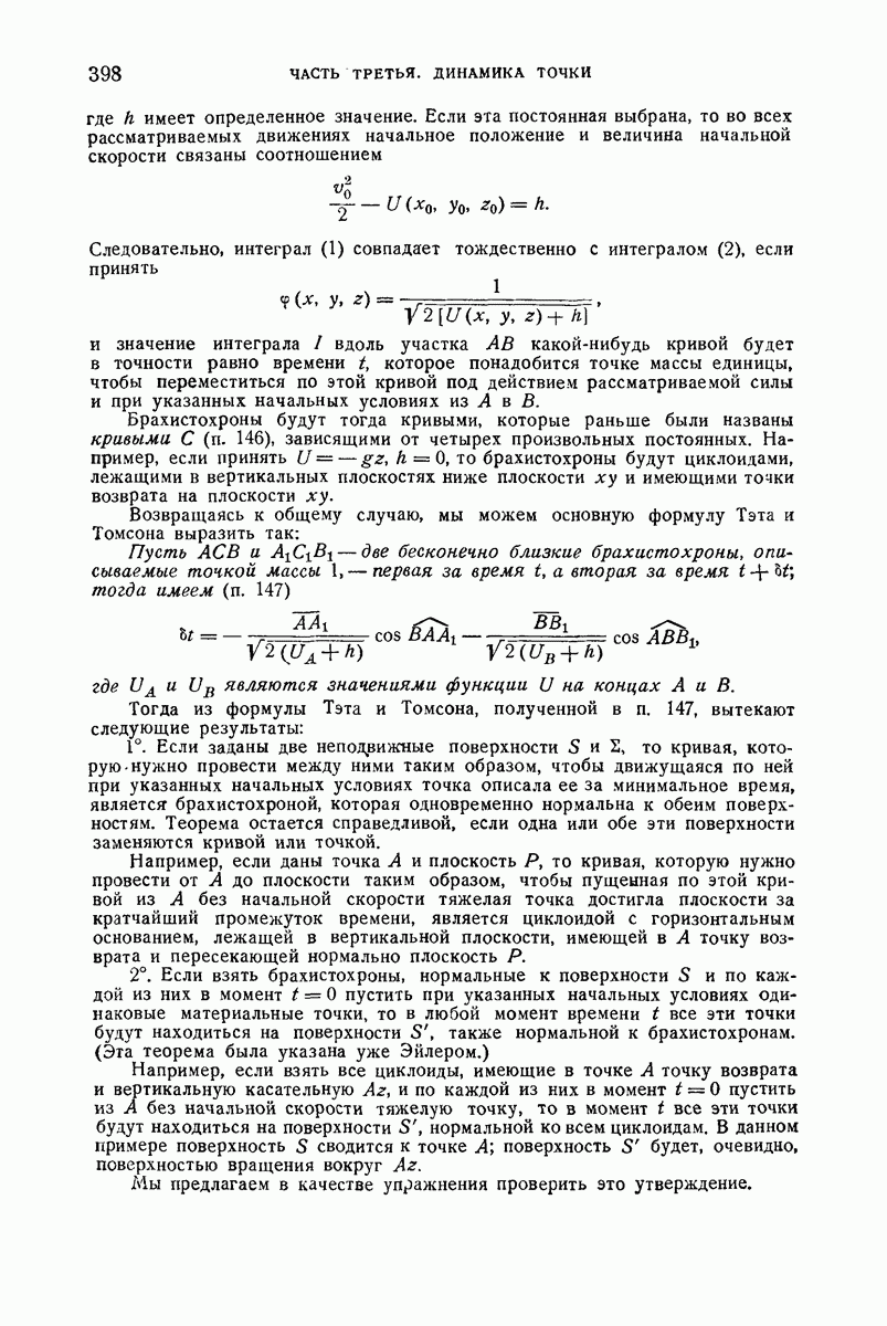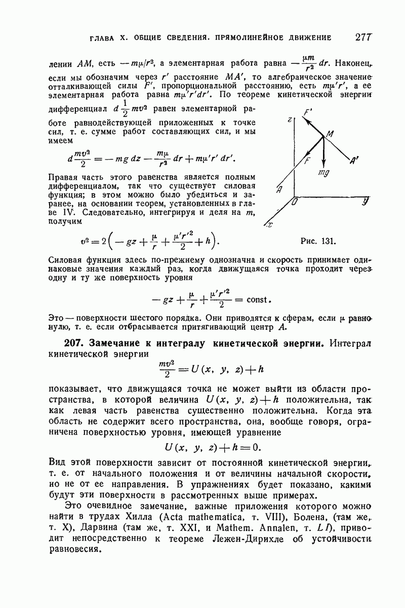 точки. Если потом отпустить точку и подвергнуть ее действию указанных сил, то она придет в движение, уравнения которого в конечной форме получатся после интегрирования уравнений (1). В этих уравнениях проекции X, Y, Z являются известными функциями координат