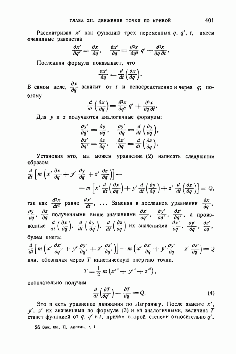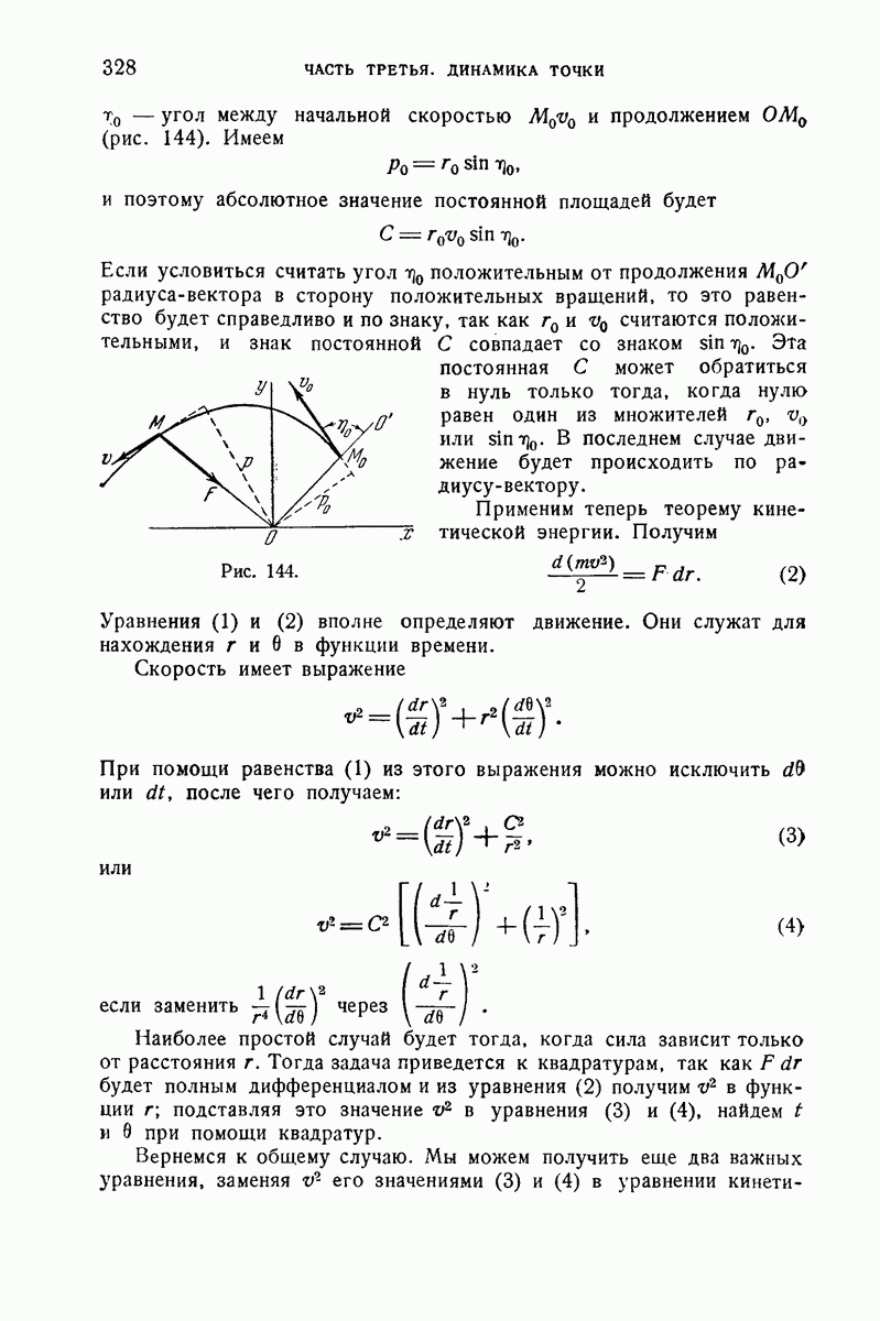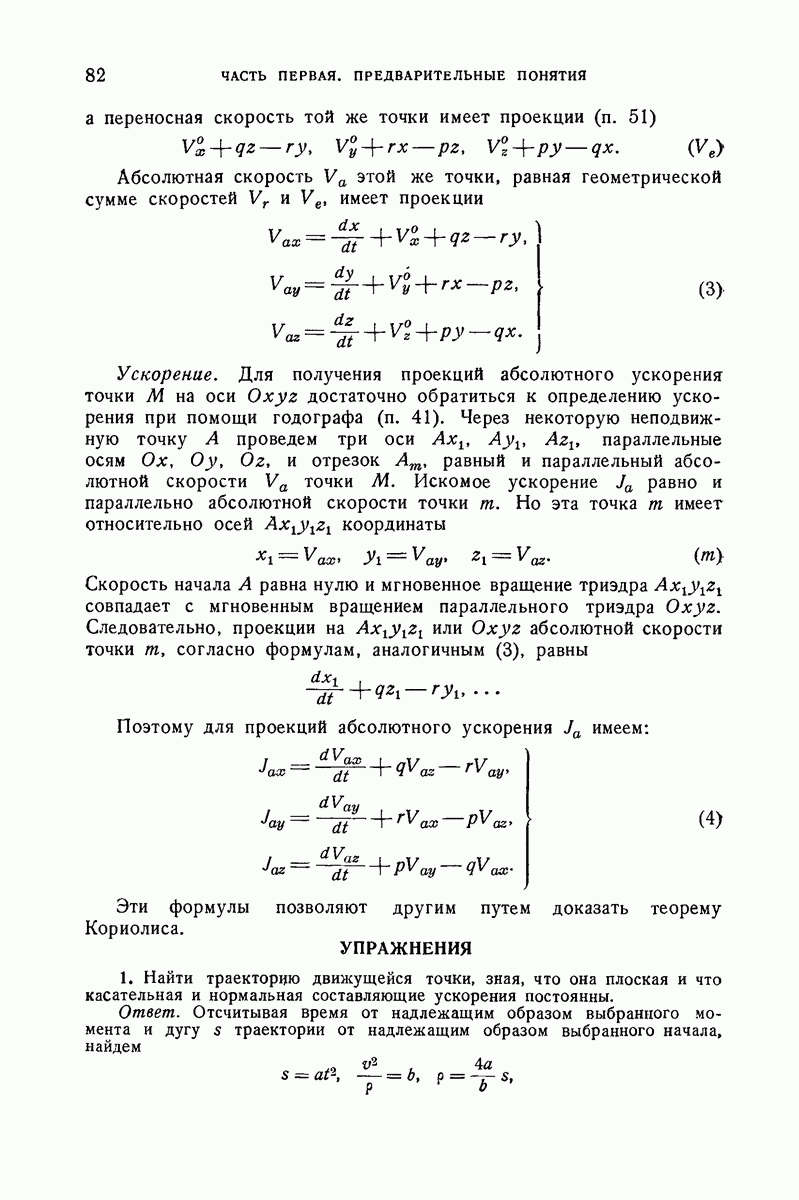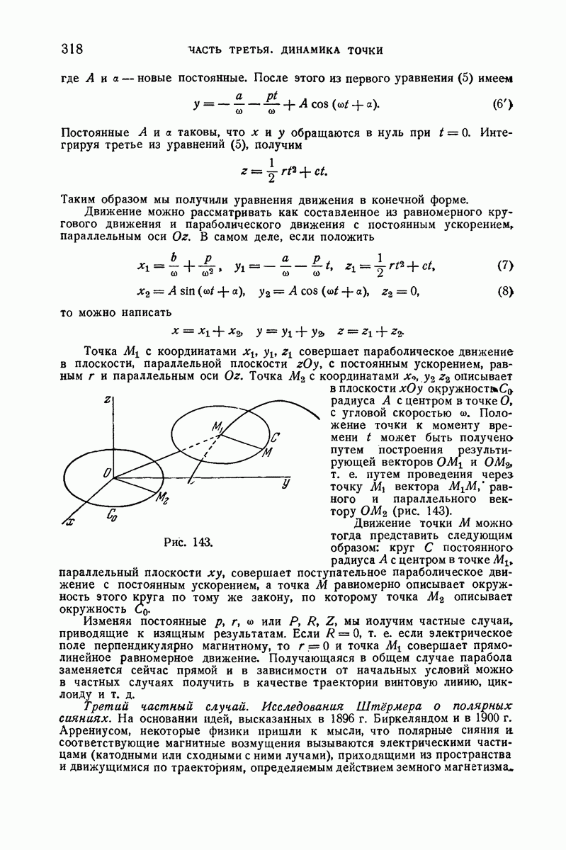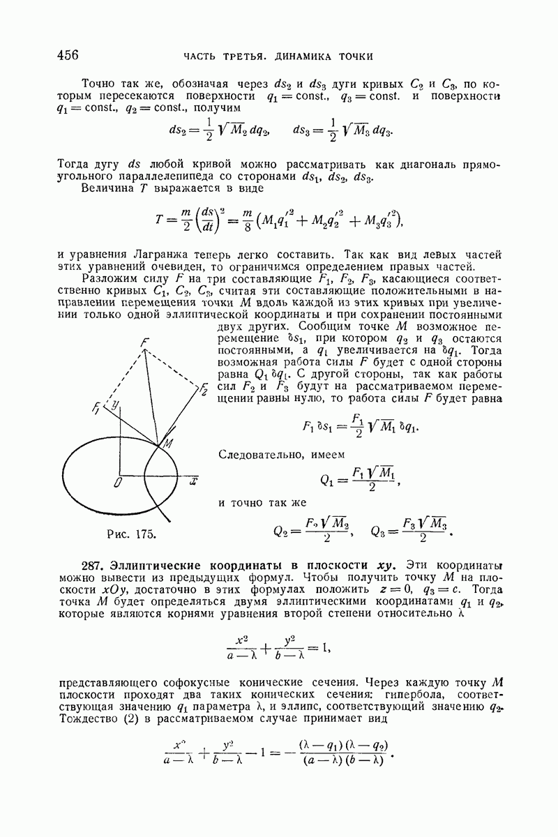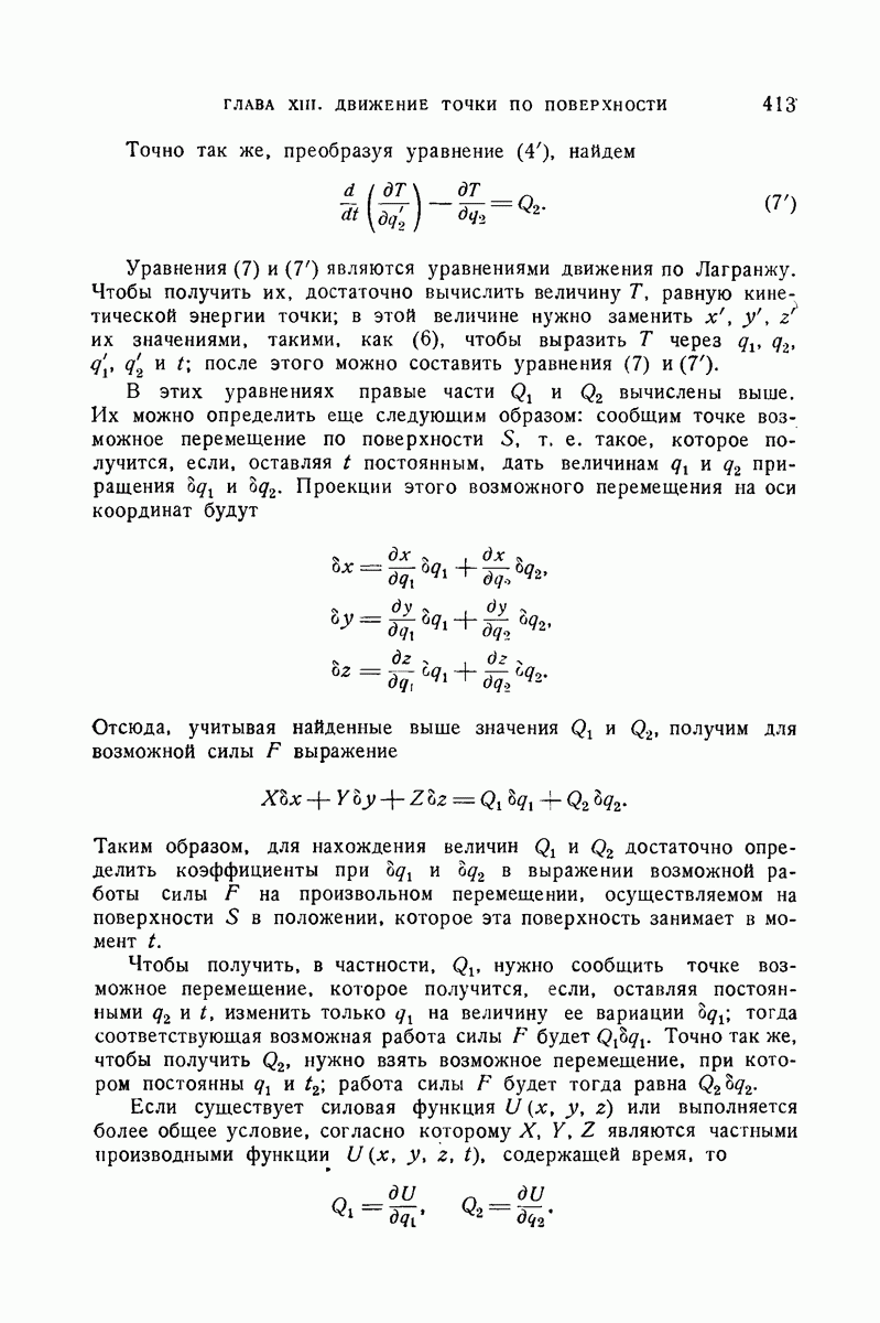 точки. Если потом отпустить точку и подвергнуть ее действию указанных сил, то она придет в движение, уравнения которого в конечной форме получатся после интегрирования уравнений (1). В этих уравнениях проекции X, Y, Z являются известными функциями координат