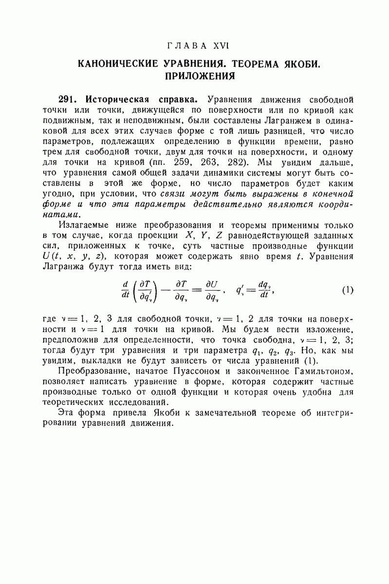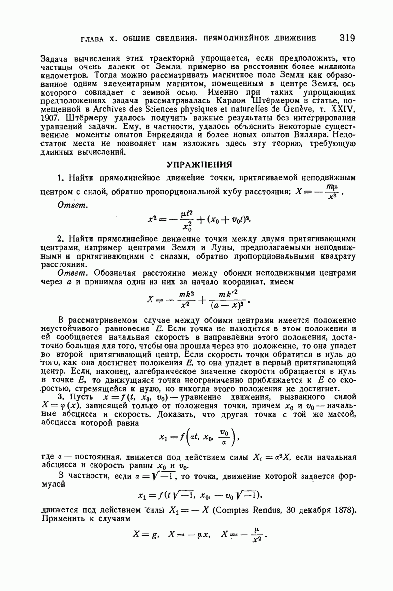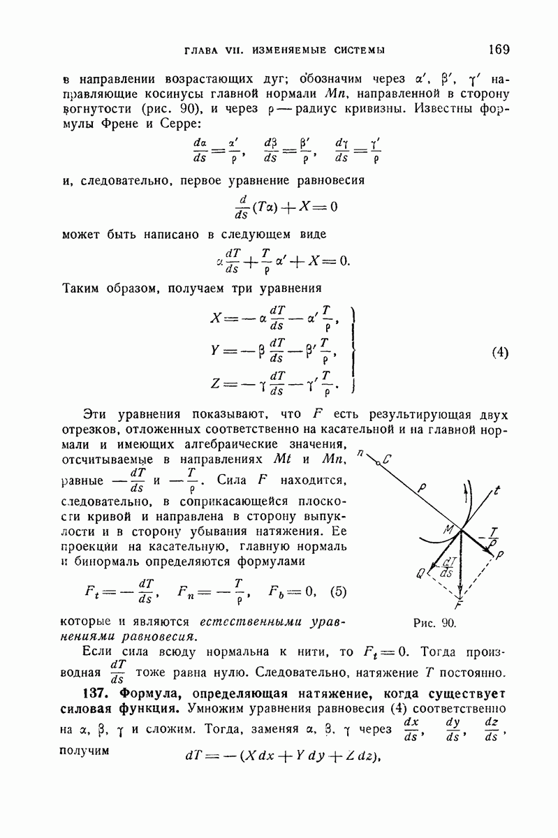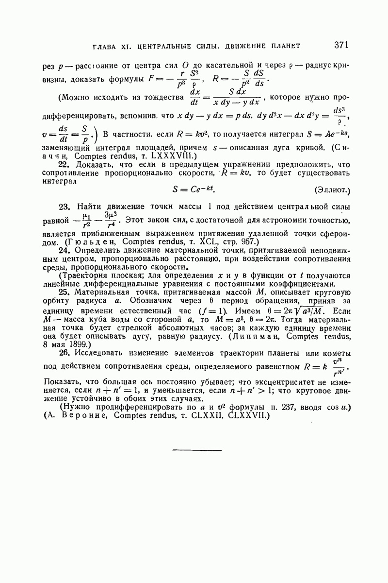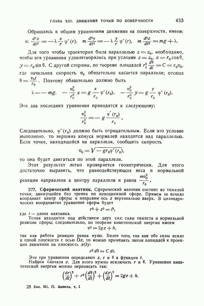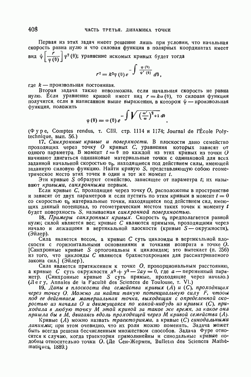 точки. Если потом отпустить точку и подвергнуть ее действию указанных сил, то она придет в движение, уравнения которого в конечной форме получатся после интегрирования уравнений (1). В этих уравнениях проекции X, Y, Z являются известными функциями координат