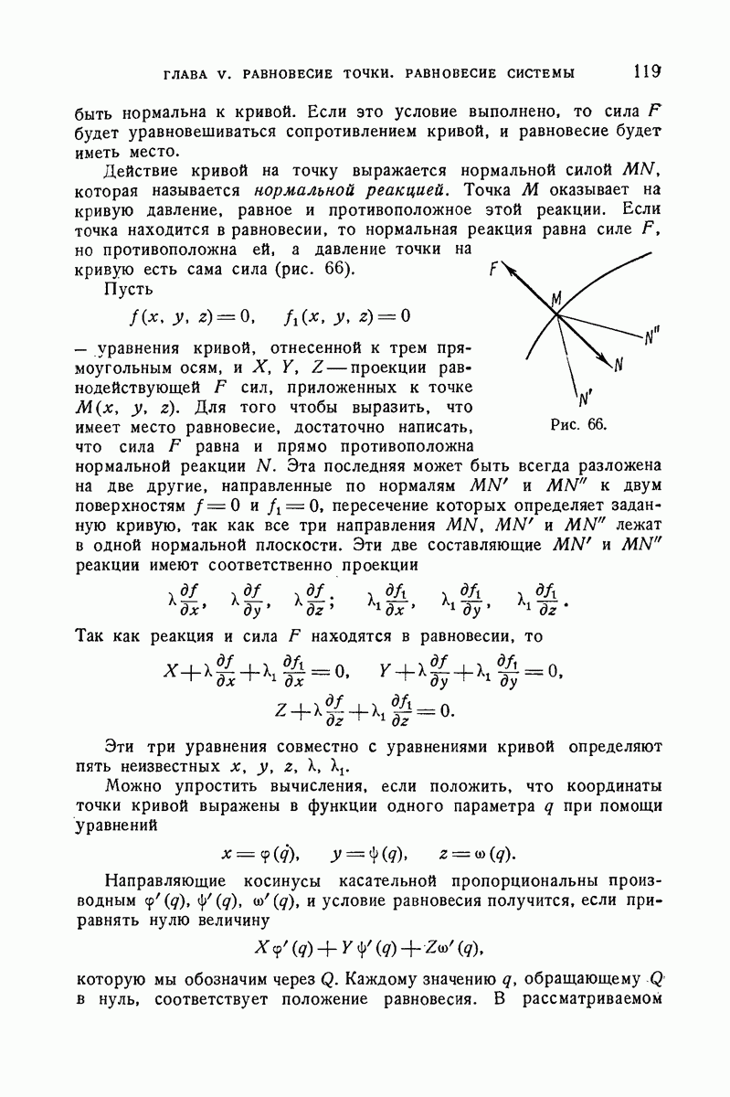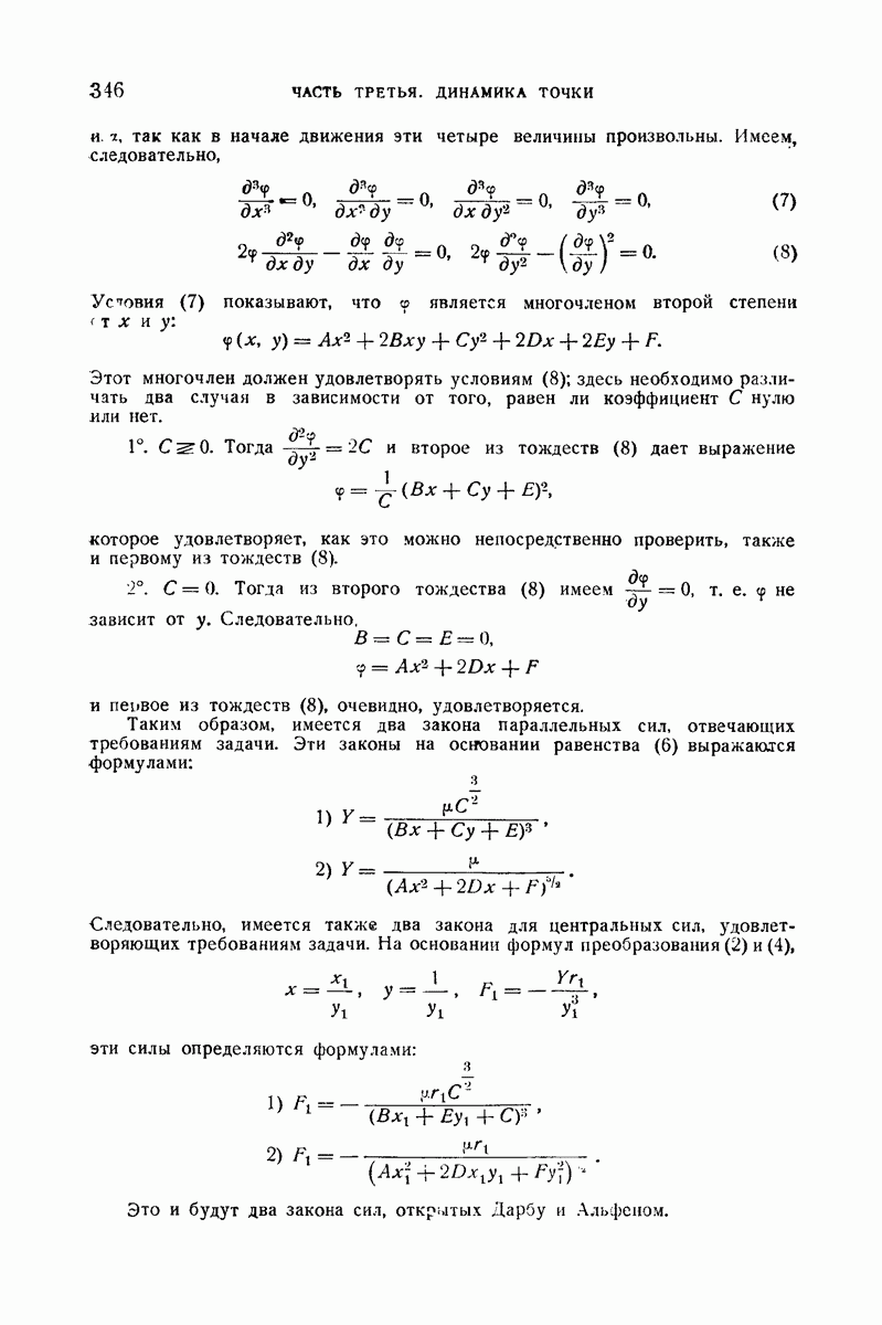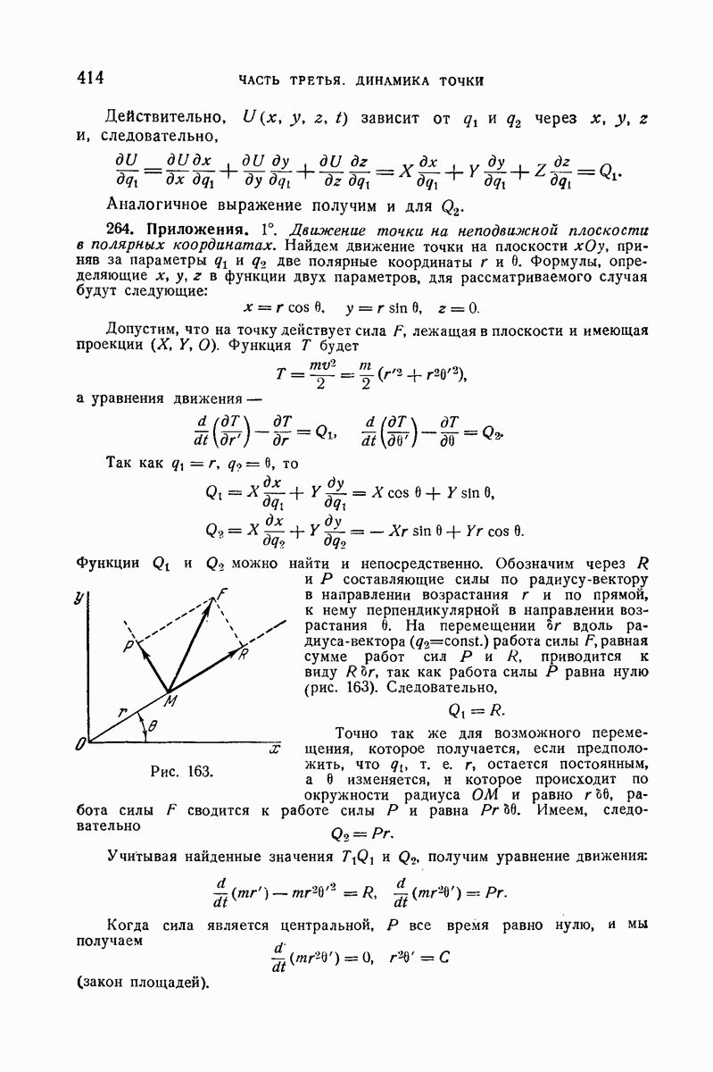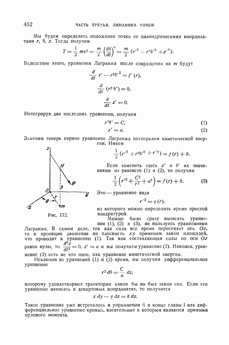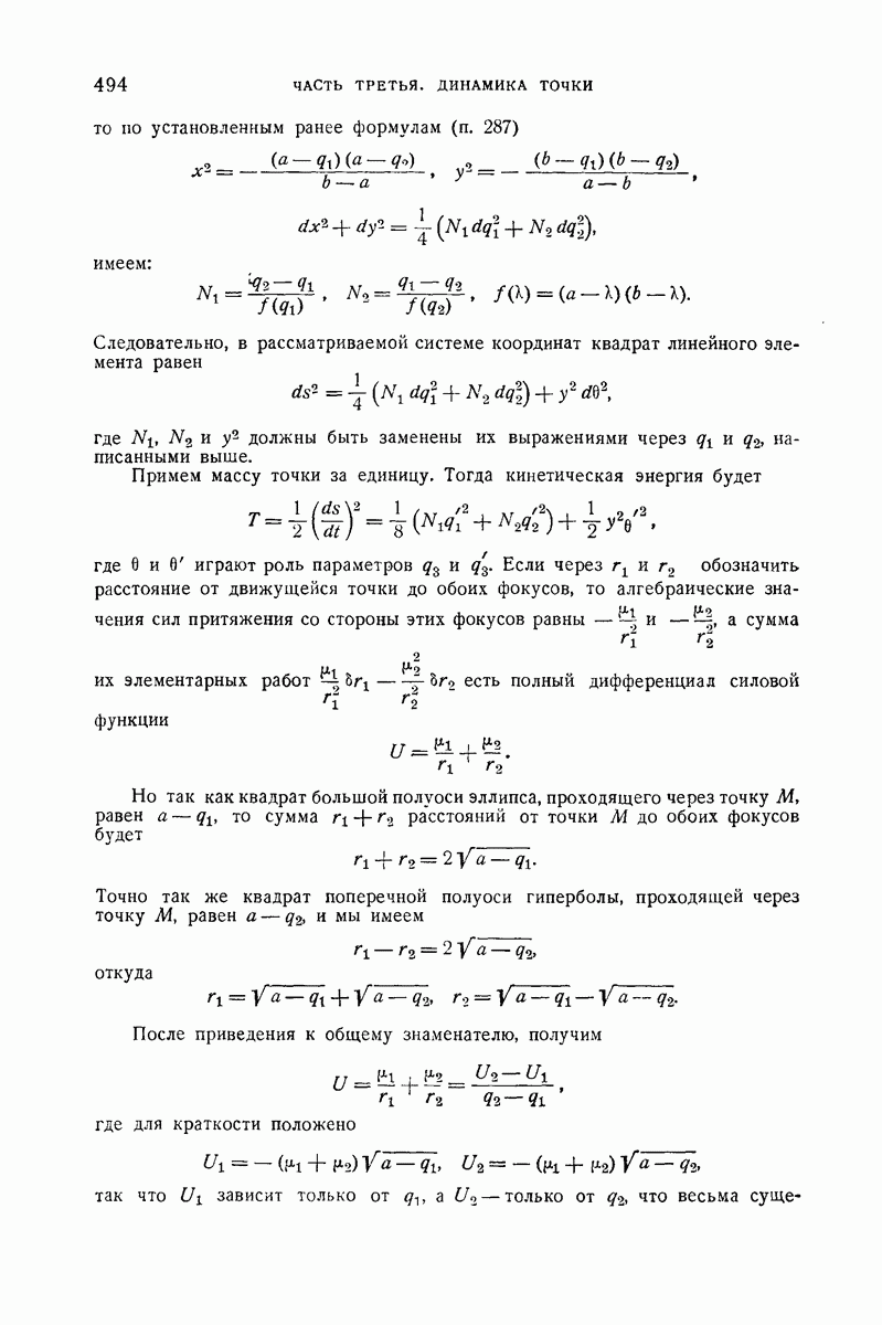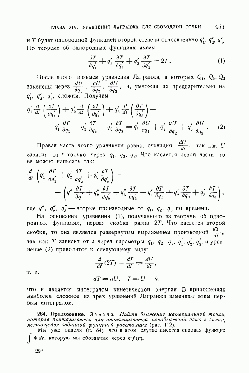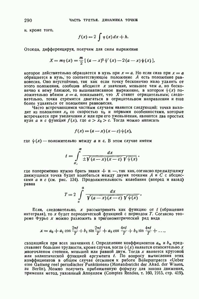 точки. Если потом отпустить точку и подвергнуть ее действию указанных сил, то она придет в движение, уравнения которого в конечной форме получатся после интегрирования уравнений (1). В этих уравнениях проекции X, Y, Z являются известными функциями координат
