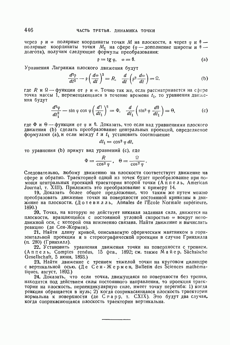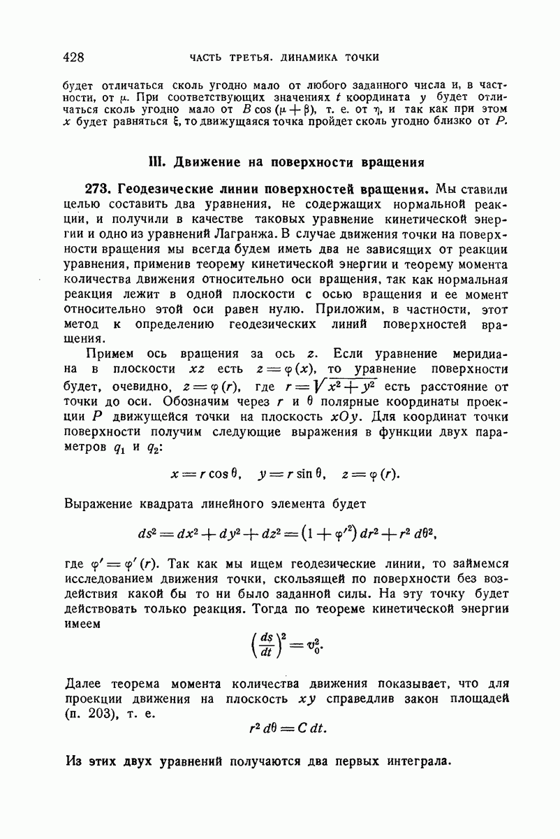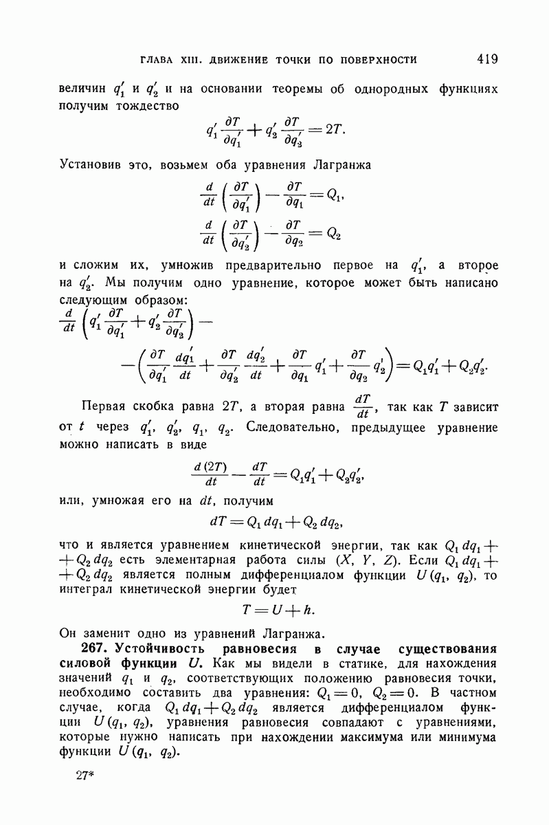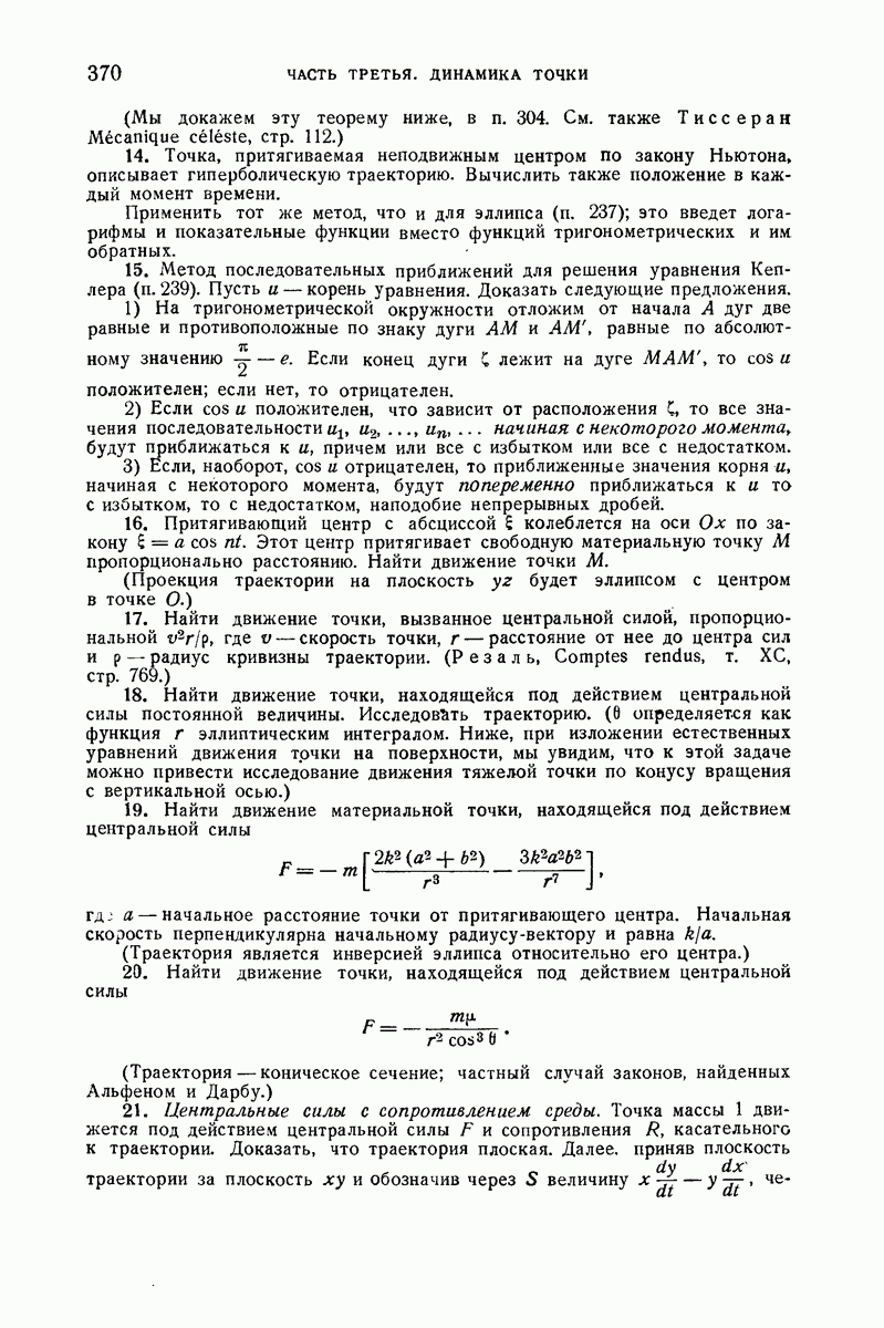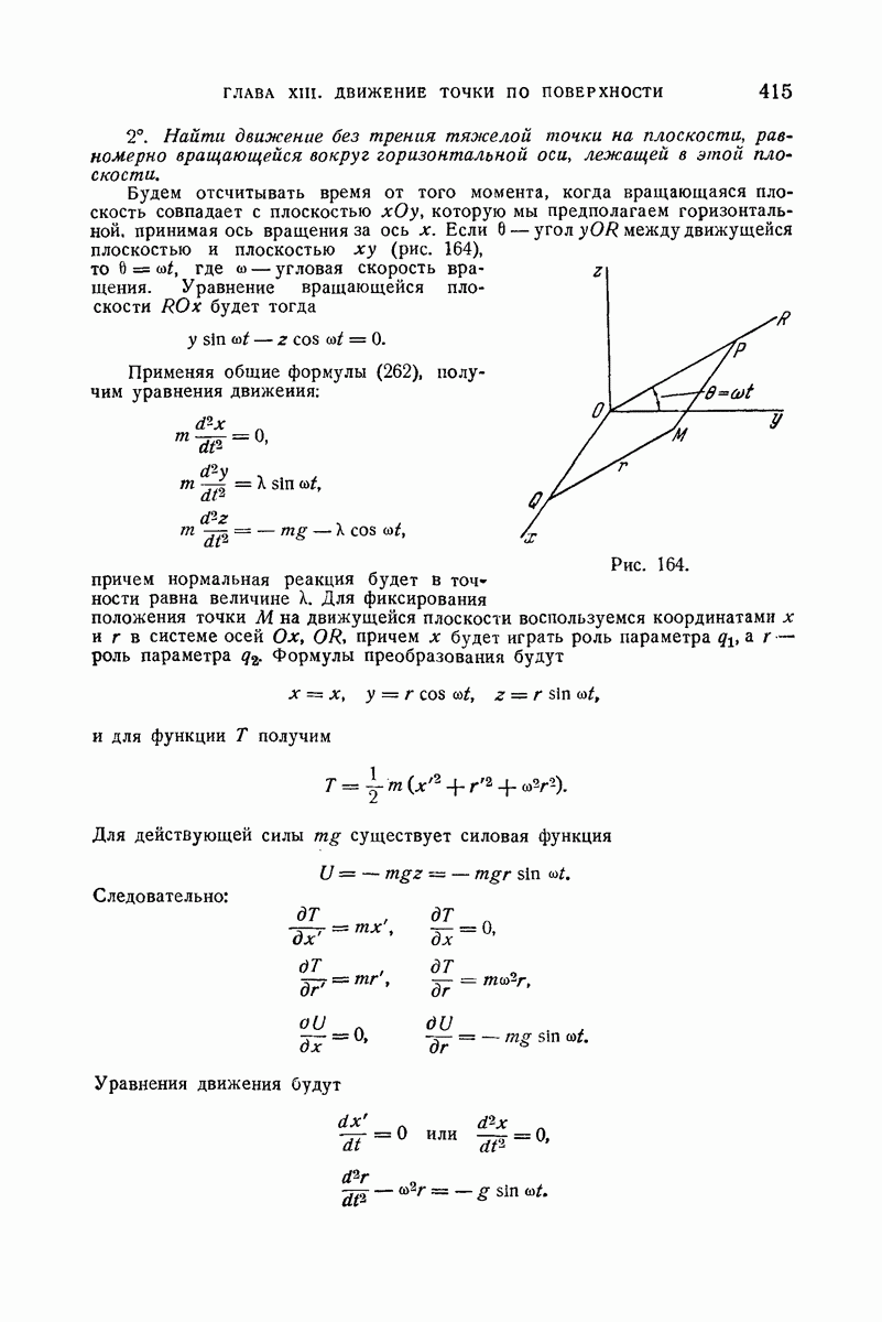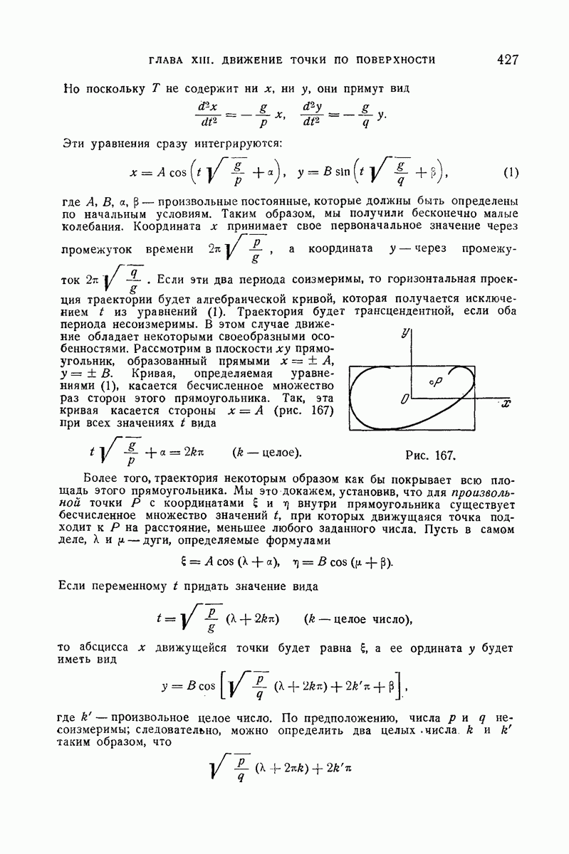 точки. Если потом отпустить точку и подвергнуть ее действию указанных сил, то она придет в движение, уравнения которого в конечной форме получатся после интегрирования уравнений (1). В этих уравнениях проекции X, Y, Z являются известными функциями координат