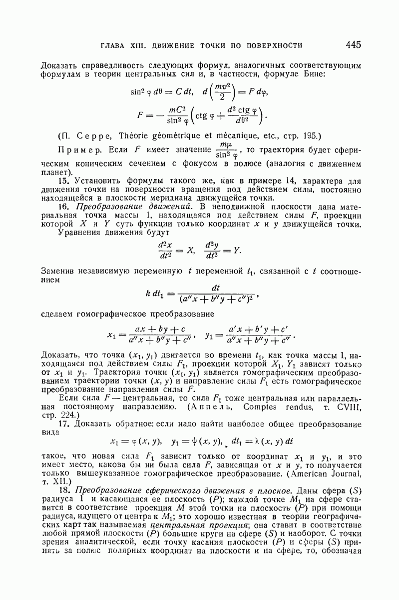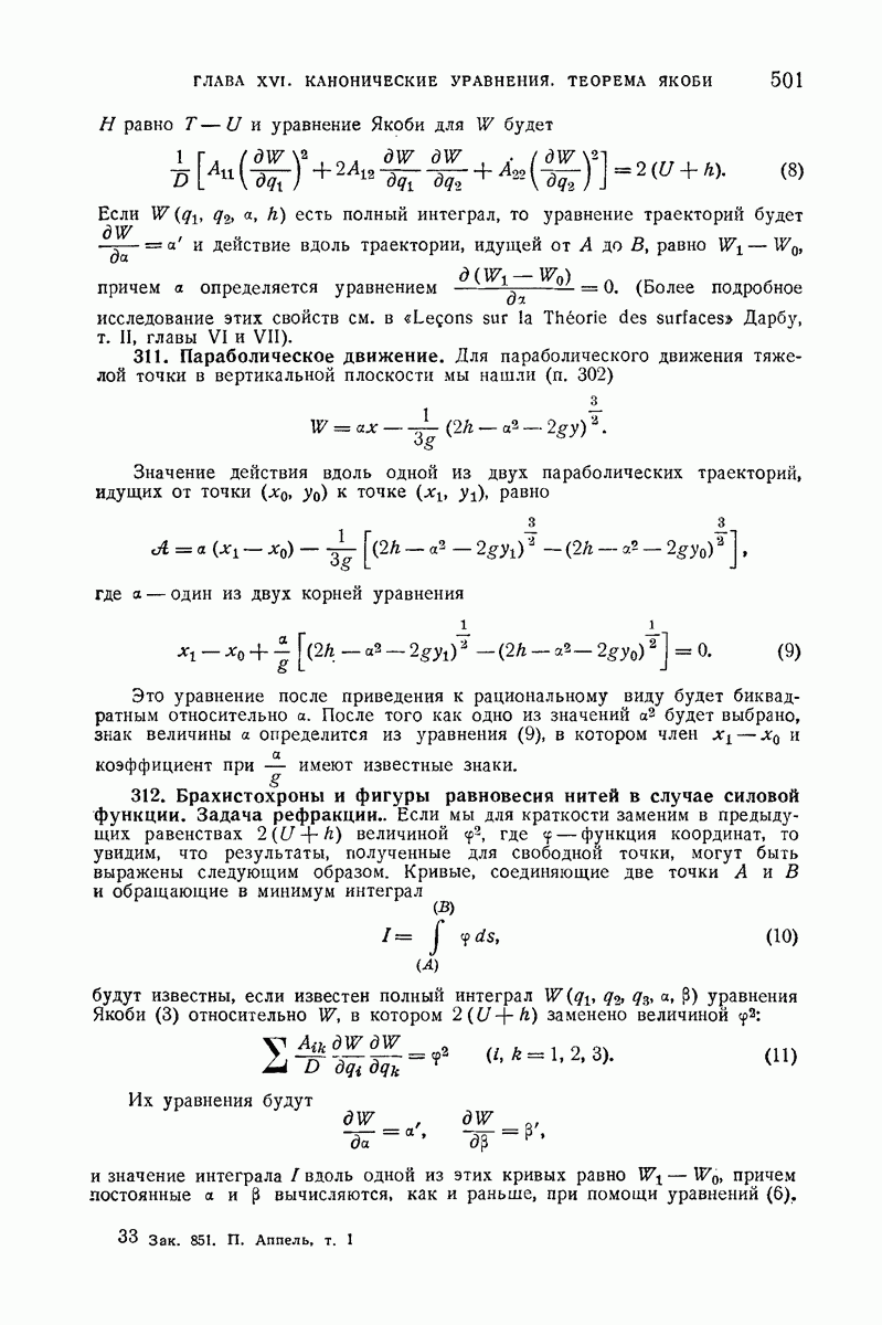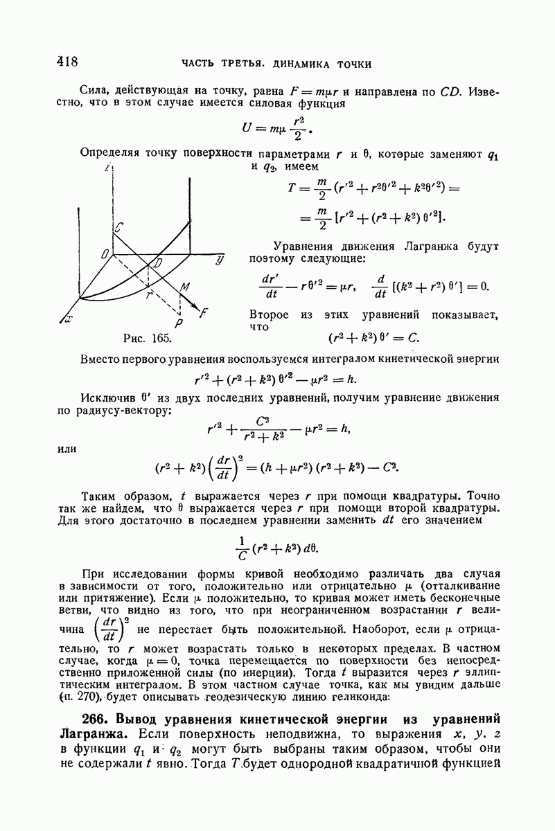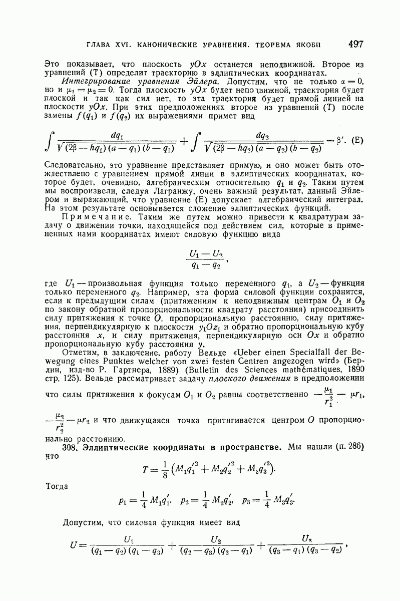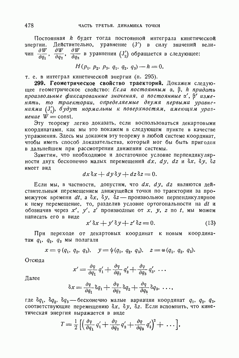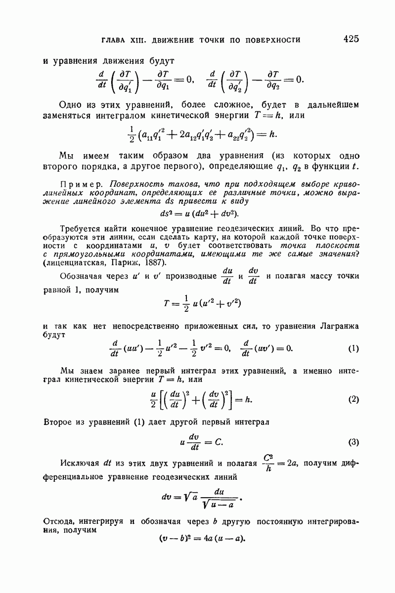 точки. Если потом отпустить точку и подвергнуть ее действию указанных сил, то она придет в движение, уравнения которого в конечной форме получатся после интегрирования уравнений (1). В этих уравнениях проекции X, Y, Z являются известными функциями координат