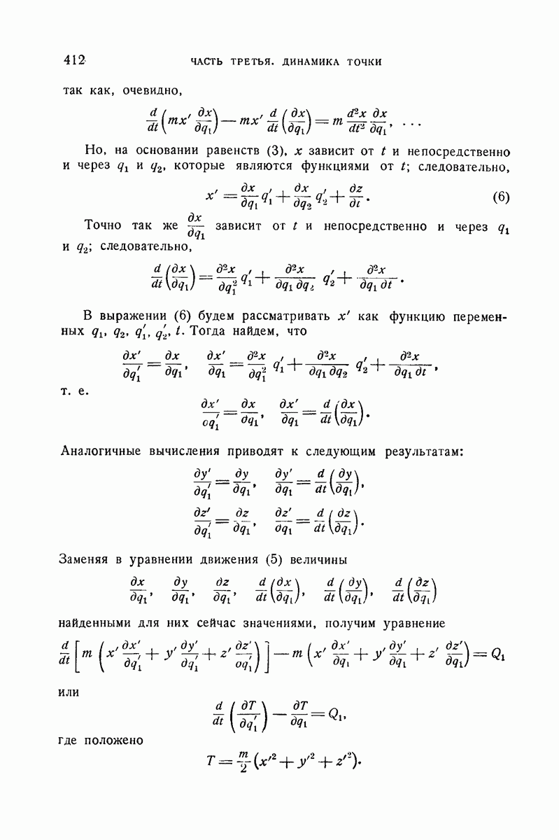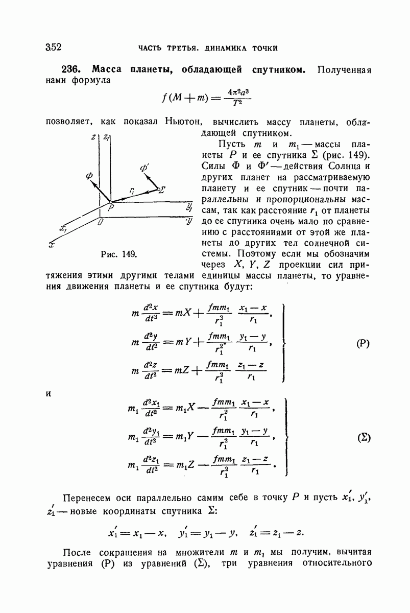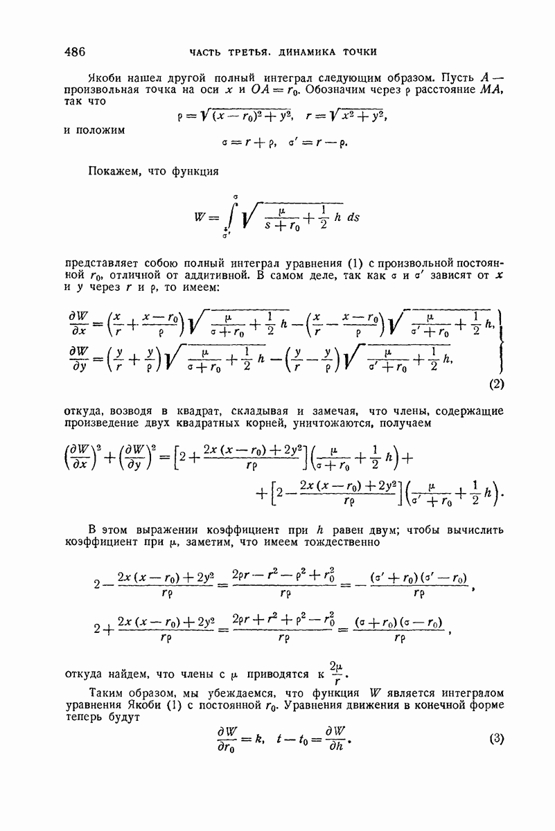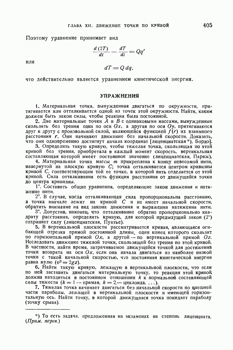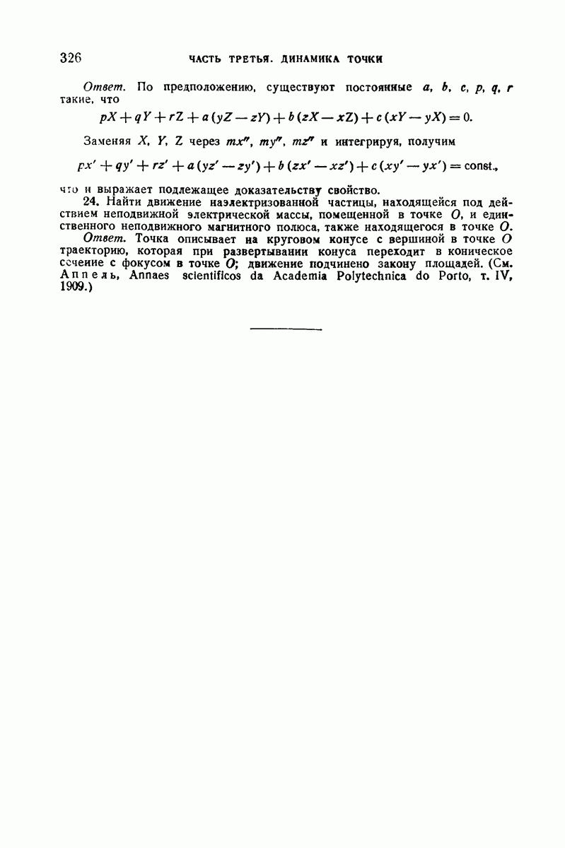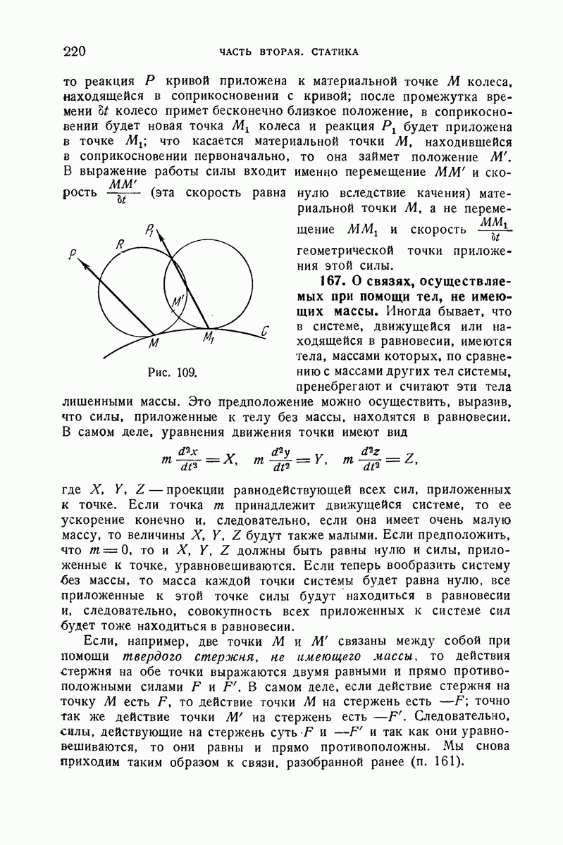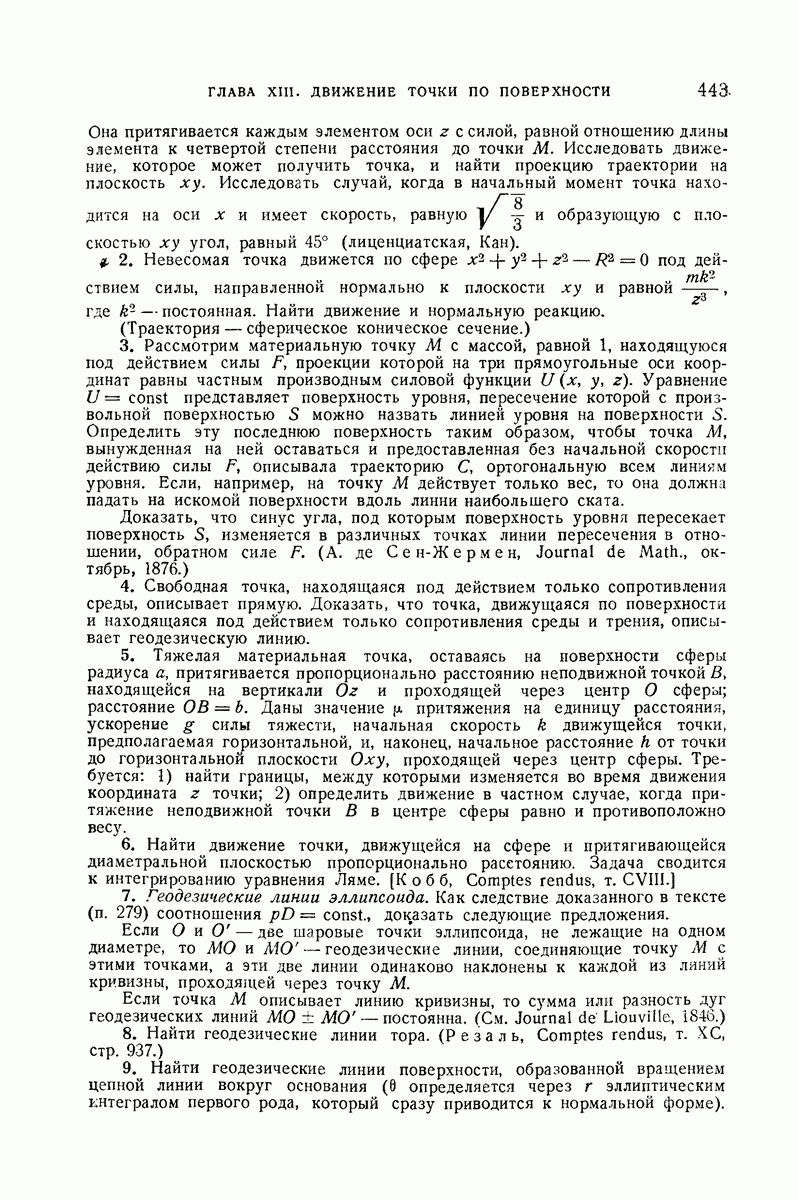 точки. Если потом отпустить точку и подвергнуть ее действию указанных сил, то она придет в движение, уравнения которого в конечной форме получатся после интегрирования уравнений (1). В этих уравнениях проекции X, Y, Z являются известными функциями координат