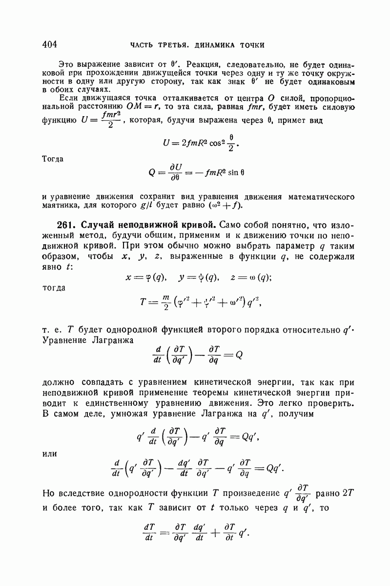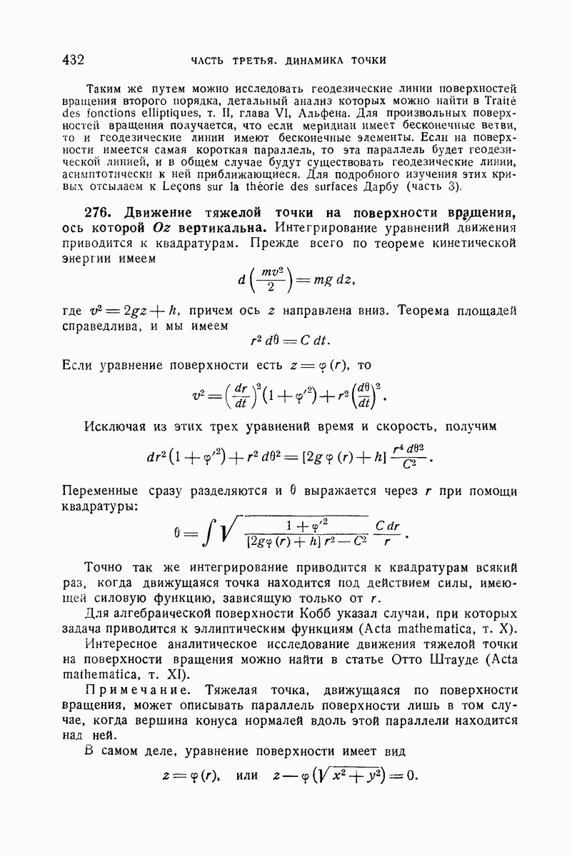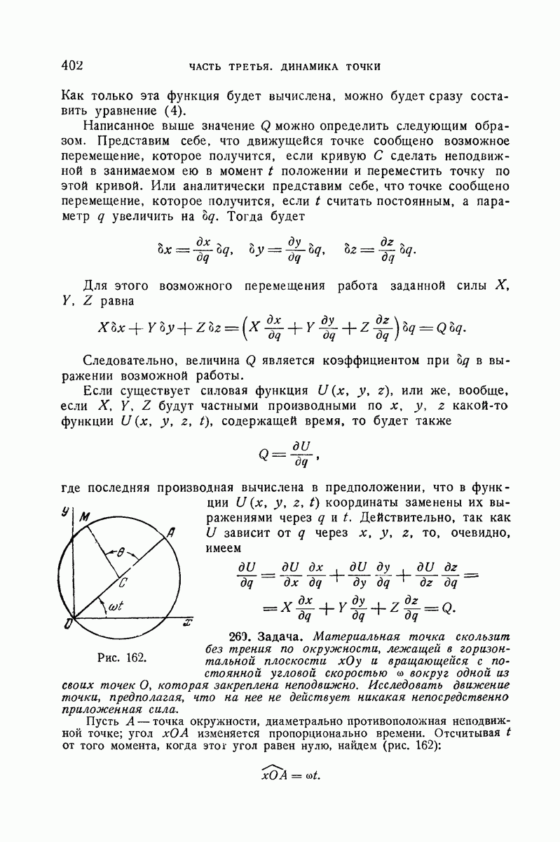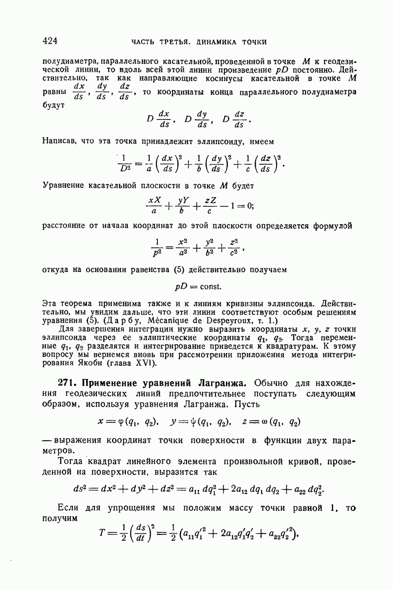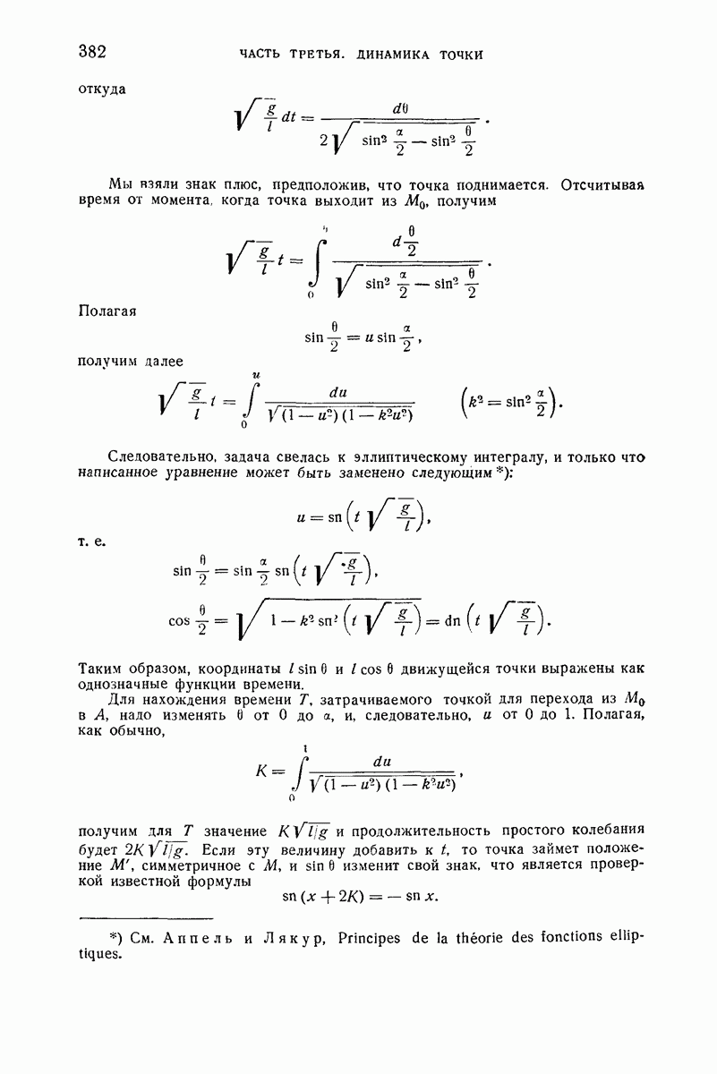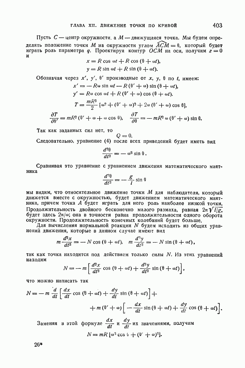 точки. Если потом отпустить точку и подвергнуть ее действию указанных сил, то она придет в движение, уравнения которого в конечной форме получатся после интегрирования уравнений (1). В этих уравнениях проекции X, Y, Z являются известными функциями координат