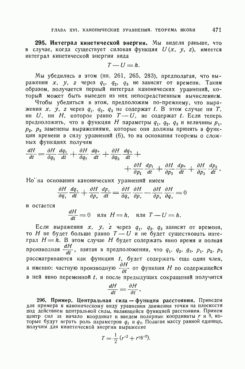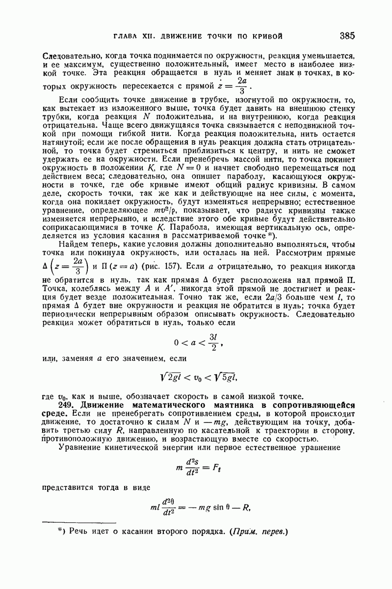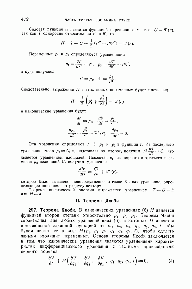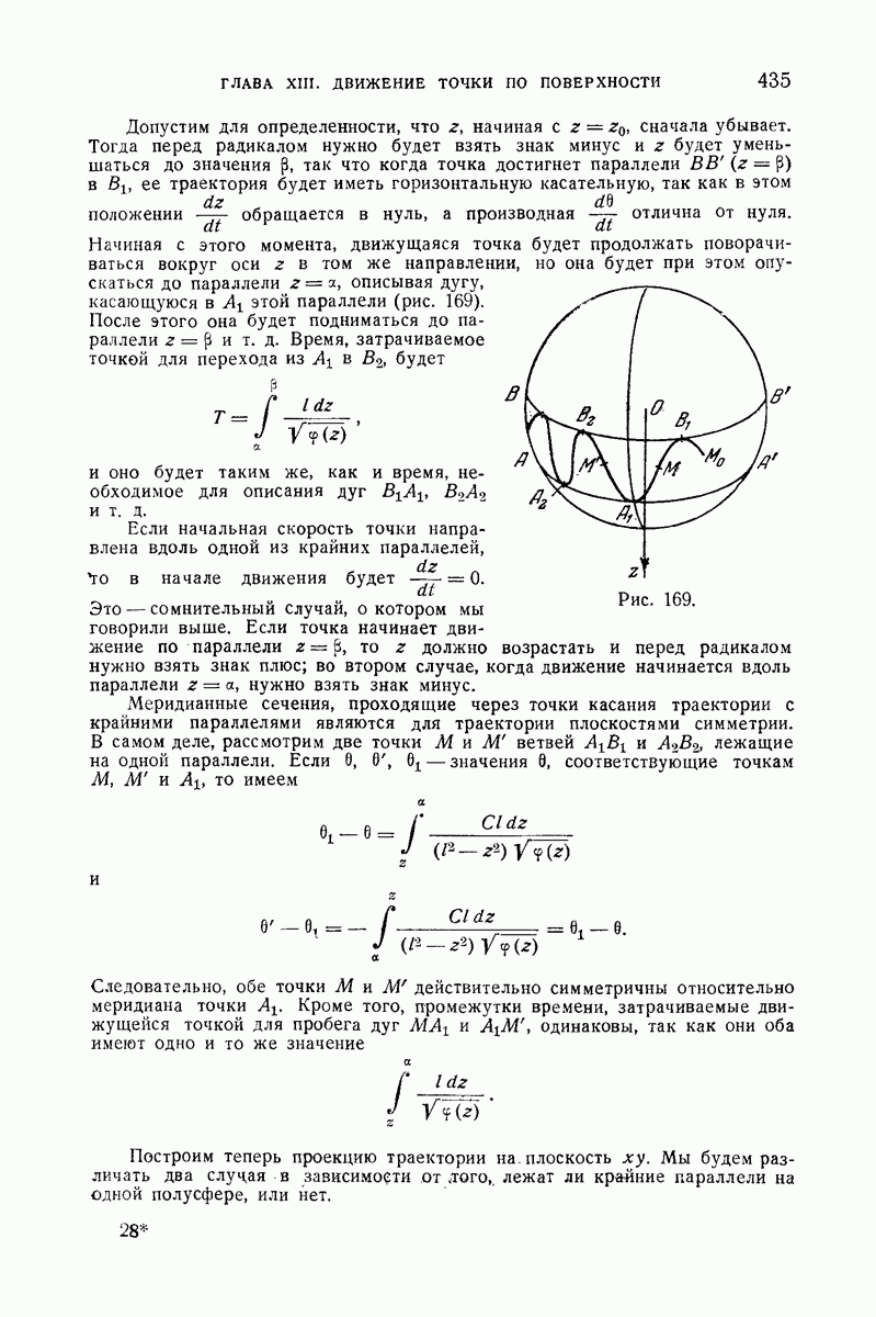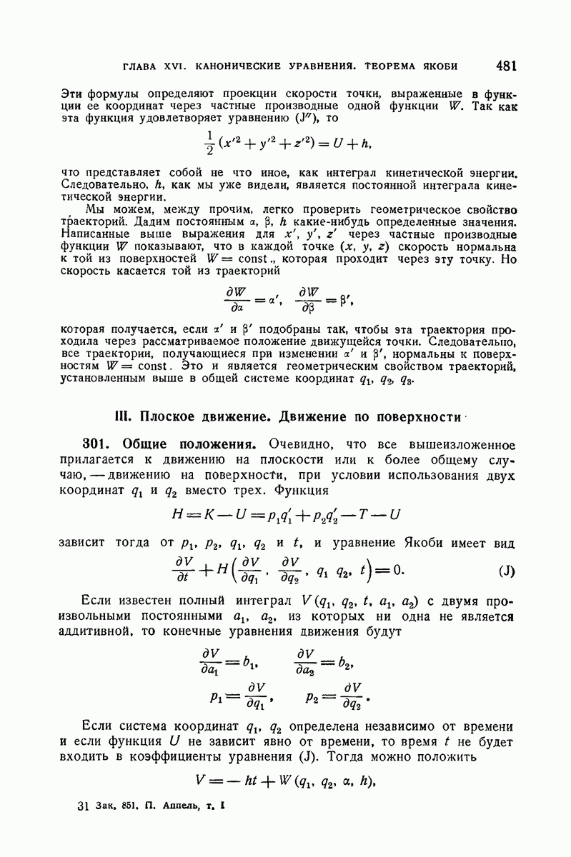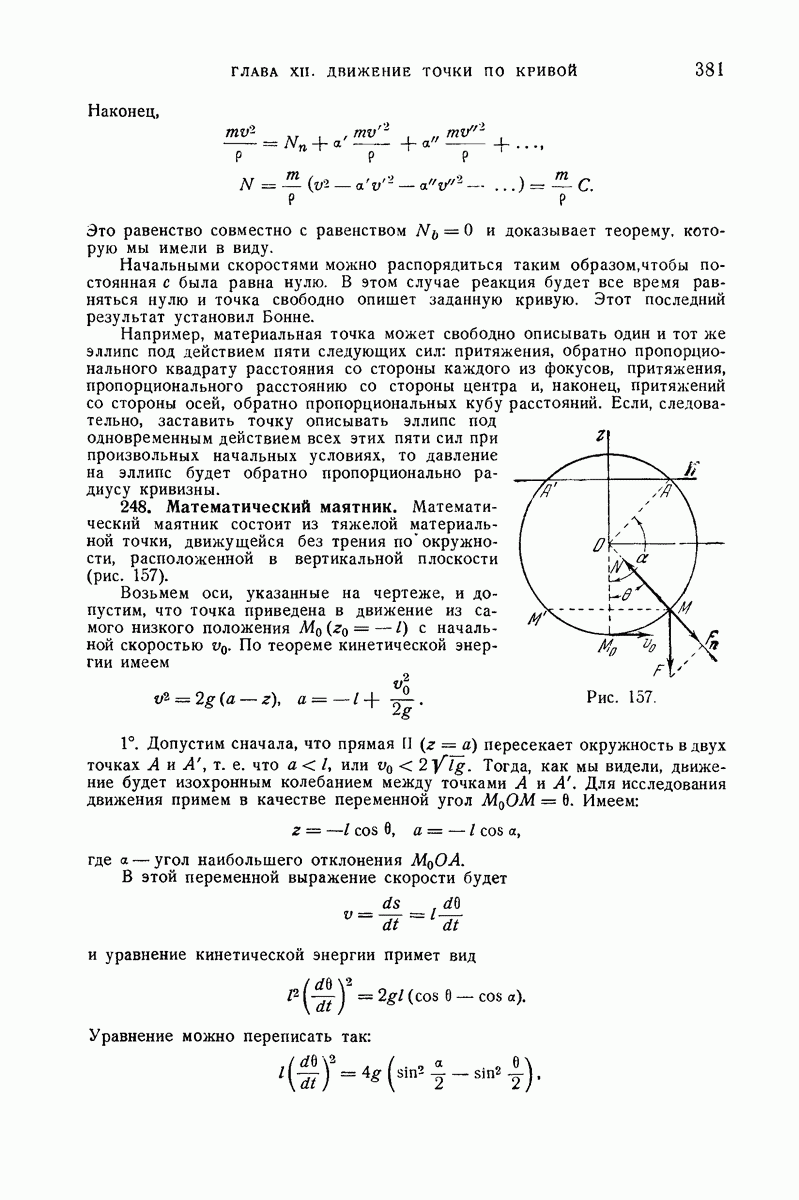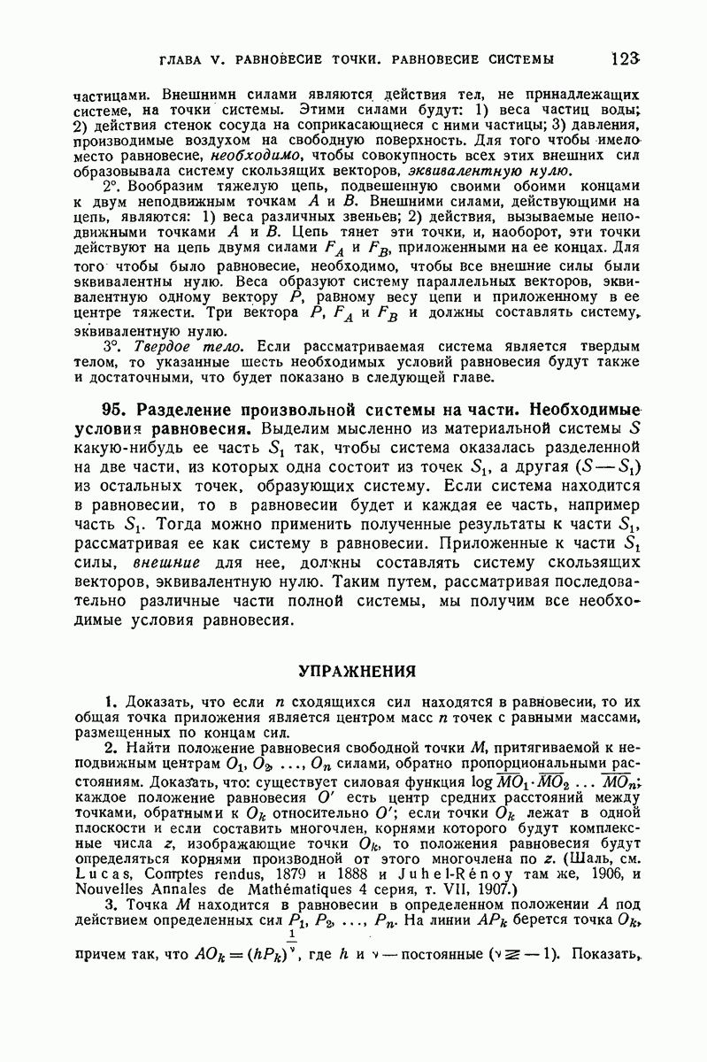 точки. Если потом отпустить точку и подвергнуть ее действию указанных сил, то она придет в движение, уравнения которого в конечной форме получатся после интегрирования уравнений (1). В этих уравнениях проекции X, Y, Z являются известными функциями координат