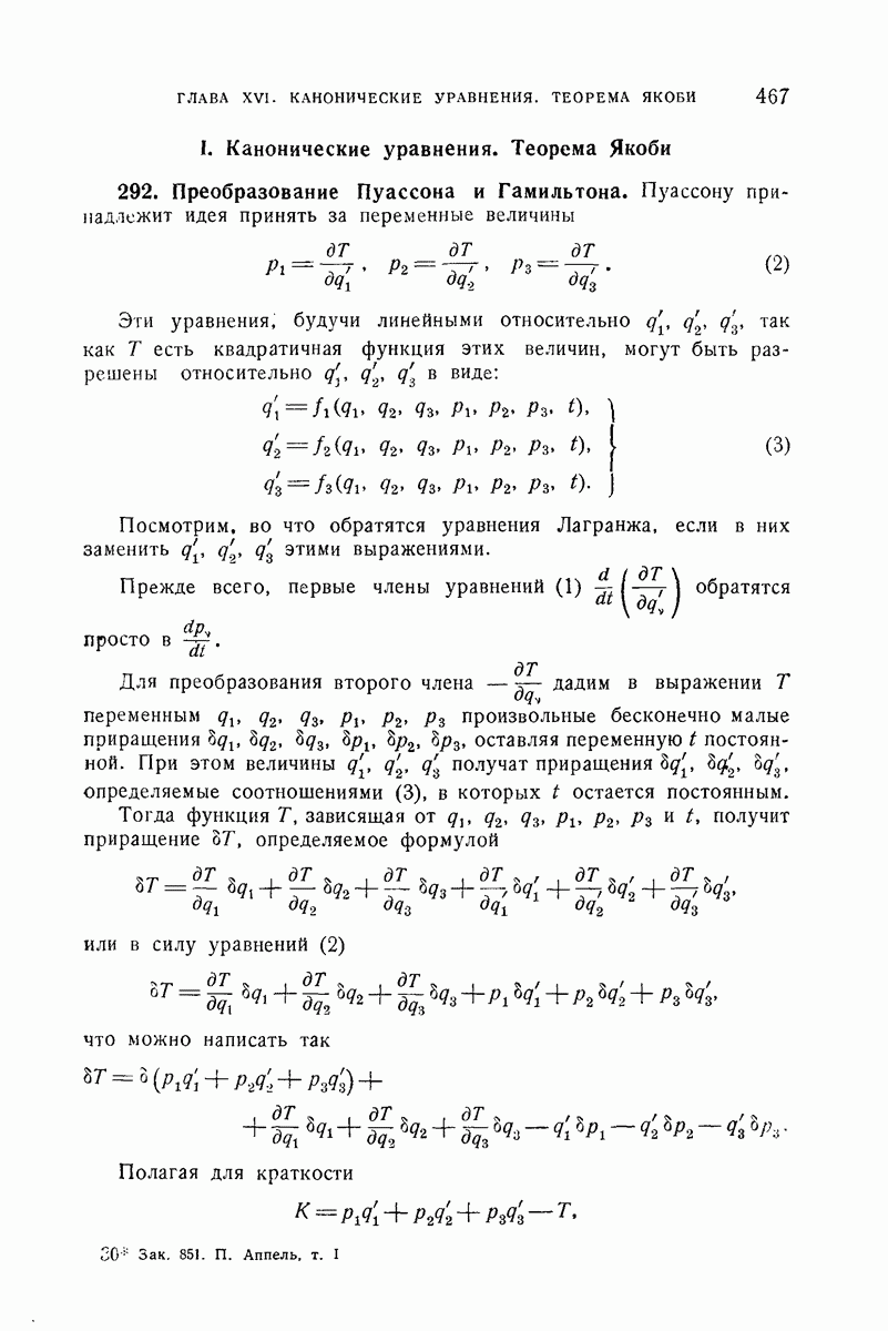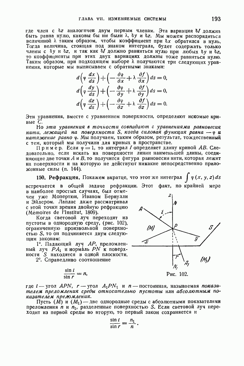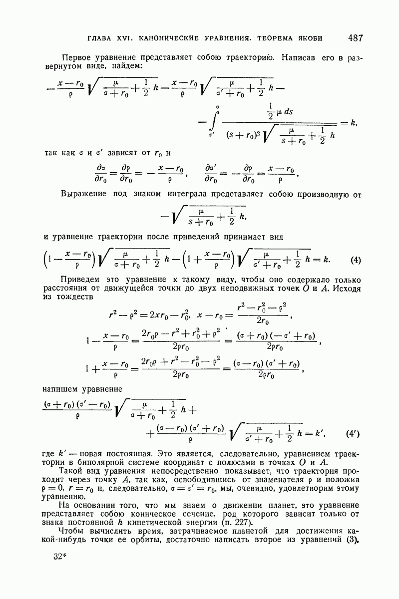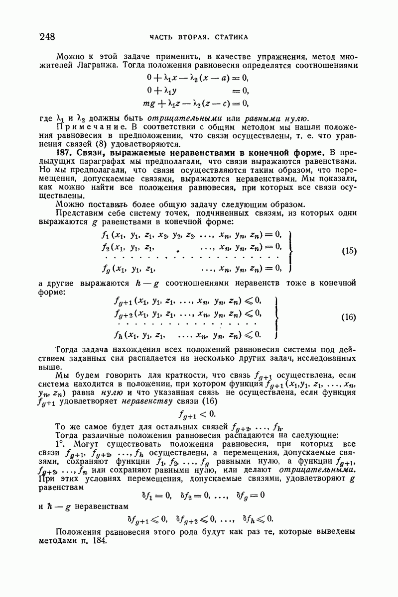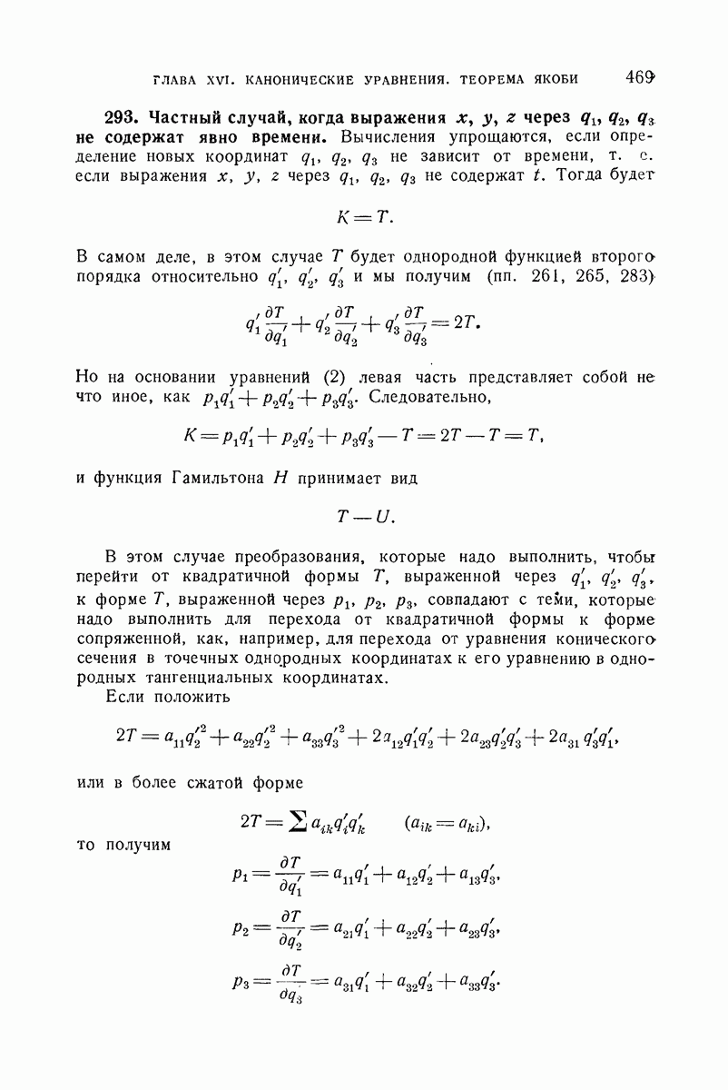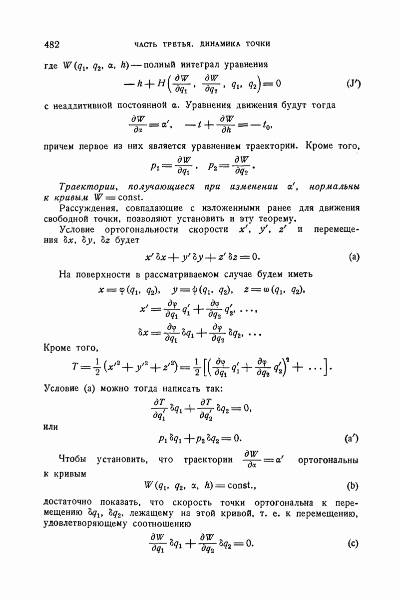 точки. Если потом отпустить точку и подвергнуть ее действию указанных сил, то она придет в движение, уравнения которого в конечной форме получатся после интегрирования уравнений (1). В этих уравнениях проекции X, Y, Z являются известными функциями координат