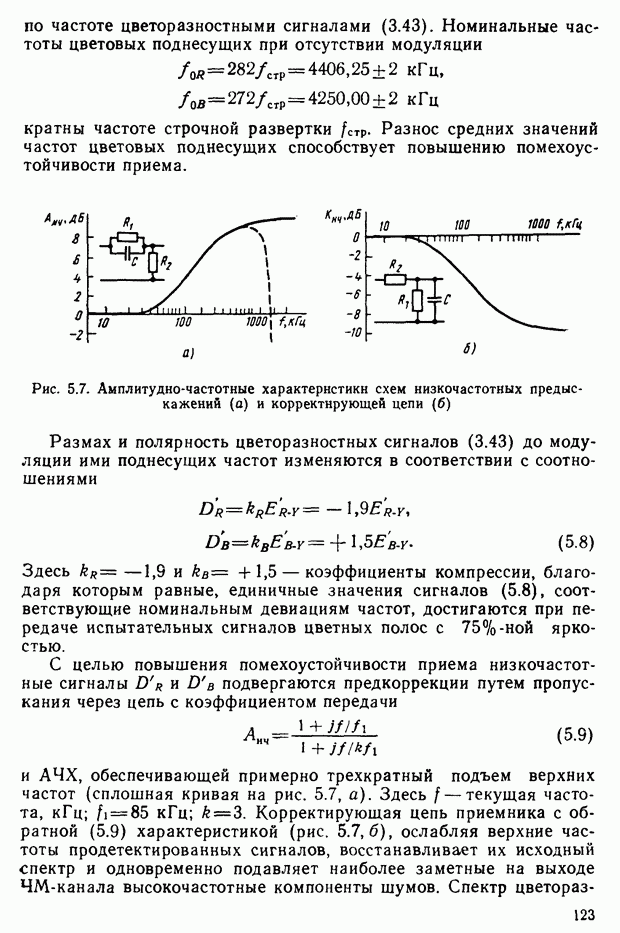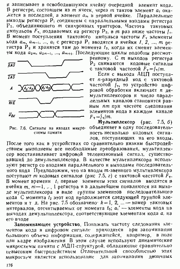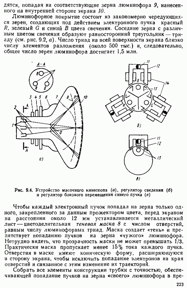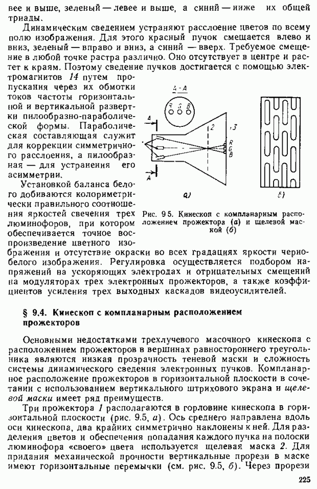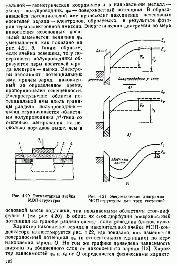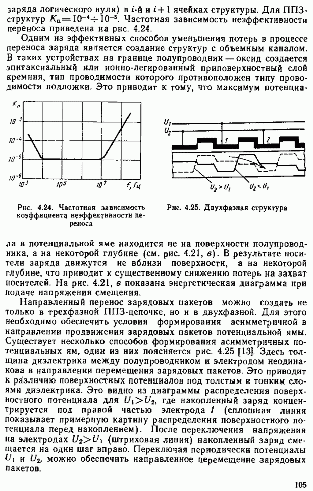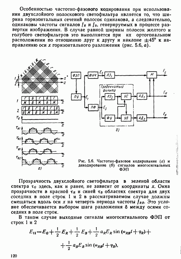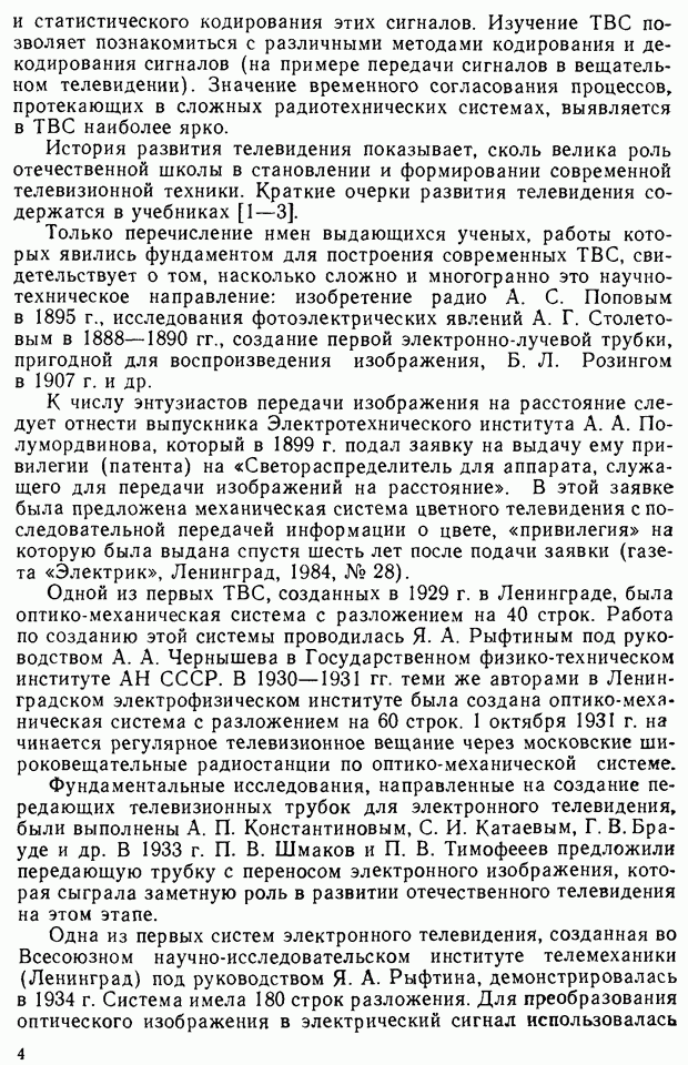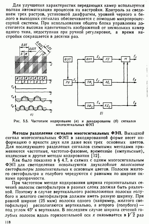 § 4.4. Видиконы с оксидно-свинцовой мишеньюОтечественные преобразователи с оксидно - свинцовой мишенью (ОСМ) относят к классу видиконов Оксидно-свинцовая мишень наносится на полупрозрачную сигнальную пластину 1. Она включает прослойку полупроводника 2 с электропроводностью Формирование потенциального рельефа происходит на поверхности слоя 4. Для предотвращения «растекания» потенциального рельефа вдоль этого слоя (между соседними элементами мишени, имеющими различный потенциальный рельеф) его толщина берется очень малой, что обеспечивает высокое сопротивление слоя в направлении вцоль мншенн. Коммутация потенциального рельефа осуществляется пучком медленных электронов, следовательно, мишень стабилизируется при потенциале, близком потенциалу катода. Выходной сигнал, снимается с нагрузочного резистора, включенного в цепь сигнальной пластины (см. рис. 4.7). При том, что на сигнальную пластину подается положительный потенциал, вся система представляет собой мозаику При рабочих потенциалах сигнальной пластины в толще мишени создается относительно высокая напряженность электрического поля, обеспечивающая эффективное разделение генерированных светом злектронно - дырочных пар. Ток сигнала при этом оказывается близким току насыщения, что обусловливает высокую линейность характеристики свет — сигнал. Показатель линейности этой характеристики находится в пределах 0,95±0,05. Высокая линейность характеристики преобразования обеспечивает успешное использование этих приборов в камерах цветного телевидения.