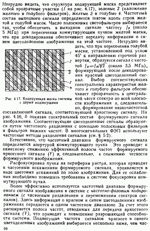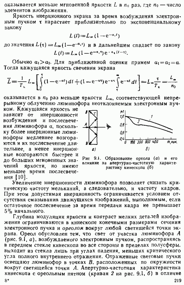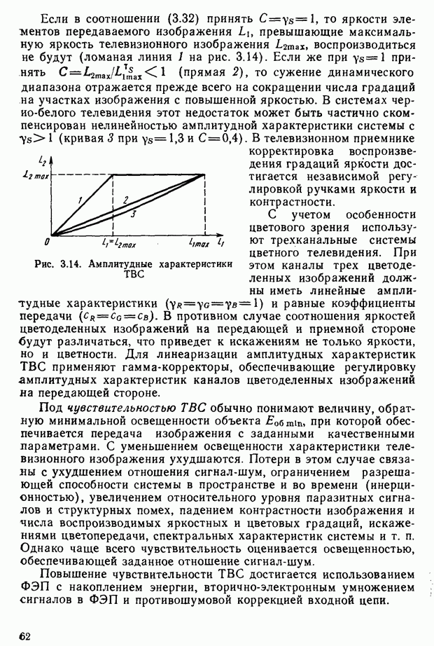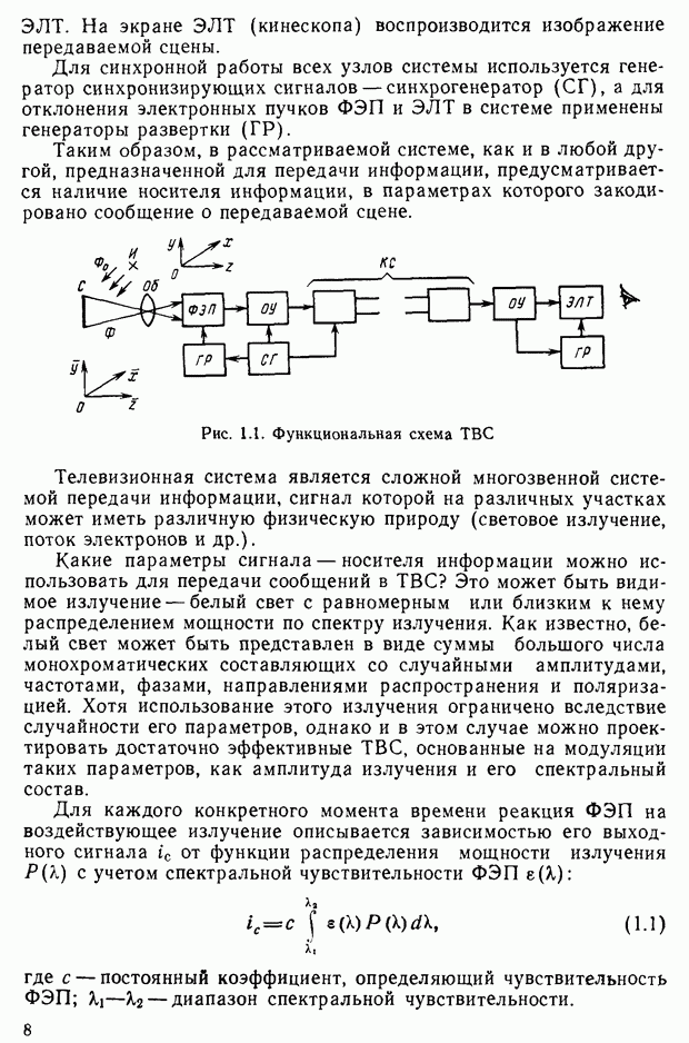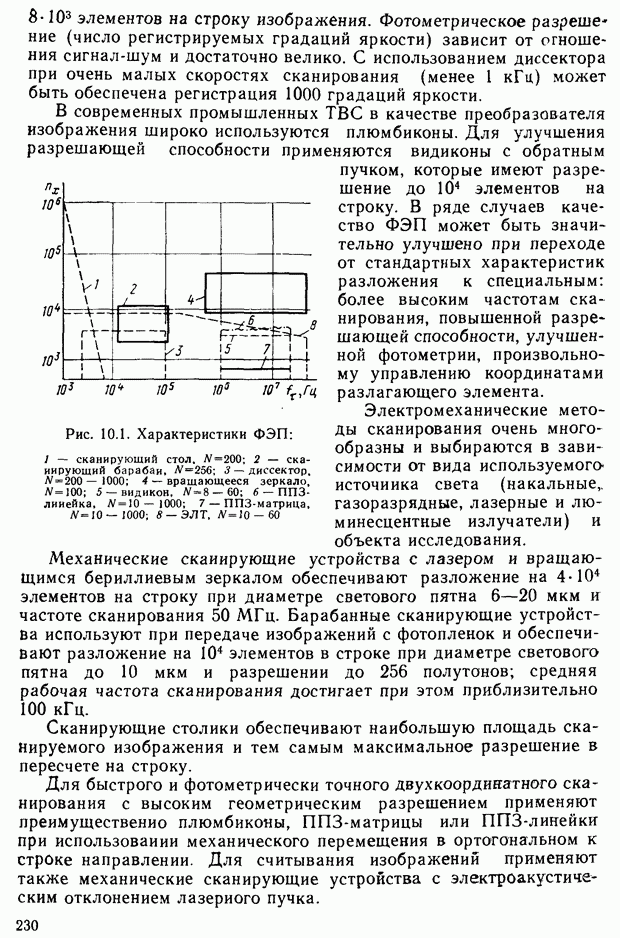 Рис. 4 11. Характеристики преобразовании видиконов с ОСМ Отклонение и фокусировка коммутирующего пучка — электромагнитные Размер изображения на мишени Остаточный сигнал (инерционность) через 40 мс 8-17%. Типовая спектральная характеристика видикона ЛИ458 приведена на рис. 4.3 (кривая 5).