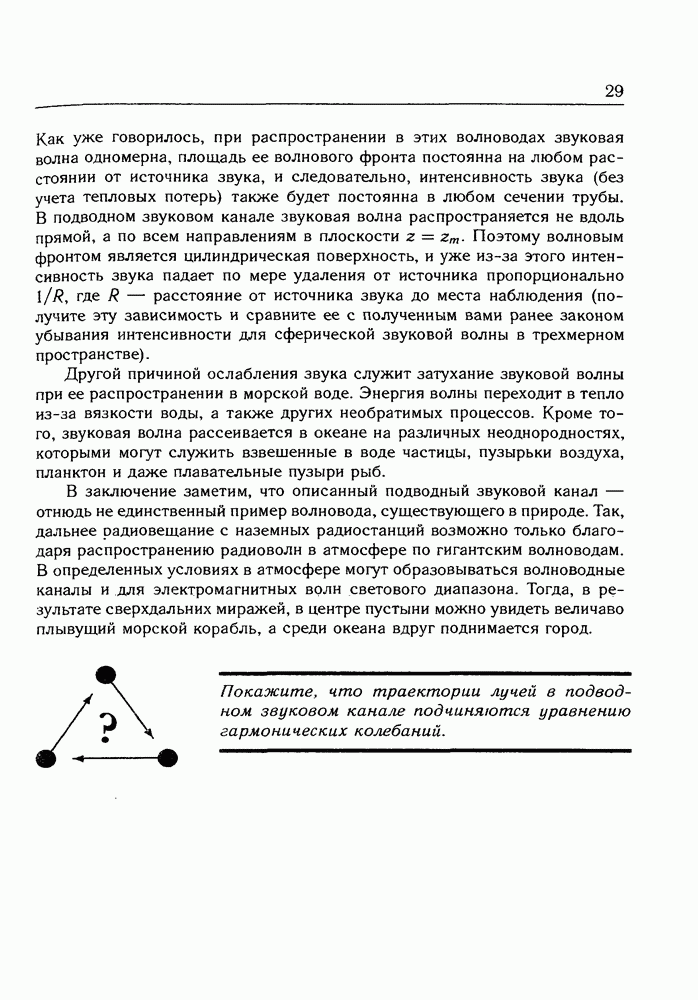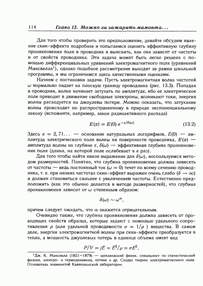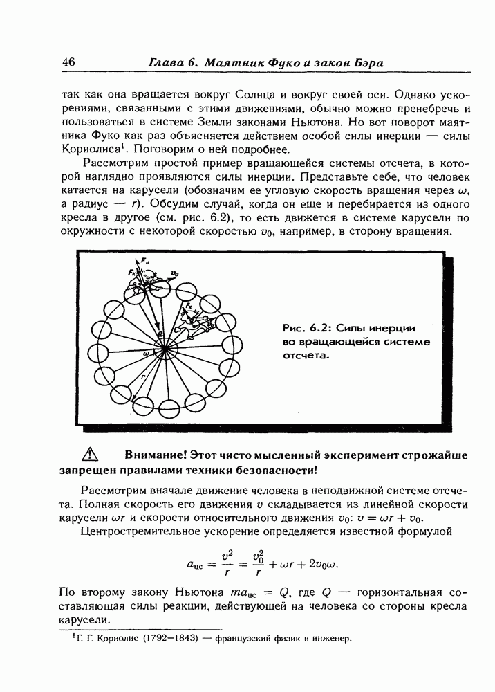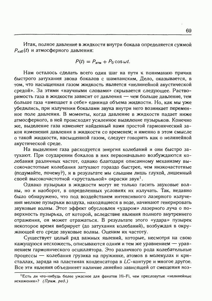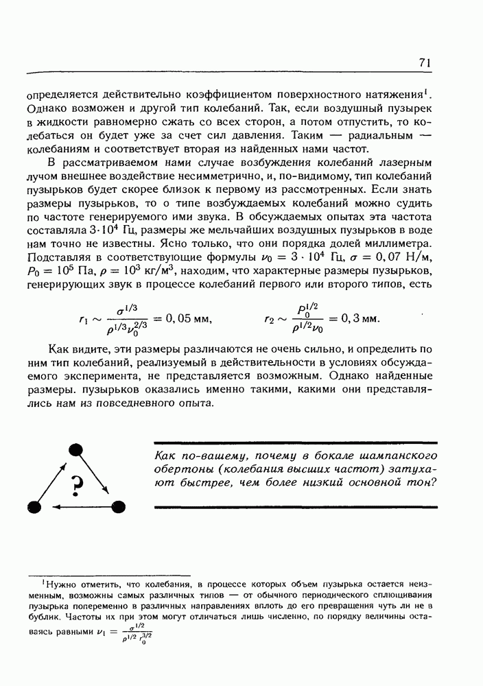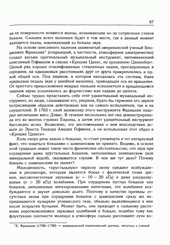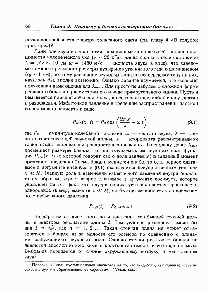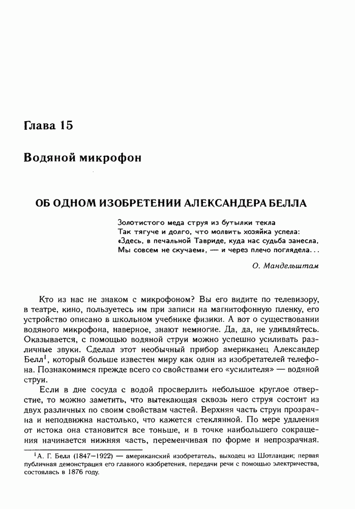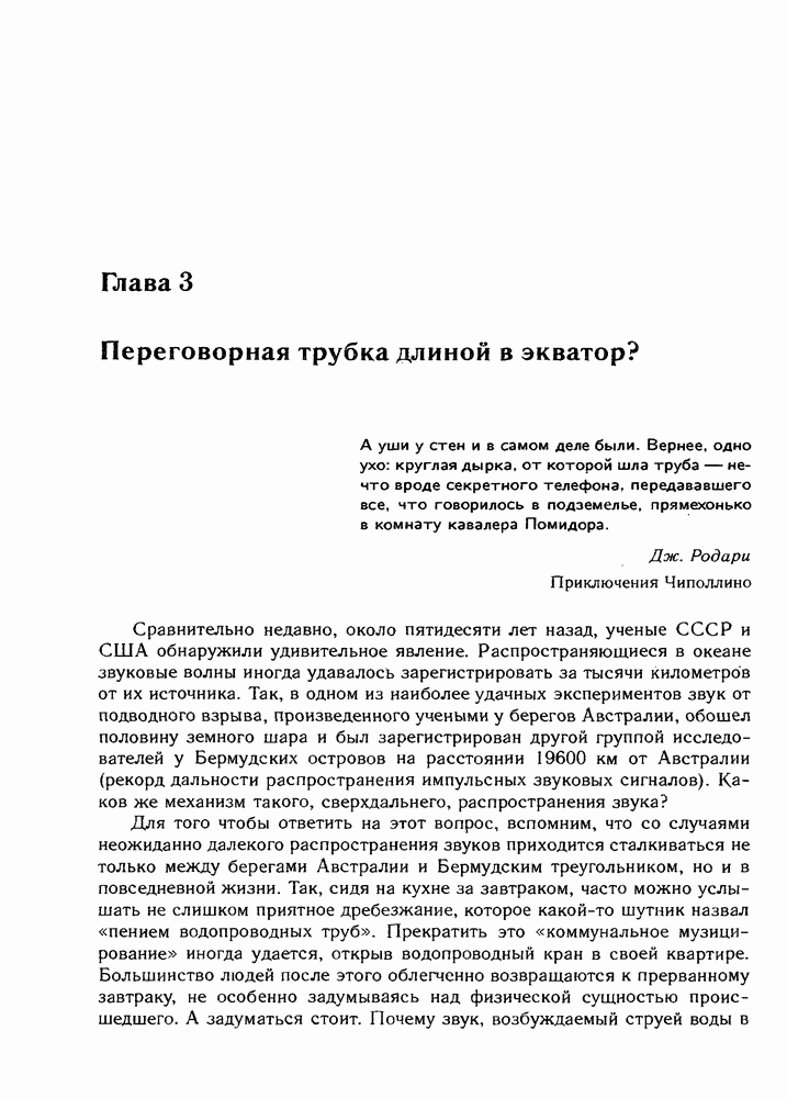 Глава 17. Почему гудят проводаПрохладою дышит Там ветер вечерний, и в листьях шумит И ветви колышет И арфу лобзает... Но арфа молчит... И вдруг. .. из молчанья Поднялся протяжно задумчивый звон. В. Жуковский Эоловая арфа Еще древние греки заметили, что струна, натянутая на ветру, иногда начинает мелодично звучать — петь. Возможно, уже тогда была известна эолова арфа, названная по имени бога ветра Эола. Эолова арфа состоит из рамки, на которой натянуто несколько струн; ее помещают в таком месте, где струны обдуваются ветром. Если даже ограничиться одной струной, можно получить целый ряд различных тонов. Нечто подобное, но с гораздо меньшим разнообразием тонов происходит, когда ветер приводит в движение телеграфные провода. Довольно долго это и многие другие явления, связанные с обтеканием тел воздухом и водой, не были объяснены. Только Ньютон, основоположник современной механики, дал первый научный подход к решению таких задач. По закону сопротивления движению тел в жидкости или газе, открытому Ньютоном, сила сопротивления пропорциональна квадрату скорости: