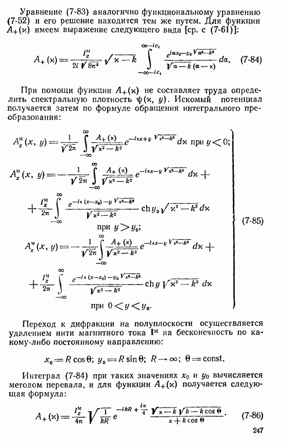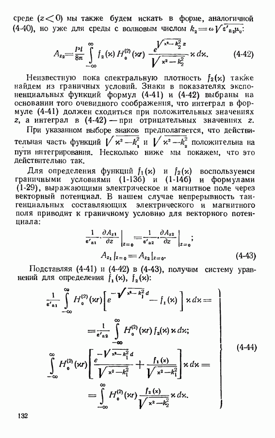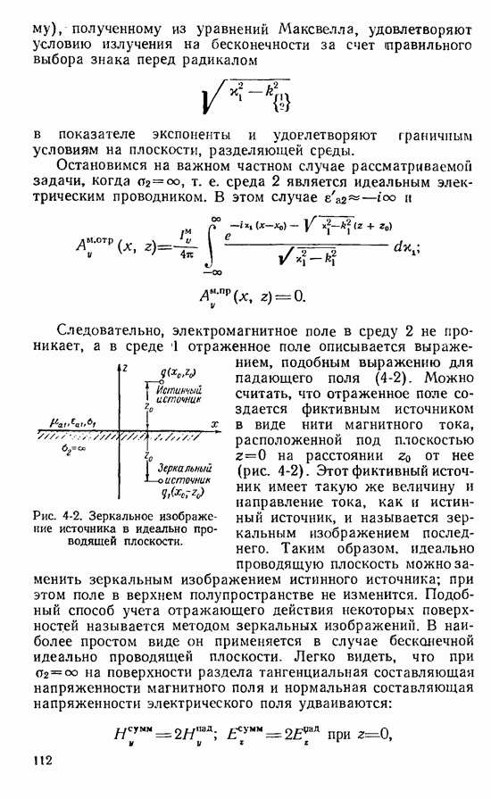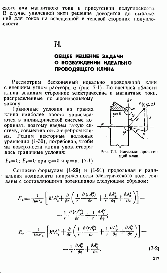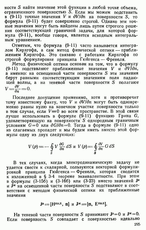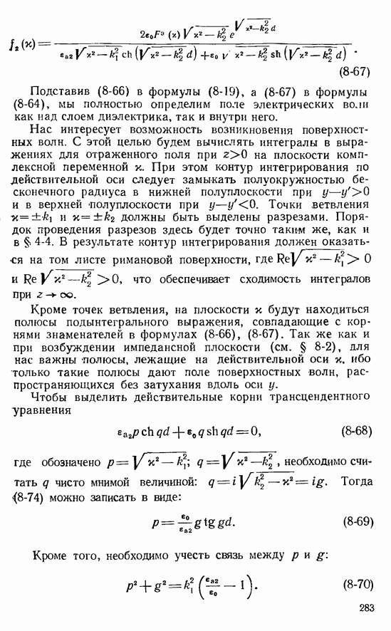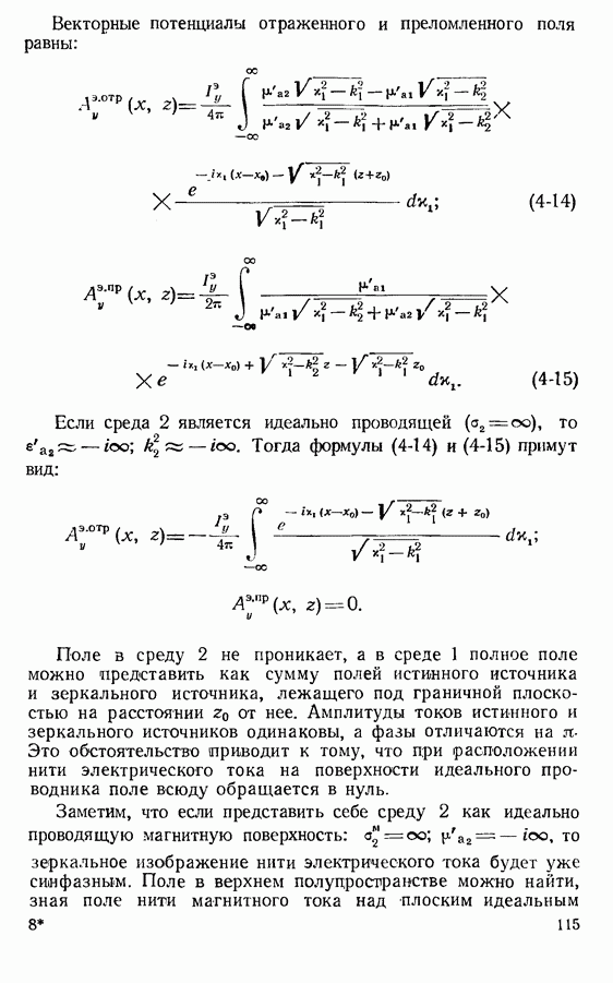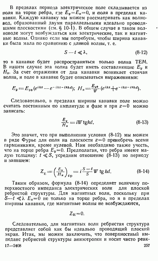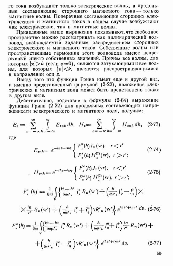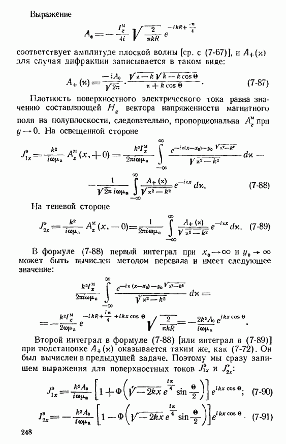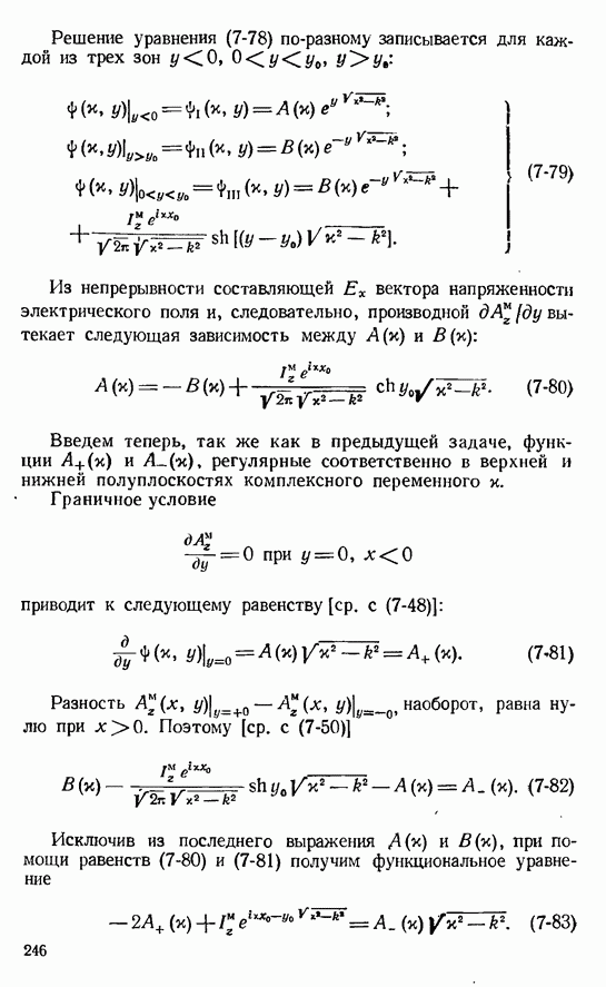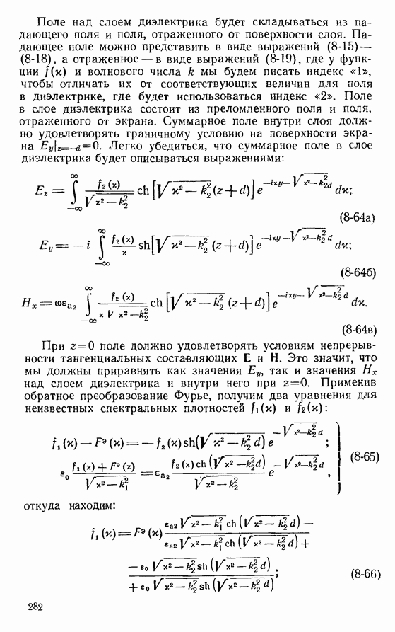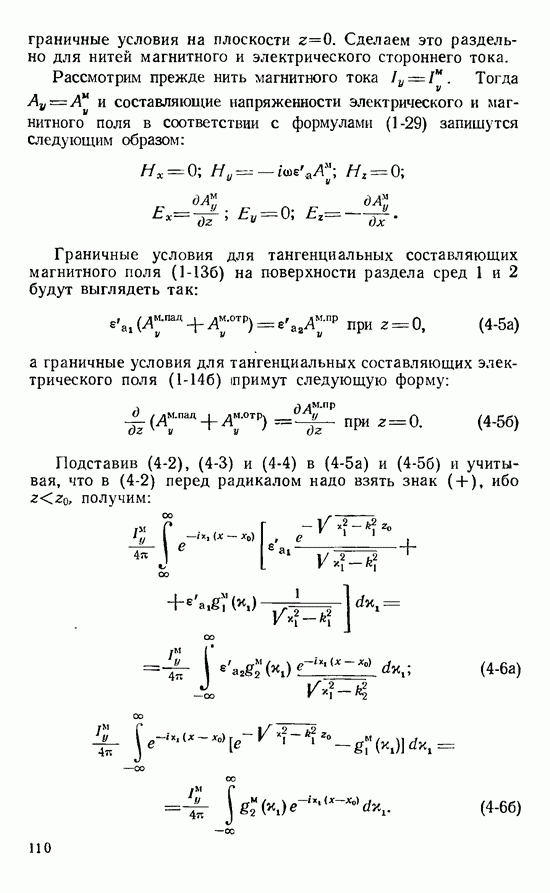 Наведенные электрические токи существуют как на импедансной полосе, так и на экране, а наведенные магнитные токи текут только в пределах импеданской полосы. Остановимся на выборе функций Грина Взяв сумму и разность выражений (2-146), можно получить функции Грина, удовлетворяющие поставленным требованиям. Если мы теперь с помощью формул (1-29) и (8-57) найдем поле