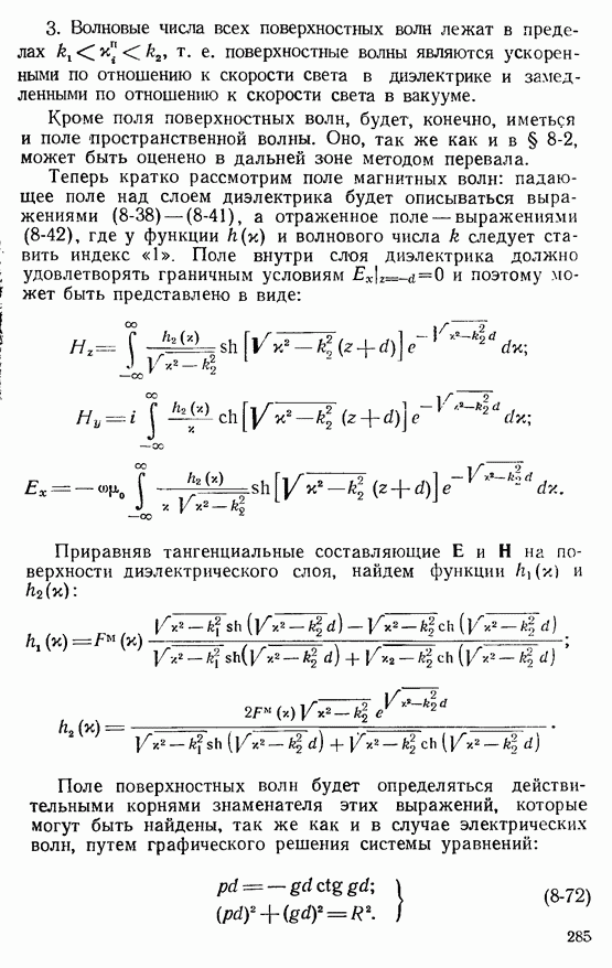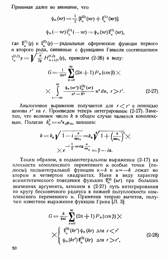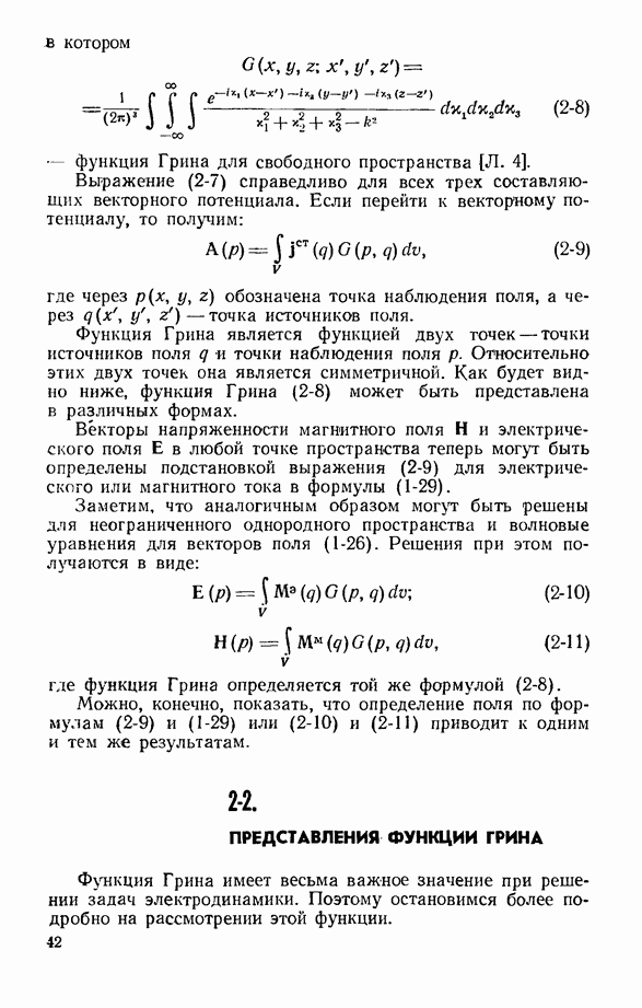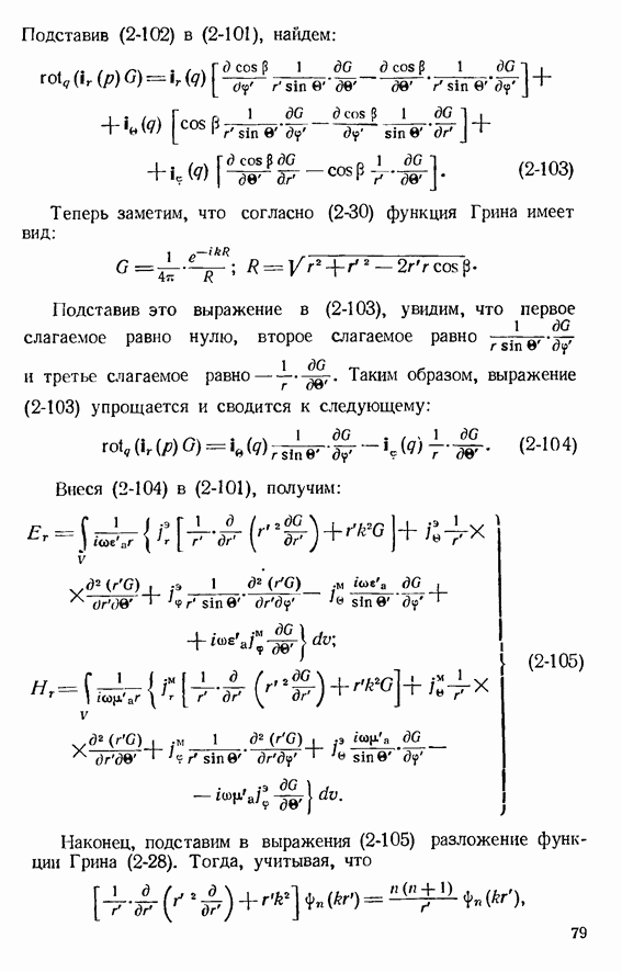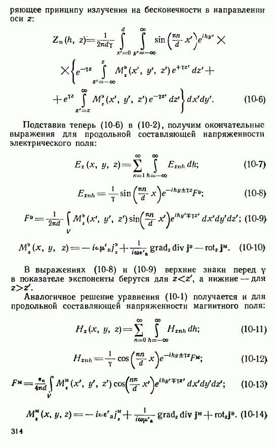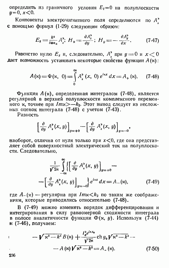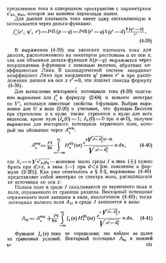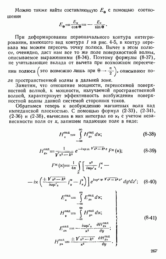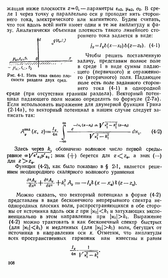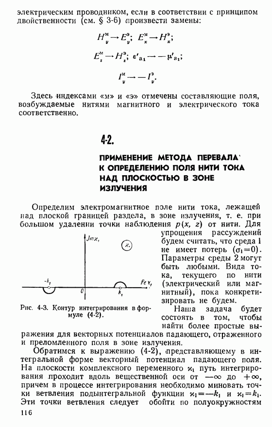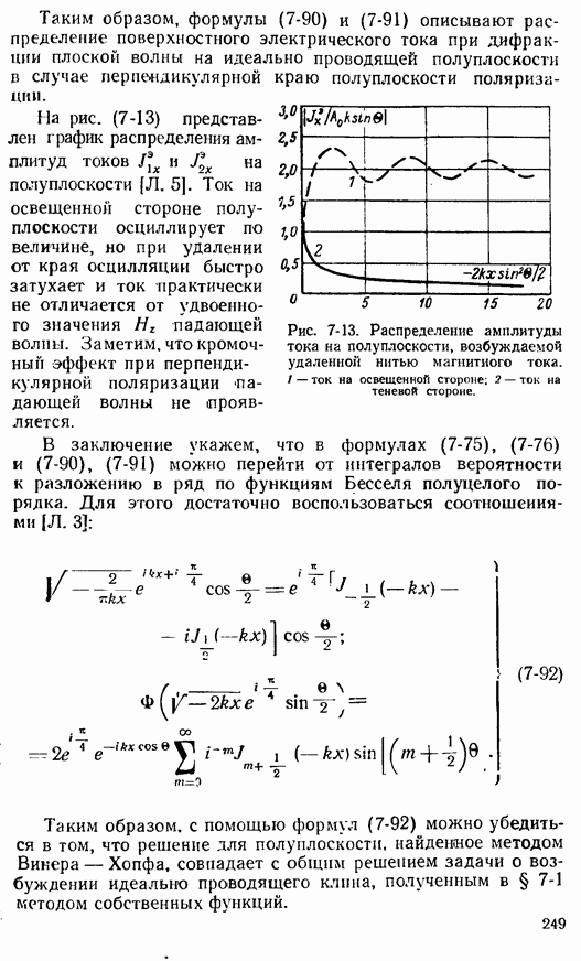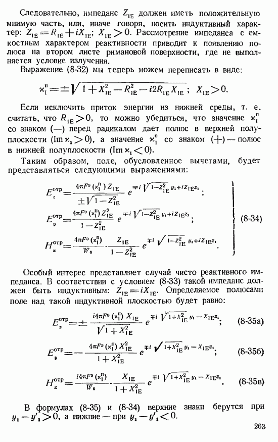 Наведенные электрические токи существуют как на импедансной полосе, так и на экране, а наведенные магнитные токи текут только в пределах импеданской полосы. Остановимся на выборе функций Грина Взяв сумму и разность выражений (2-146), можно получить функции Грина, удовлетворяющие поставленным требованиям. Если мы теперь с помощью формул (1-29) и (8-57) найдем поле