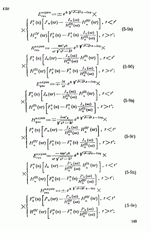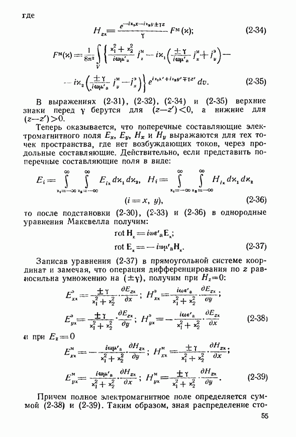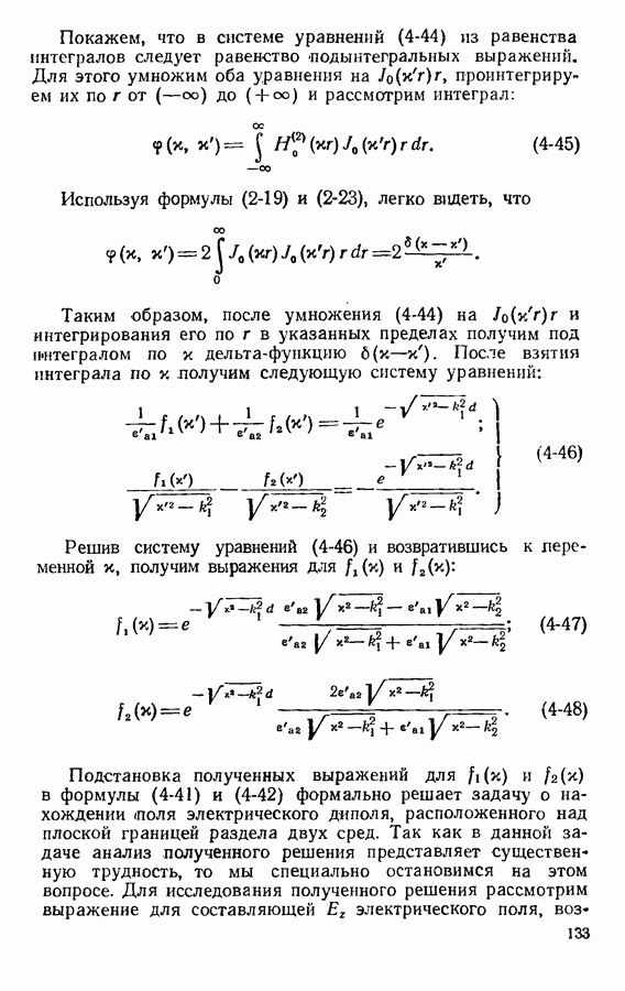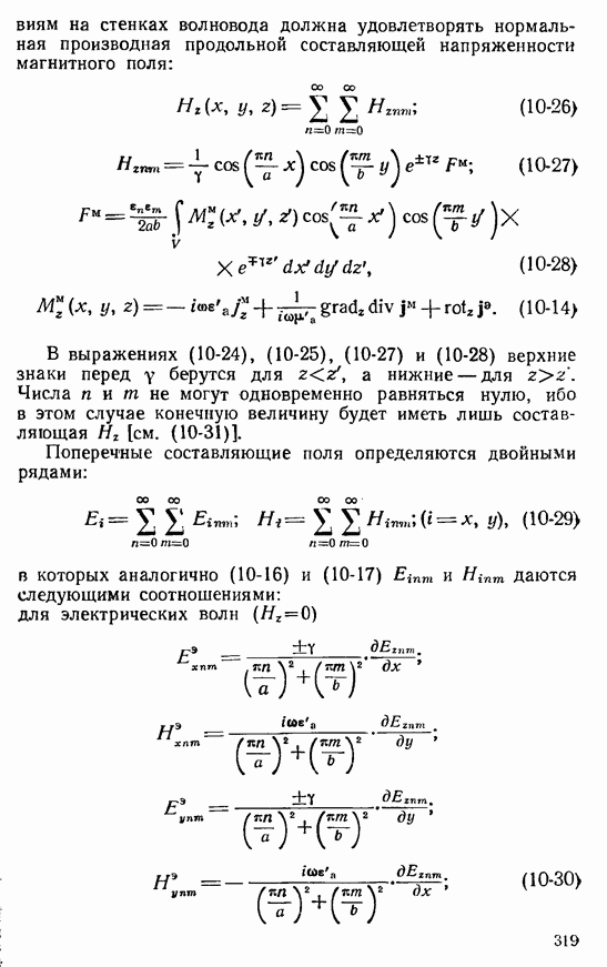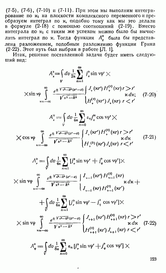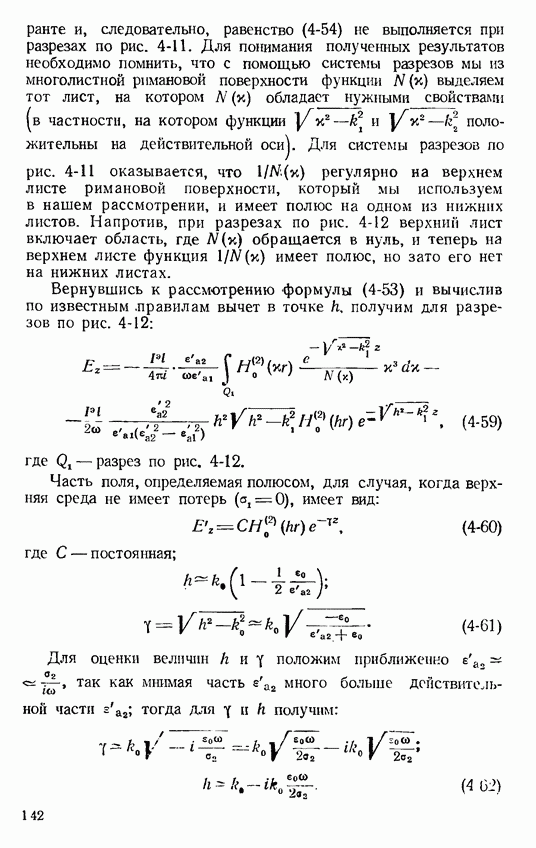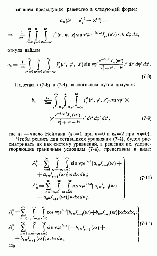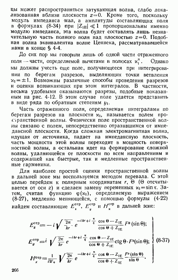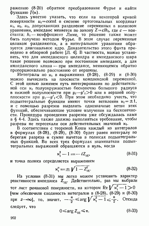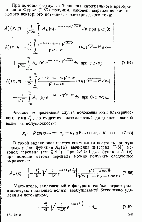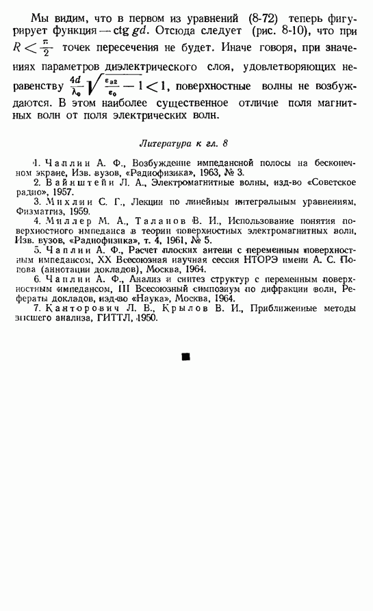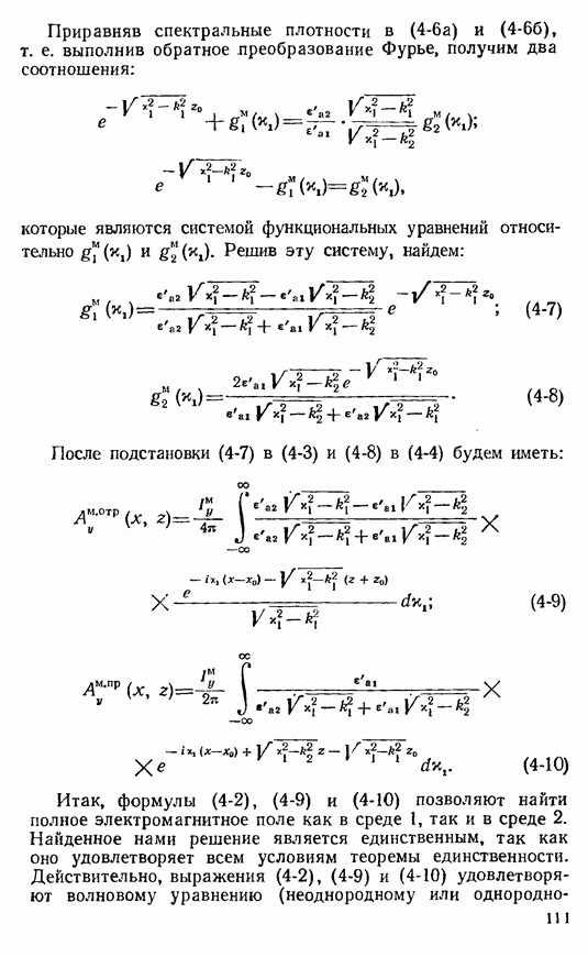Наведенные электрические токи существуют как на импедансной полосе, так и на экране, а наведенные магнитные токи текут только в пределах импеданской полосы. Остановимся на выборе функций Грина Взяв сумму и разность выражений (2-146), можно получить функции Грина, удовлетворяющие поставленным требованиям. Если мы теперь с помощью формул (1-29) и (8-57) найдем поле