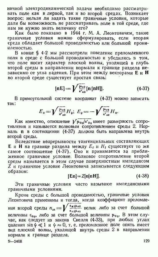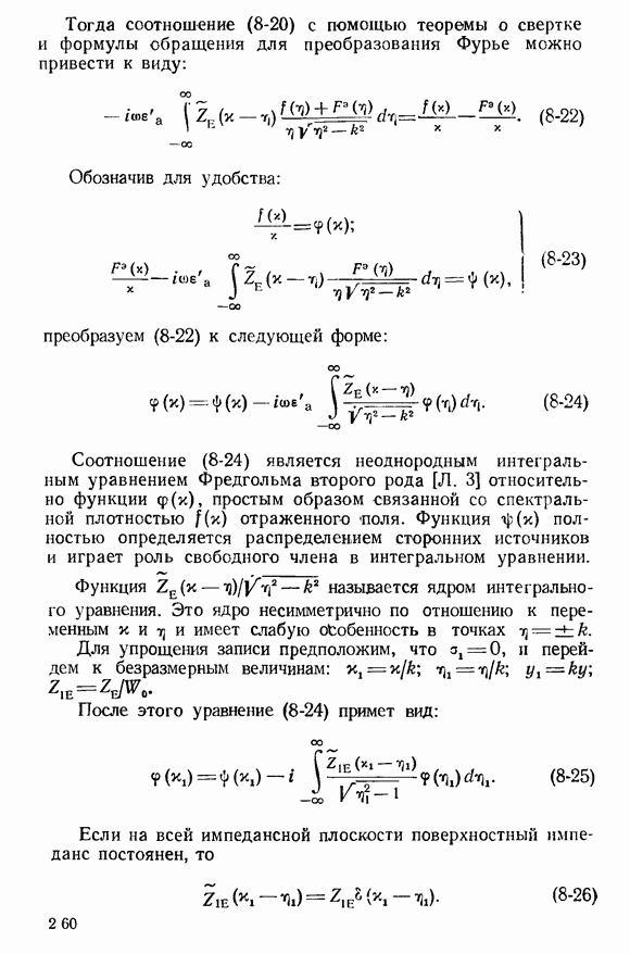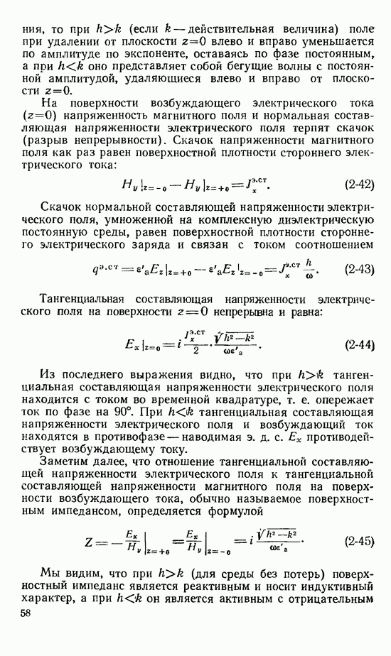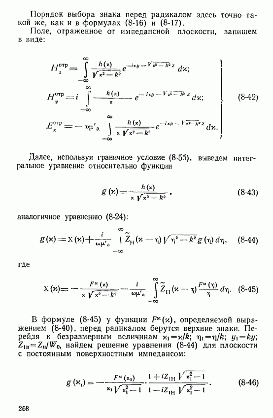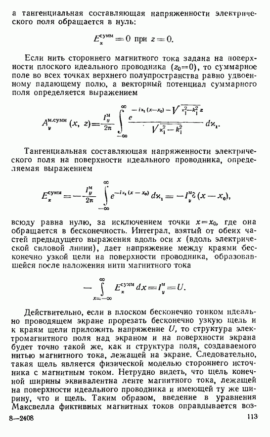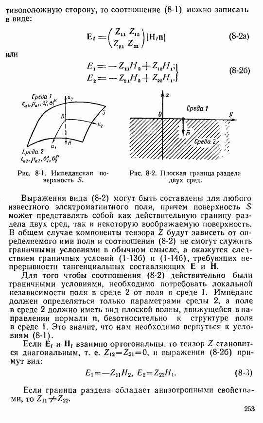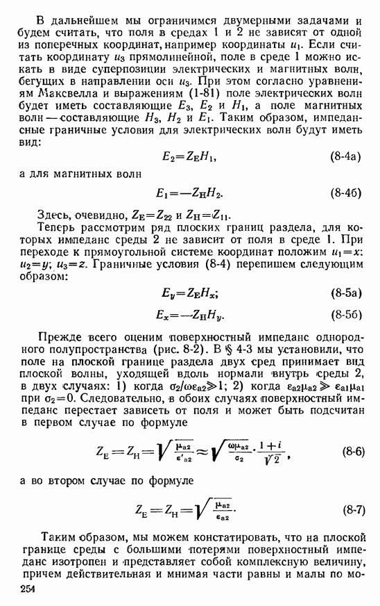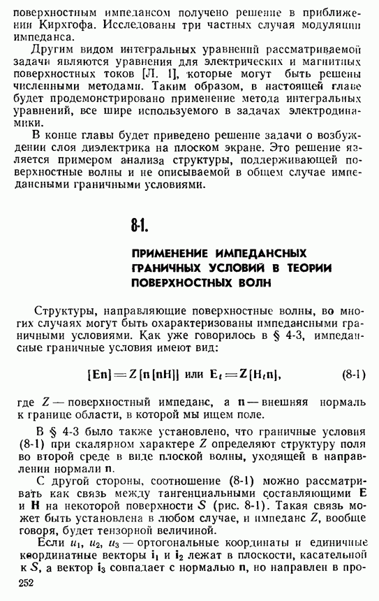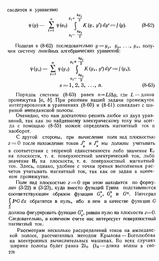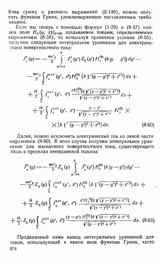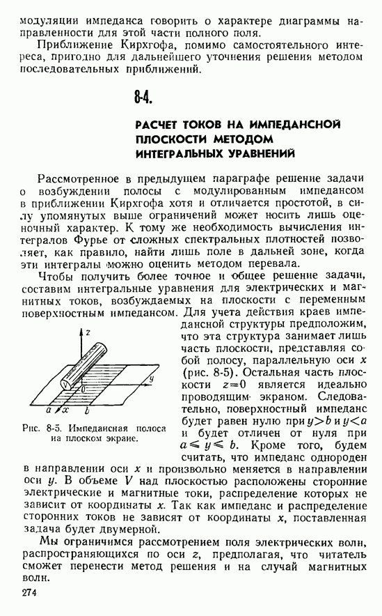 Далее, можно исключить электрический ток из левой части выражения (8-60). В этом случае получим интегральное уравнение для магнитного поверхностного тока, существующего лишь в пределах импедансной полосы: