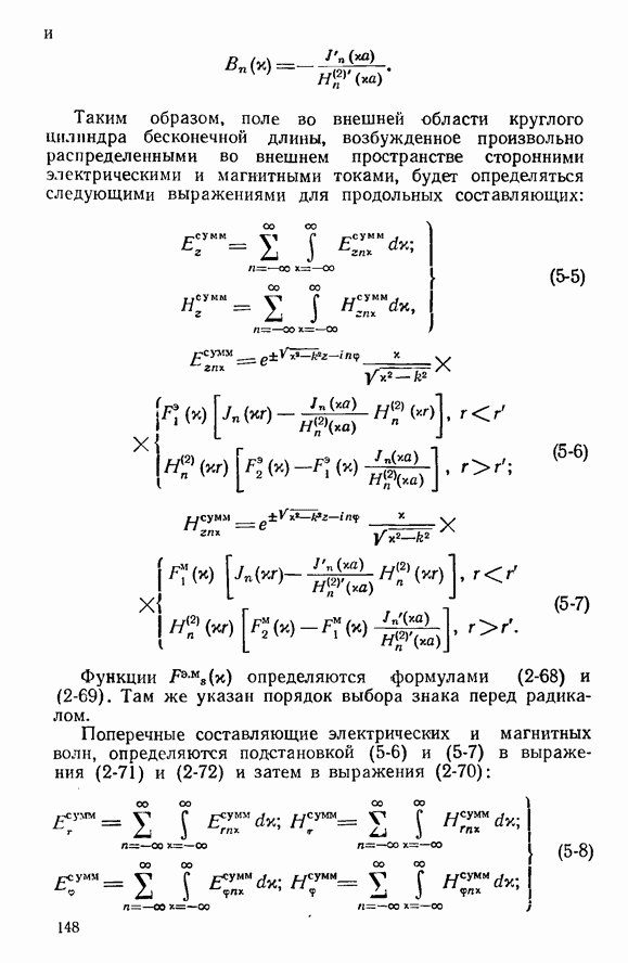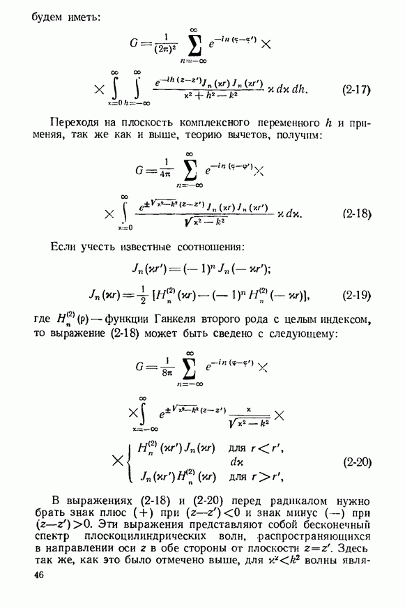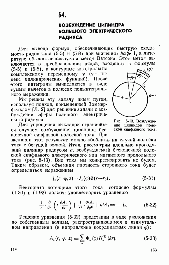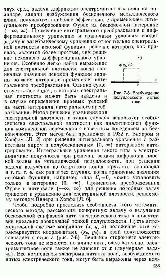 Проделанный нами вывод интегральных уравнений для токов, использующей в явном виде функции Грина, часто применяется при решении электродинамических задач и обладает достаточной общностью. Действительно, уравнения (8-60) и (8-61) легко обобщить на ряд двухмерных задач возбуждения импедансных структур Мы ограничимся здесь решением плоской задачи, для чего вернемся к уравнениям (8-60) и (8-61). Эти уравнення являются неоднородными интегральными уравнениями Фредгольма второго рода [Л. 3]. Ядра этих уравнений имеют логарифмическую особенность при