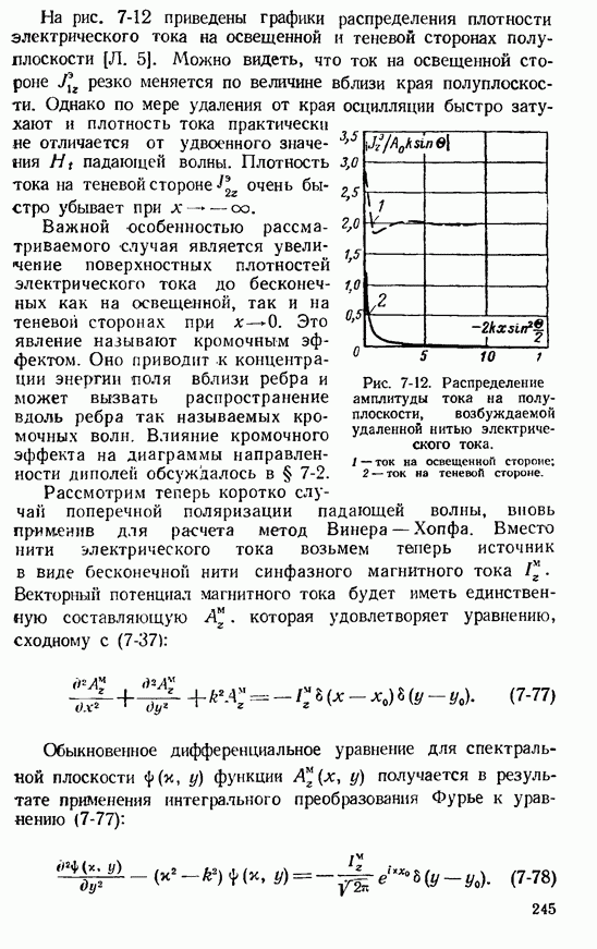 Рис. 8-7. Распределение токов на полосе с импедансом Средние линии графиков модулей токов наклонены в сторону меньших значений На рис. 8-8 нанесены графики распределения токов на полосе с импедансом, возрастающим по закону