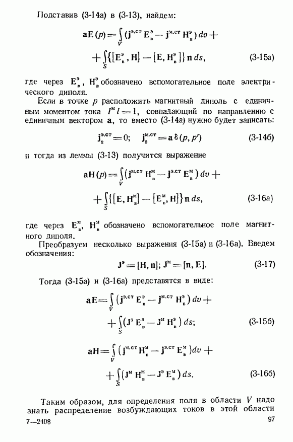 где Объемные плотности электрических и магнитных токов в (8-57) будут складываться из сторонних токов, заданных в объеме V, и токов, наведенных на импедансной полосе и экране: