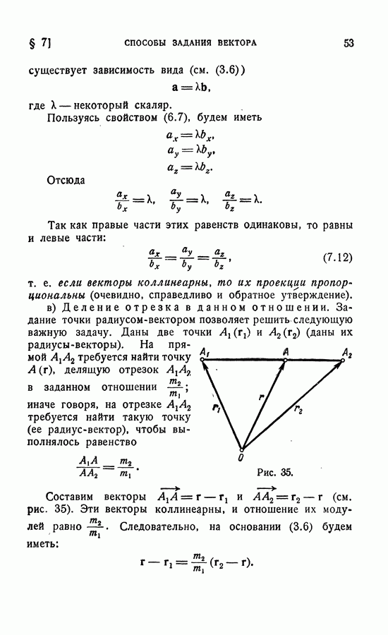 (см. рис. 35). Эти векторы коллинеарны, и отношение их модулей равно Следовательно, на основании (3.6) будем иметь: