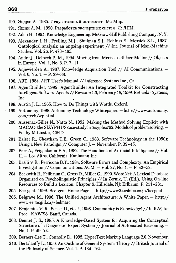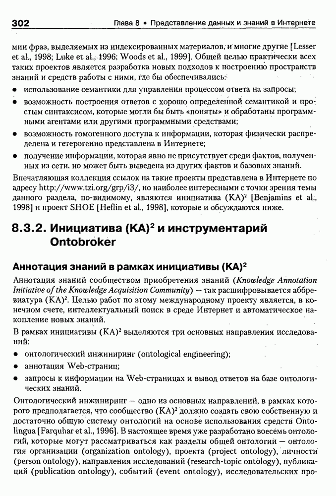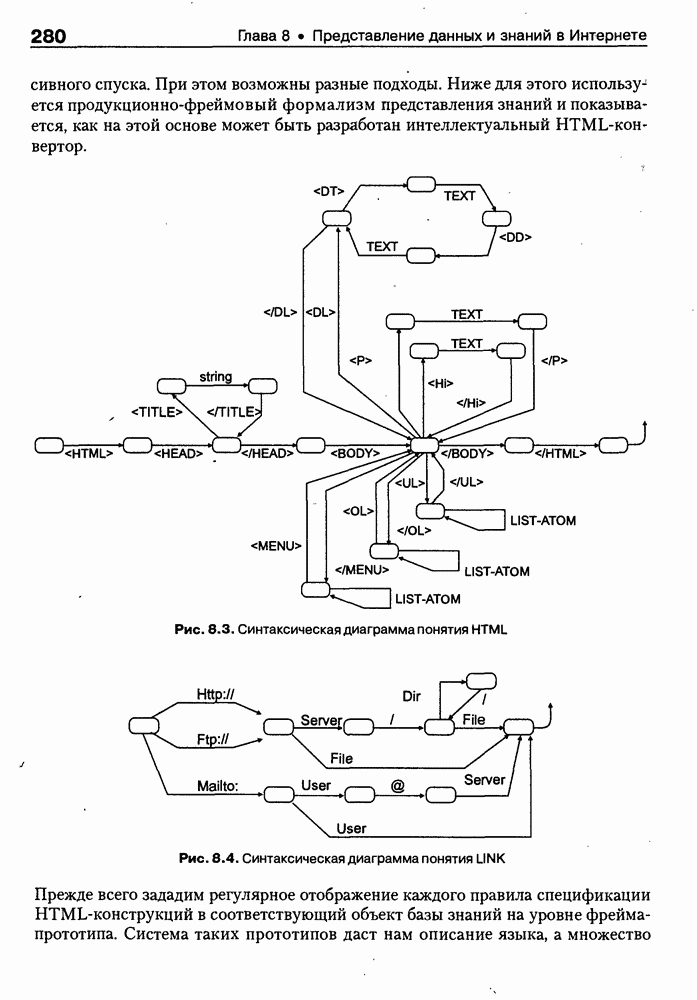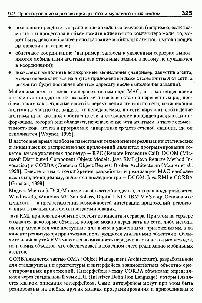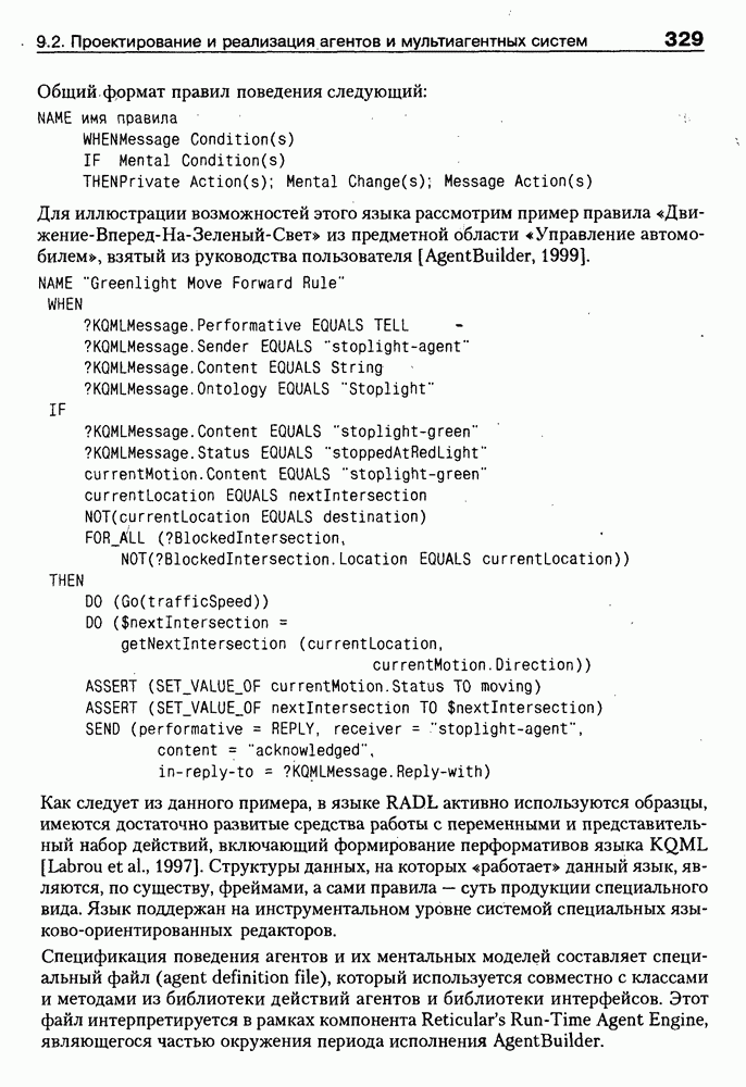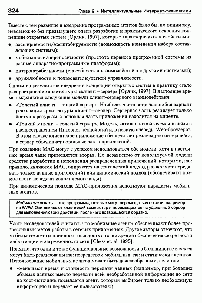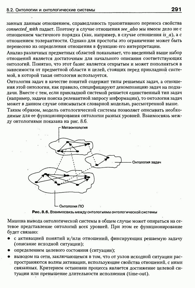 9.3.3. Системы интеллектуальных поисковых агентовСегодня в развитии систем поиска и обработки Интернет-ресурсов наметился явный сдвиг в сторону использования средств ИИ, в частности представления знаний и вывода на знаниях, интеллектуальных механизмов обучения, анализа естественно-языковых текстов и некоторых других. Как правило, системы интеллектуального поиска разрабатываются либо в серьезных фирмах, владеющих технологиями разработки и реализации интеллектуальных агентов, либо в исследовательских лабораториях университетов. Справедливости ради следует заметить, что коммерческие версии таких систем часто декларируют больше, чем реализовано в действительности, а исследовательские разработки обычно существуют в виде демонстрационных версий с ограниченными возможностями, хотя в теоретическом плане последние интереснее. Для конкретизации дальнейшего изложения остановимся сначала более подробно на нескольких, интересных на наш взгляд, коммерческих системах интеллектуального поиска и обработки информации в сети Интернет, а завершим обсуждение рассмотрением нескольких исследовательских проектов в этой области, использующих онтологии. Autonomy и Webcompass — системы интеллектуального поиска и обработки информацииОбсуждаемые ниже версии агентных поисковых систем Autonomy [Autonomy, 1998] и Webcompass [Webcompass 1999] созданы во второй половине 90-х годов. Цели их разработки практически одинаковые — обеспечить пользователя интегрированными средствами поиска релевантной его интересам информации в сети Интернет, организация найденных документов в рамках определенных тем, а также автоматизация процессов самого поиска. Вместе с тем проектные решения, принятые разработчиками, здесь существенно разные. Первое различие между этими системами в ориентации на разные категории пользователей. Система Autonomy представляет собой совокупность программных агентов для интеллектуального поиска и обработки информации, организованных в рамках специализированной оболочки, предназначенной скорее для конечных пользователей, чем предметных специалистов. Такая установка влечет за собой специальную организацию интерфейсов, интуитивно понятную и прозрачную для новичков. По сути, пользователю здесь предлагается парадигма «антропоморфного» общения со всеми компонентами системы и «игровой» подход к решению достаточно сложных задач (рис. 9.7). (см. скан) Рис. 9.7. Главная панель системы Autonomy Система Webcompass архитектурно тоже состоит из агентно-ориентированных компонентов, поддерживающих все основные процессы, которые должны быть реализованы в полномасштабном программном комплексе поиска и анализа информации. Но ориентирована эта система, прежде всего, на «продвинутых» пользователей, которые хотят и могут сформировать структурное описание области своих интересов. Коммуникационный центр Webcompass (рис. 9.8) предлагает пользователю парадигму многооконного интерфейса, характерную для современных офисных приложений, и систему структурных редакторов для спецификации предметной области, поисковых запросов и управляющей информации. Второе различие между системами Autonomy и Webcompass — в подходе к описанию предметной области поиска. В первых версиях системы Autonomy использовалась технология нейросетей и специальный метод представления, разработанный для фирмы AgentWare (так