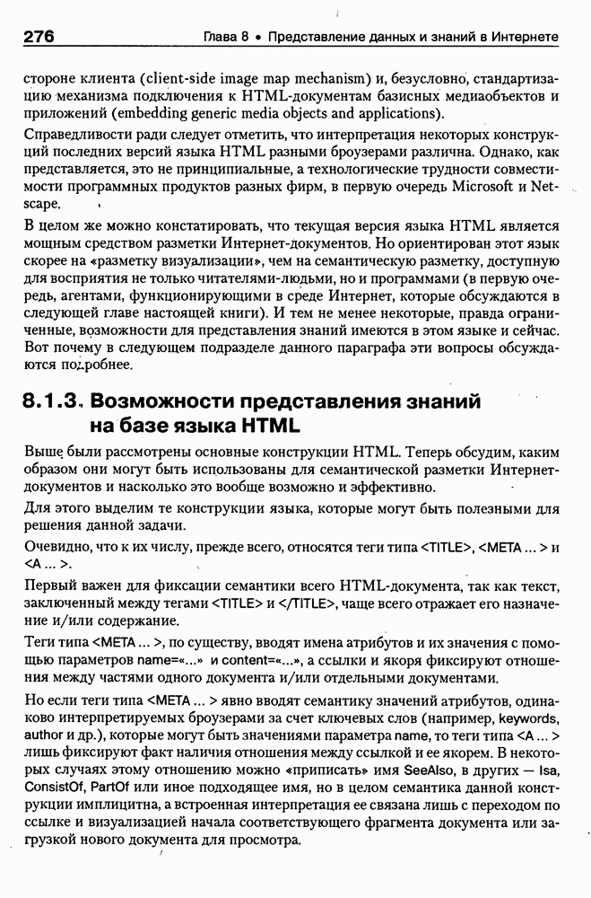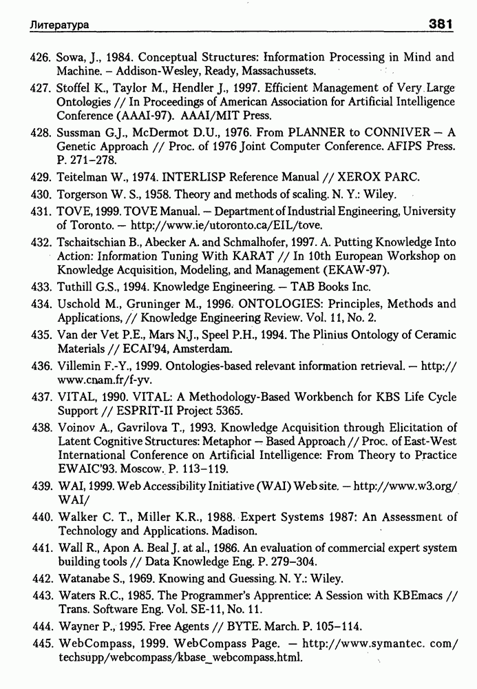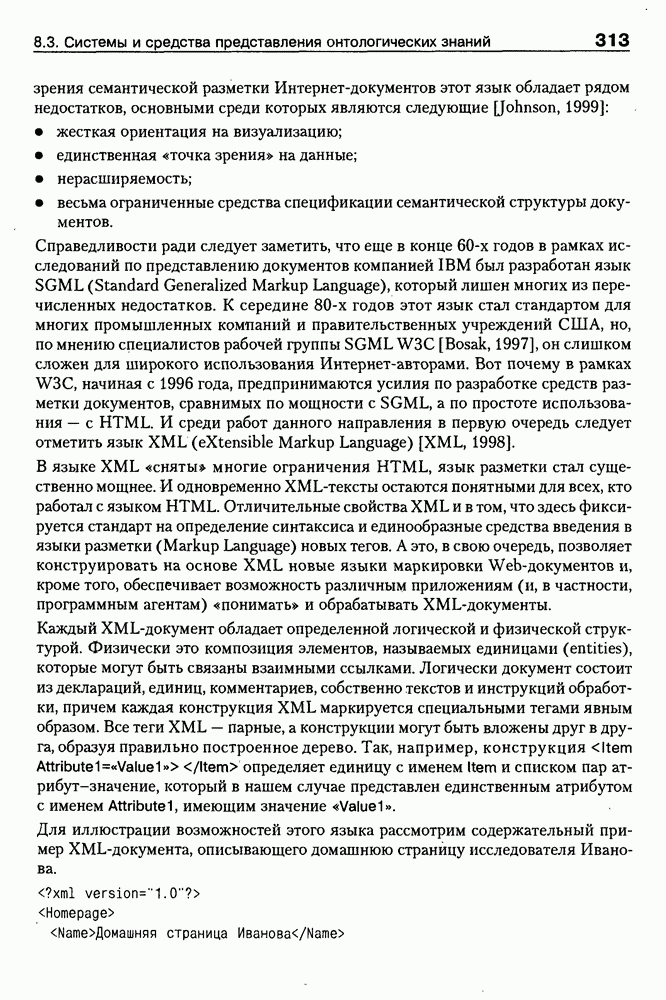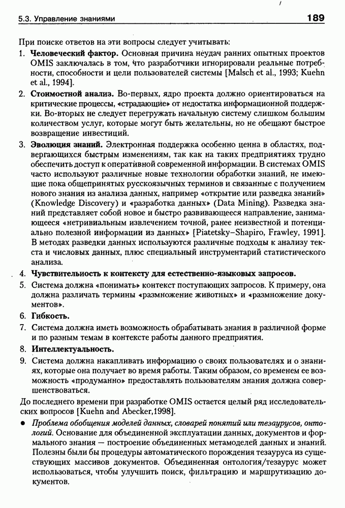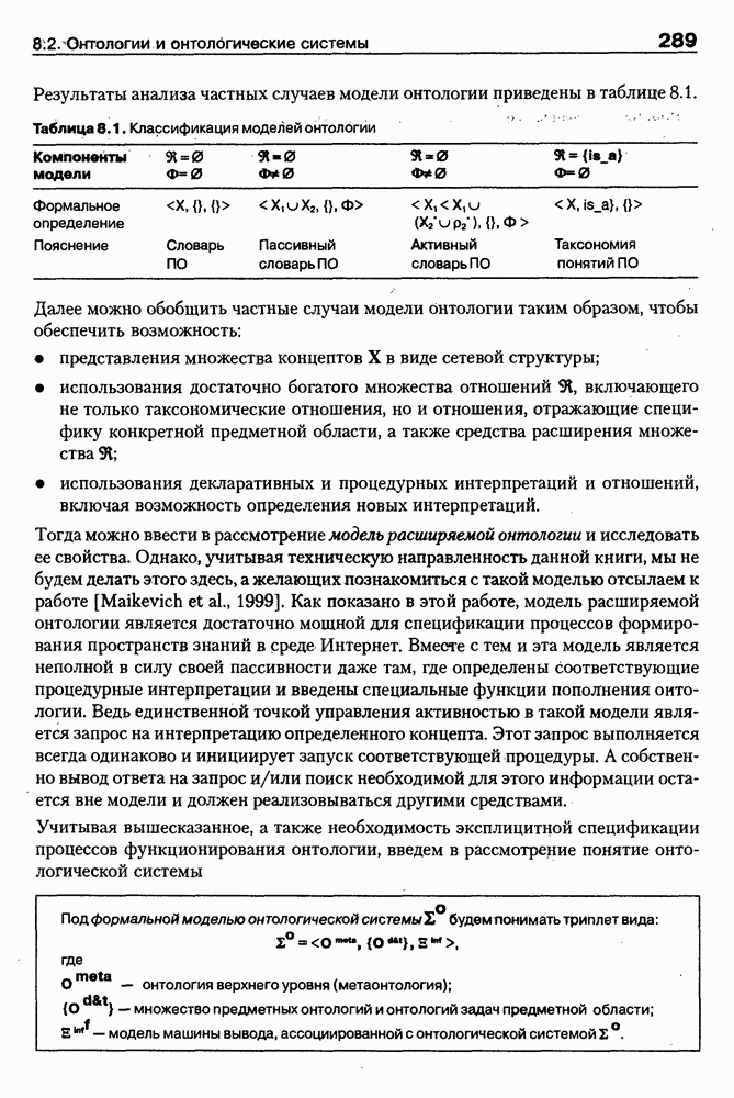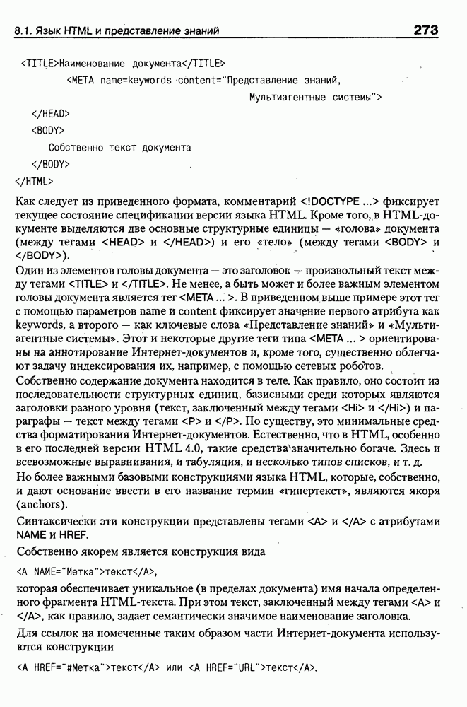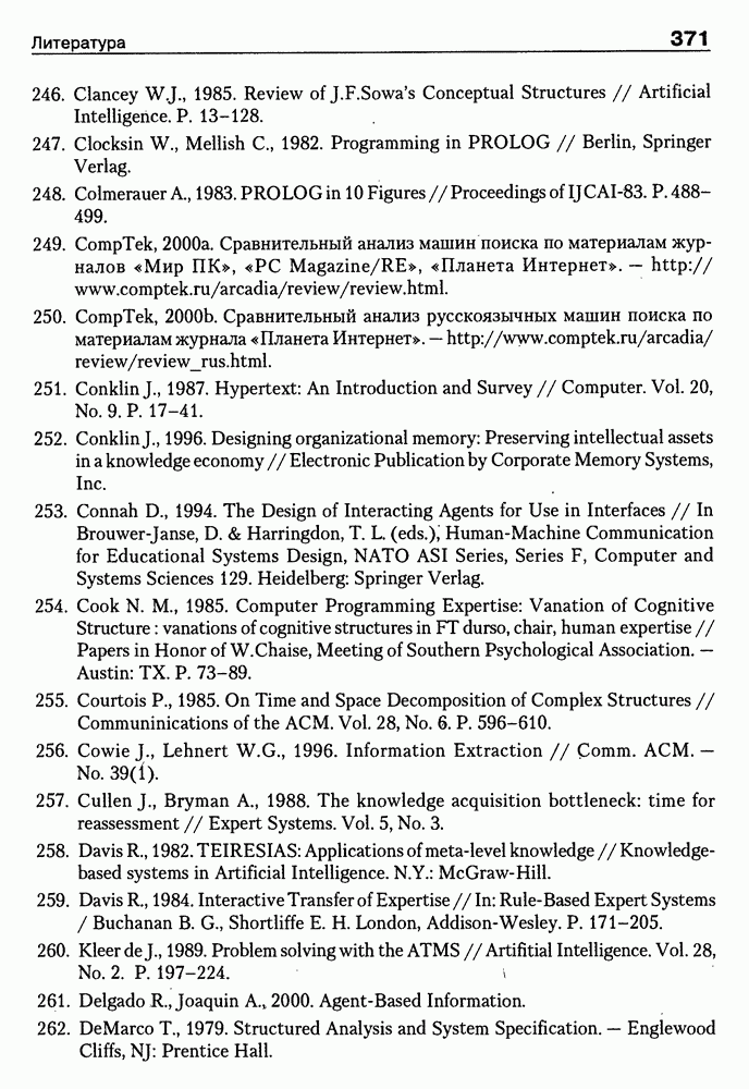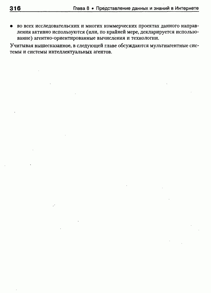 9.3.3. Системы интеллектуальных поисковых агентовСегодня в развитии систем поиска и обработки Интернет-ресурсов наметился явный сдвиг в сторону использования средств ИИ, в частности представления знаний и вывода на знаниях, интеллектуальных механизмов обучения, анализа естественно-языковых текстов и некоторых других. Как правило, системы интеллектуального поиска разрабатываются либо в серьезных фирмах, владеющих технологиями разработки и реализации интеллектуальных агентов, либо в исследовательских лабораториях университетов. Справедливости ради следует заметить, что коммерческие версии таких систем часто декларируют больше, чем реализовано в действительности, а исследовательские разработки обычно существуют в виде демонстрационных версий с ограниченными возможностями, хотя в теоретическом плане последние интереснее. Для конкретизации дальнейшего изложения остановимся сначала более подробно на нескольких, интересных на наш взгляд, коммерческих системах интеллектуального поиска и обработки информации в сети Интернет, а завершим обсуждение рассмотрением нескольких исследовательских проектов в этой области, использующих онтологии. Autonomy и Webcompass — системы интеллектуального поиска и обработки информацииОбсуждаемые ниже версии агентных поисковых систем Autonomy [Autonomy, 1998] и Webcompass [Webcompass 1999] созданы во второй половине 90-х годов. Цели их разработки практически одинаковые — обеспечить пользователя интегрированными средствами поиска релевантной его интересам информации в сети Интернет, организация найденных документов в рамках определенных тем, а также автоматизация процессов самого поиска. Вместе с тем проектные решения, принятые разработчиками, здесь существенно разные. Первое различие между этими системами в ориентации на разные категории пользователей. Система Autonomy представляет собой совокупность программных агентов для интеллектуального поиска и обработки информации, организованных в рамках специализированной оболочки, предназначенной скорее для конечных пользователей, чем предметных специалистов. Такая установка влечет за собой специальную организацию интерфейсов, интуитивно понятную и прозрачную для новичков. По сути, пользователю здесь предлагается парадигма «антропоморфного» общения со всеми компонентами системы и «игровой» подход к решению достаточно сложных задач (рис. 9.7). (см. скан) Рис. 9.7. Главная панель системы Autonomy Система Webcompass архитектурно тоже состоит из агентно-ориентированных компонентов, поддерживающих все основные процессы, которые должны быть реализованы в полномасштабном программном комплексе поиска и анализа информации. Но ориентирована эта система, прежде всего, на «продвинутых» пользователей, которые хотят и могут сформировать структурное описание области своих интересов. Коммуникационный центр Webcompass (рис. 9.8) предлагает пользователю парадигму многооконного интерфейса, характерную для современных офисных приложений, и систему структурных редакторов для спецификации предметной области, поисковых запросов и управляющей информации. Второе различие между системами Autonomy и Webcompass — в подходе к описанию предметной области поиска. В первых версиях системы Autonomy использовалась технология нейросетей и специальный метод представления, разработанный для фирмы AgentWare (так