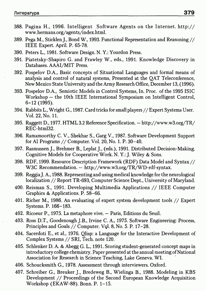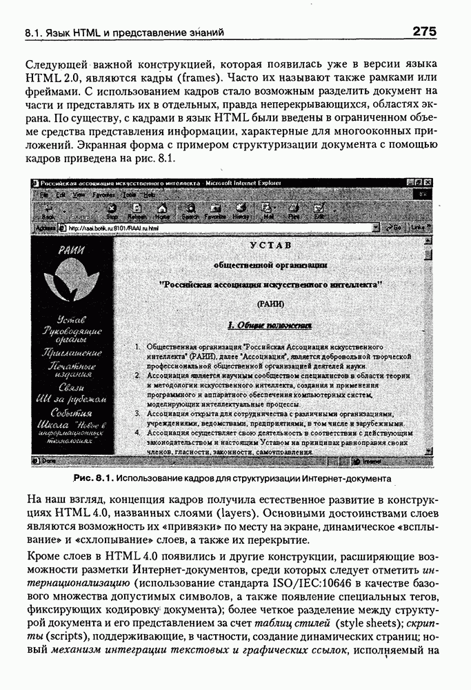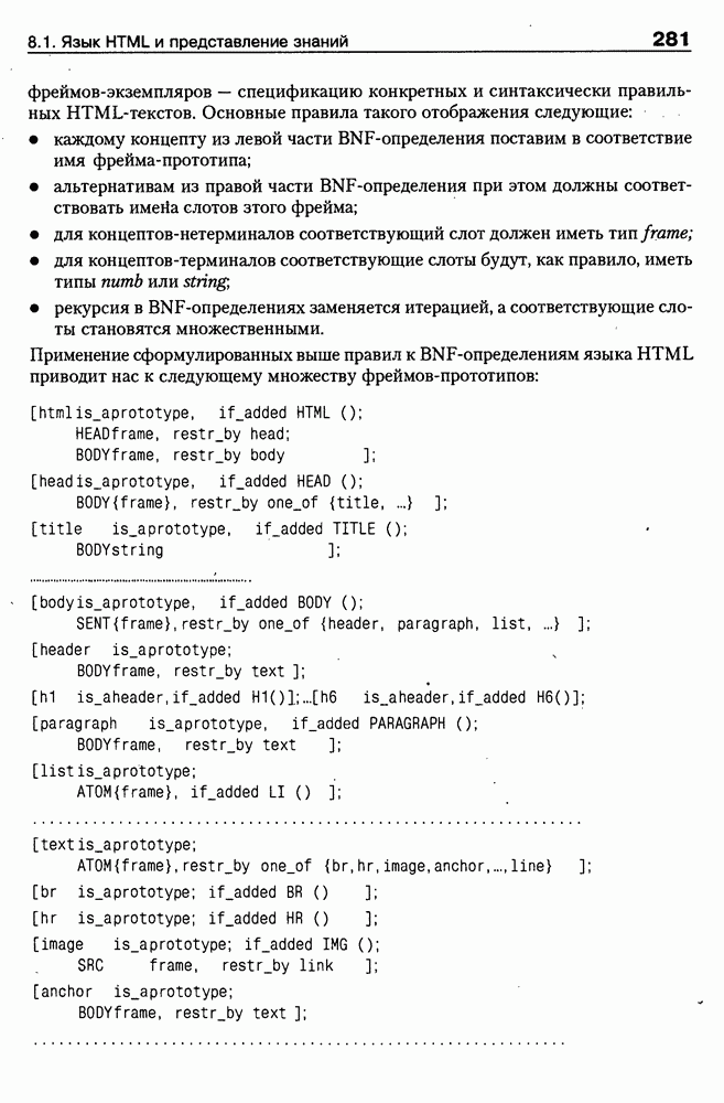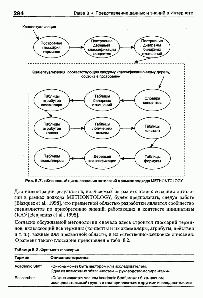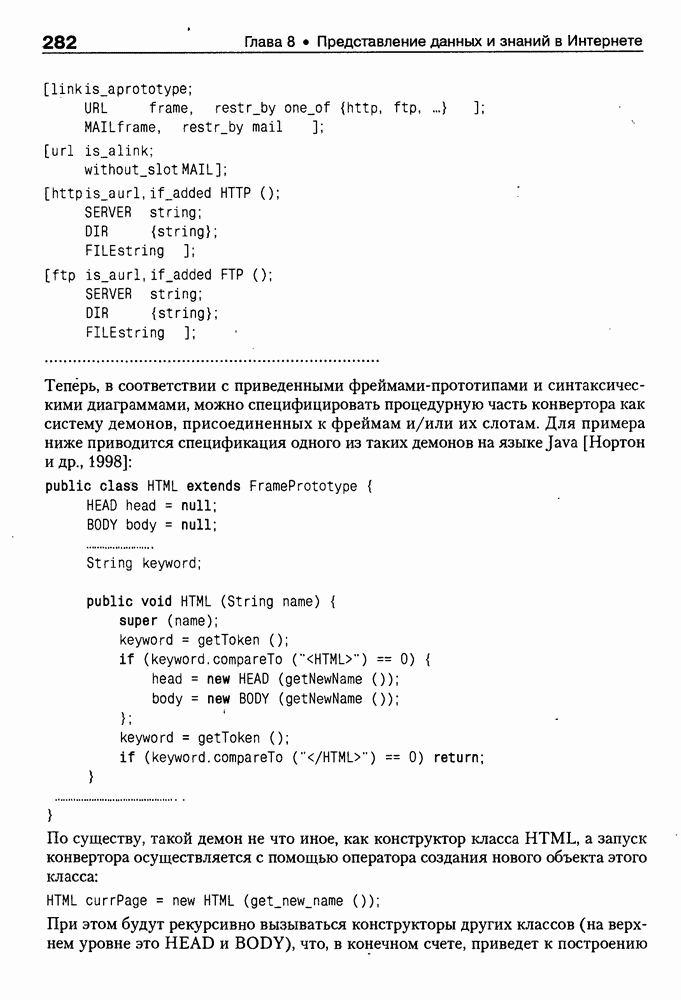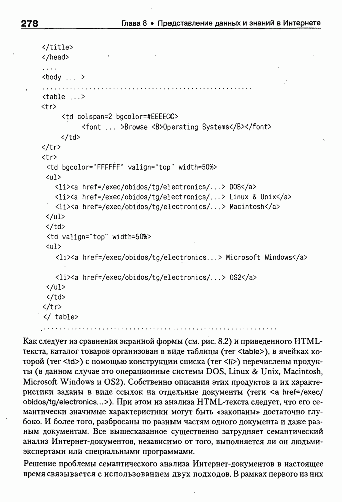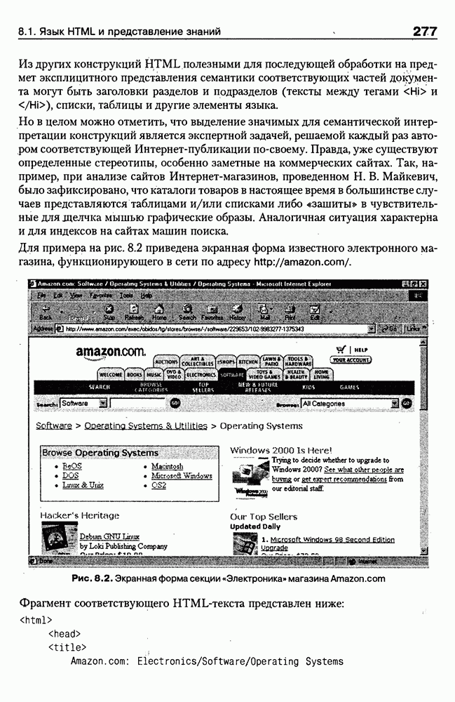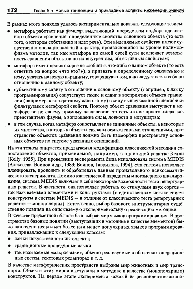 9.3.3. Системы интеллектуальных поисковых агентовСегодня в развитии систем поиска и обработки Интернет-ресурсов наметился явный сдвиг в сторону использования средств ИИ, в частности представления знаний и вывода на знаниях, интеллектуальных механизмов обучения, анализа естественно-языковых текстов и некоторых других. Как правило, системы интеллектуального поиска разрабатываются либо в серьезных фирмах, владеющих технологиями разработки и реализации интеллектуальных агентов, либо в исследовательских лабораториях университетов. Справедливости ради следует заметить, что коммерческие версии таких систем часто декларируют больше, чем реализовано в действительности, а исследовательские разработки обычно существуют в виде демонстрационных версий с ограниченными возможностями, хотя в теоретическом плане последние интереснее. Для конкретизации дальнейшего изложения остановимся сначала более подробно на нескольких, интересных на наш взгляд, коммерческих системах интеллектуального поиска и обработки информации в сети Интернет, а завершим обсуждение рассмотрением нескольких исследовательских проектов в этой области, использующих онтологии. Autonomy и Webcompass — системы интеллектуального поиска и обработки информацииОбсуждаемые ниже версии агентных поисковых систем Autonomy [Autonomy, 1998] и Webcompass [Webcompass 1999] созданы во второй половине 90-х годов. Цели их разработки практически одинаковые — обеспечить пользователя интегрированными средствами поиска релевантной его интересам информации в сети Интернет, организация найденных документов в рамках определенных тем, а также автоматизация процессов самого поиска. Вместе с тем проектные решения, принятые разработчиками, здесь существенно разные. Первое различие между этими системами в ориентации на разные категории пользователей. Система Autonomy представляет собой совокупность программных агентов для интеллектуального поиска и обработки информации, организованных в рамках специализированной оболочки, предназначенной скорее для конечных пользователей, чем предметных специалистов. Такая установка влечет за собой специальную организацию интерфейсов, интуитивно понятную и прозрачную для новичков. По сути, пользователю здесь предлагается парадигма «антропоморфного» общения со всеми компонентами системы и «игровой» подход к решению достаточно сложных задач (рис. 9.7). (см. скан) Рис. 9.7. Главная панель системы Autonomy Система Webcompass архитектурно тоже состоит из агентно-ориентированных компонентов, поддерживающих все основные процессы, которые должны быть реализованы в полномасштабном программном комплексе поиска и анализа информации. Но ориентирована эта система, прежде всего, на «продвинутых» пользователей, которые хотят и могут сформировать структурное описание области своих интересов. Коммуникационный центр Webcompass (рис. 9.8) предлагает пользователю парадигму многооконного интерфейса, характерную для современных офисных приложений, и систему структурных редакторов для спецификации предметной области, поисковых запросов и управляющей информации. Второе различие между системами Autonomy и Webcompass — в подходе к описанию предметной области поиска. В первых версиях системы Autonomy использовалась технология нейросетей и специальный метод представления, разработанный для фирмы AgentWare (так