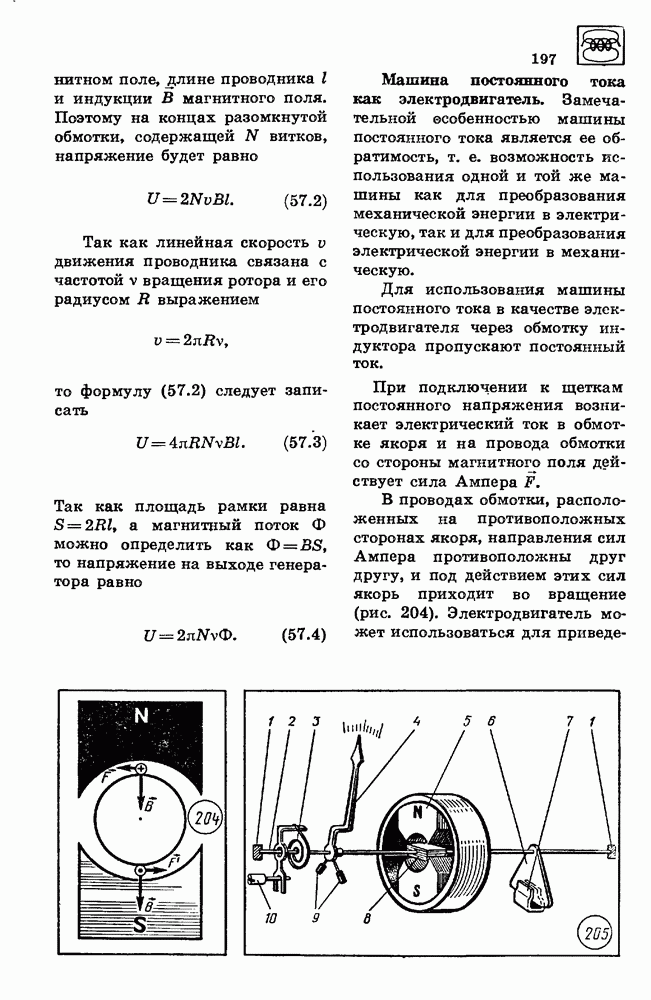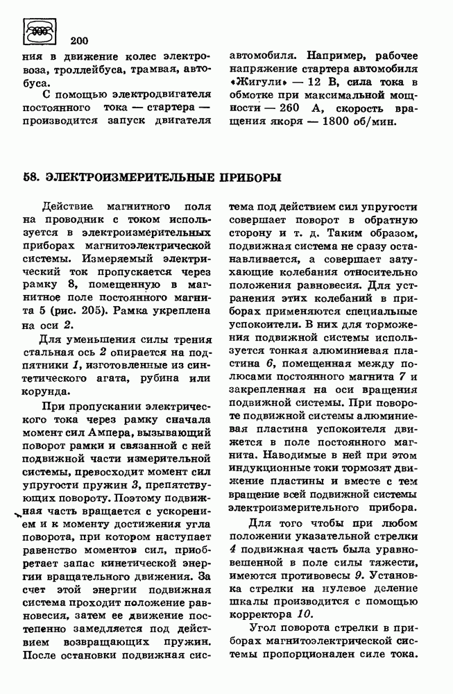 Действие магнитного поля на проводник с током используется в электроизмерительных приборах магнитоэлектрической системы. Измеряемый электрический ток пропускается через рамку 8, помещенную в магнитное поле постоянного магнита S (рис. 205). Рамка укреплена на оси