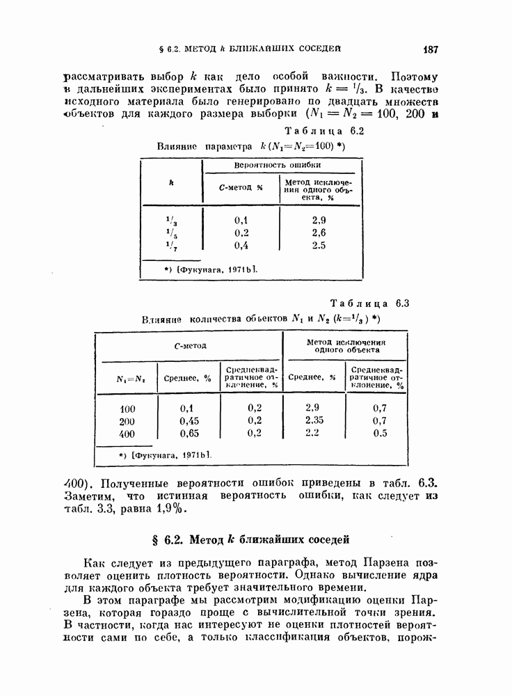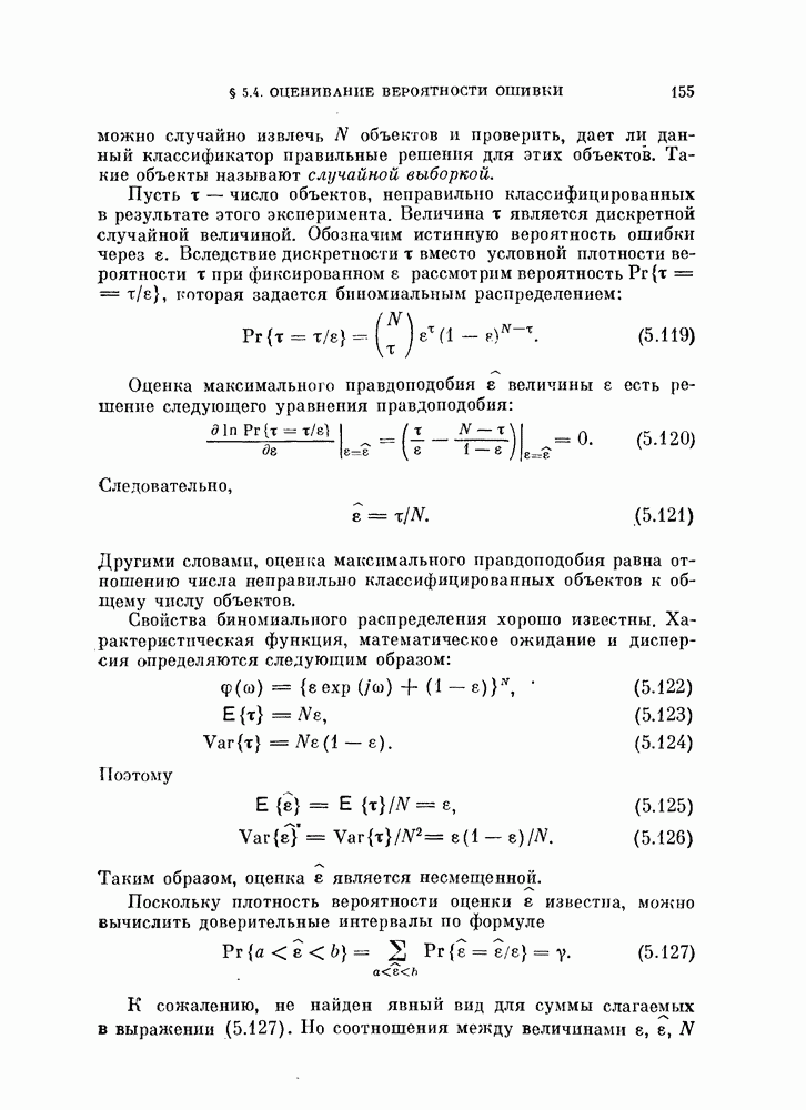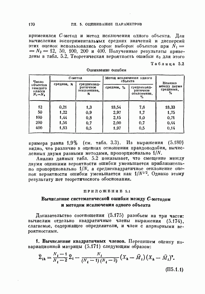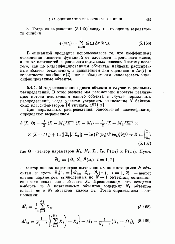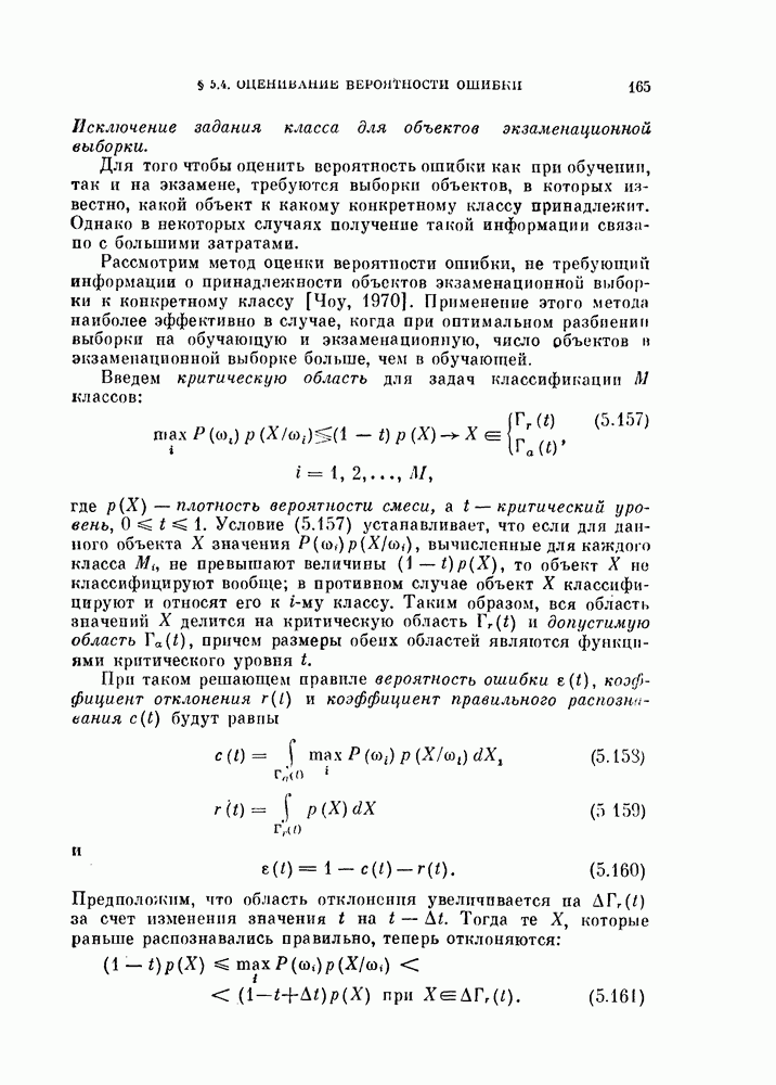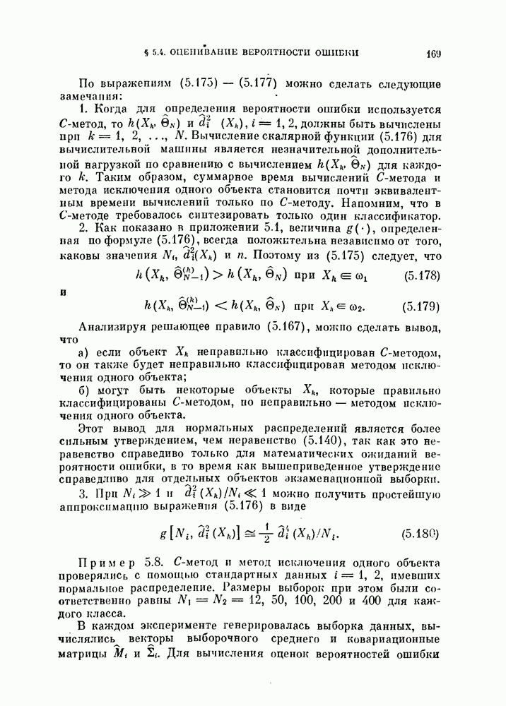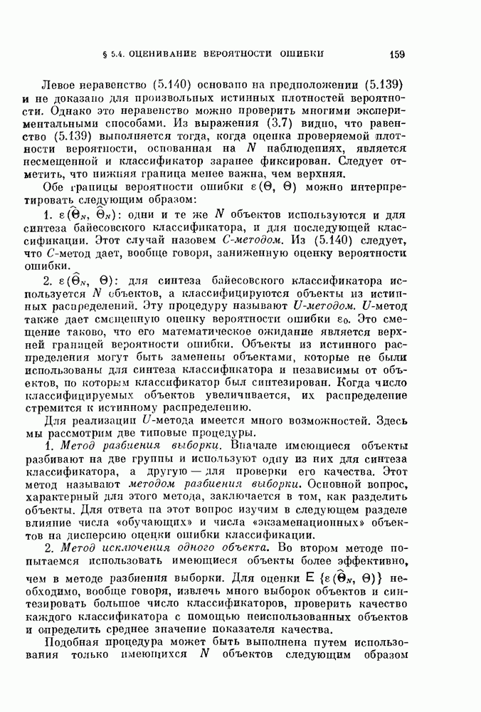 объектов используются и для синтеза байесовского классификатора, и для последующей классификации. Этот случай назовем С-методом. Из (5.140) следует, что С-метод дает, вообще говоря, заниженную оценку вероятности ошибки.